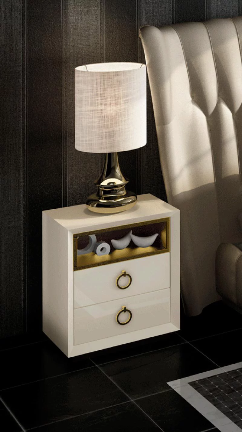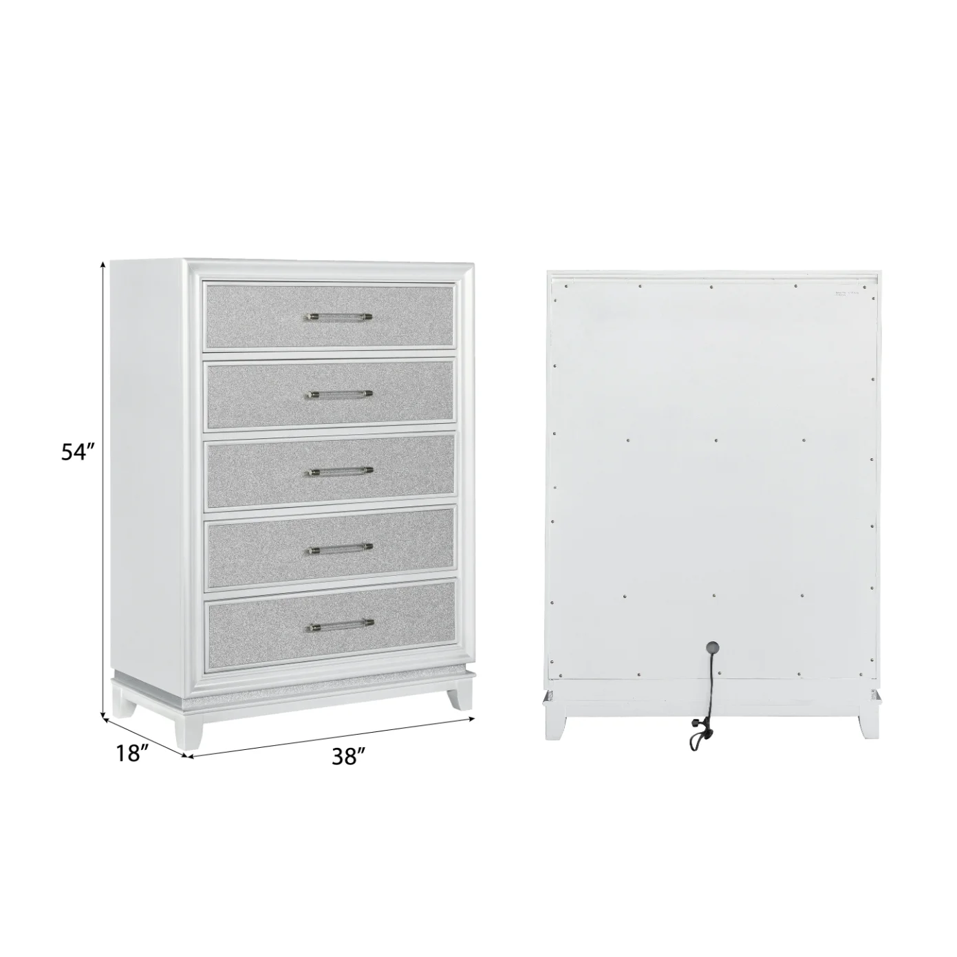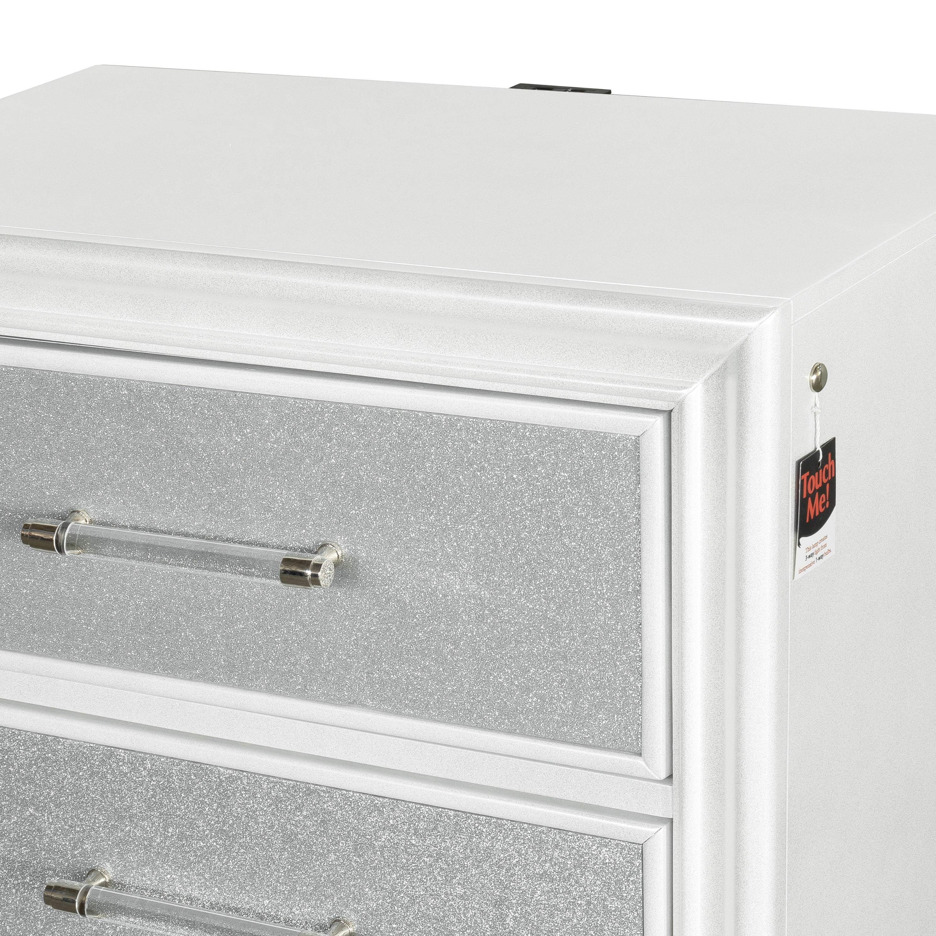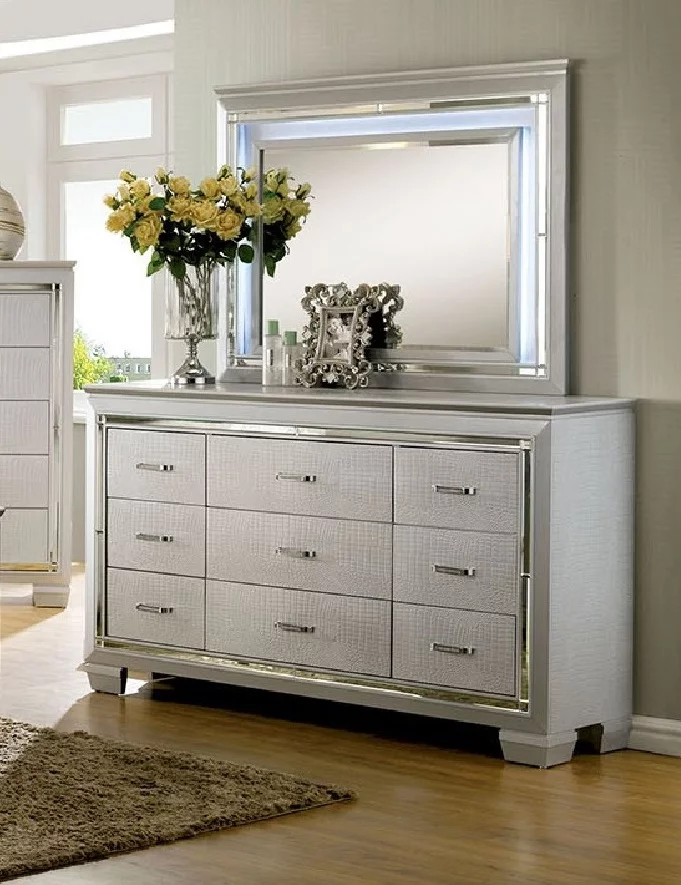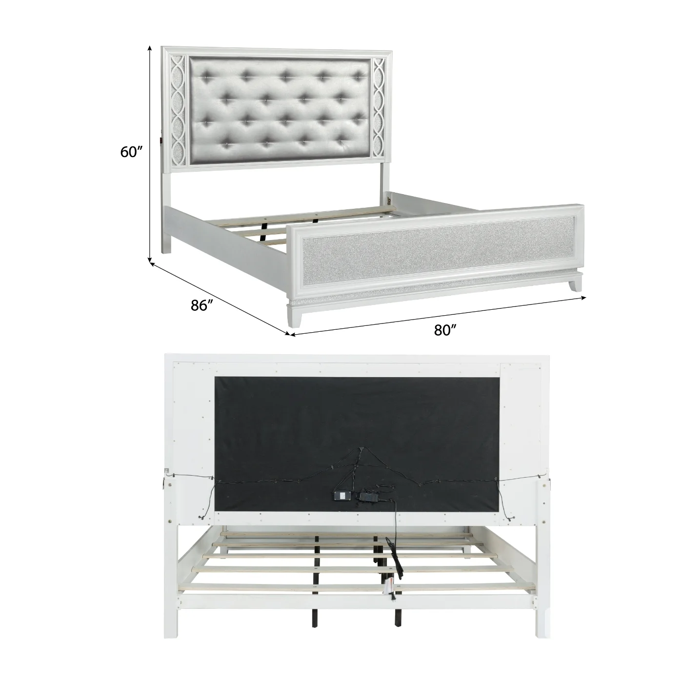 Glamorous Design White Bedroom Set 4pc Eastern King Button-Tufted LED Headboard Bed Nightstand Dresser LED Mirror Furniture