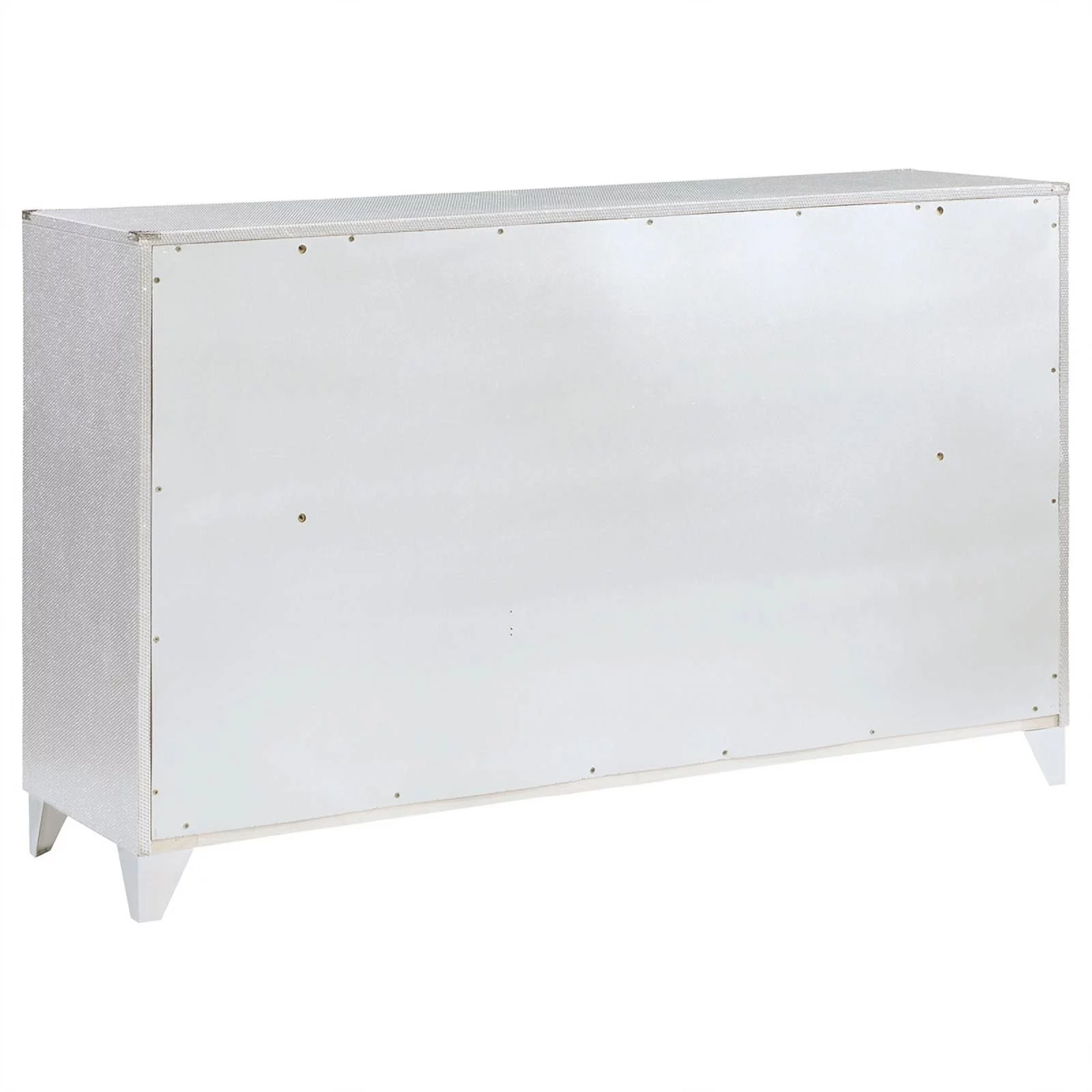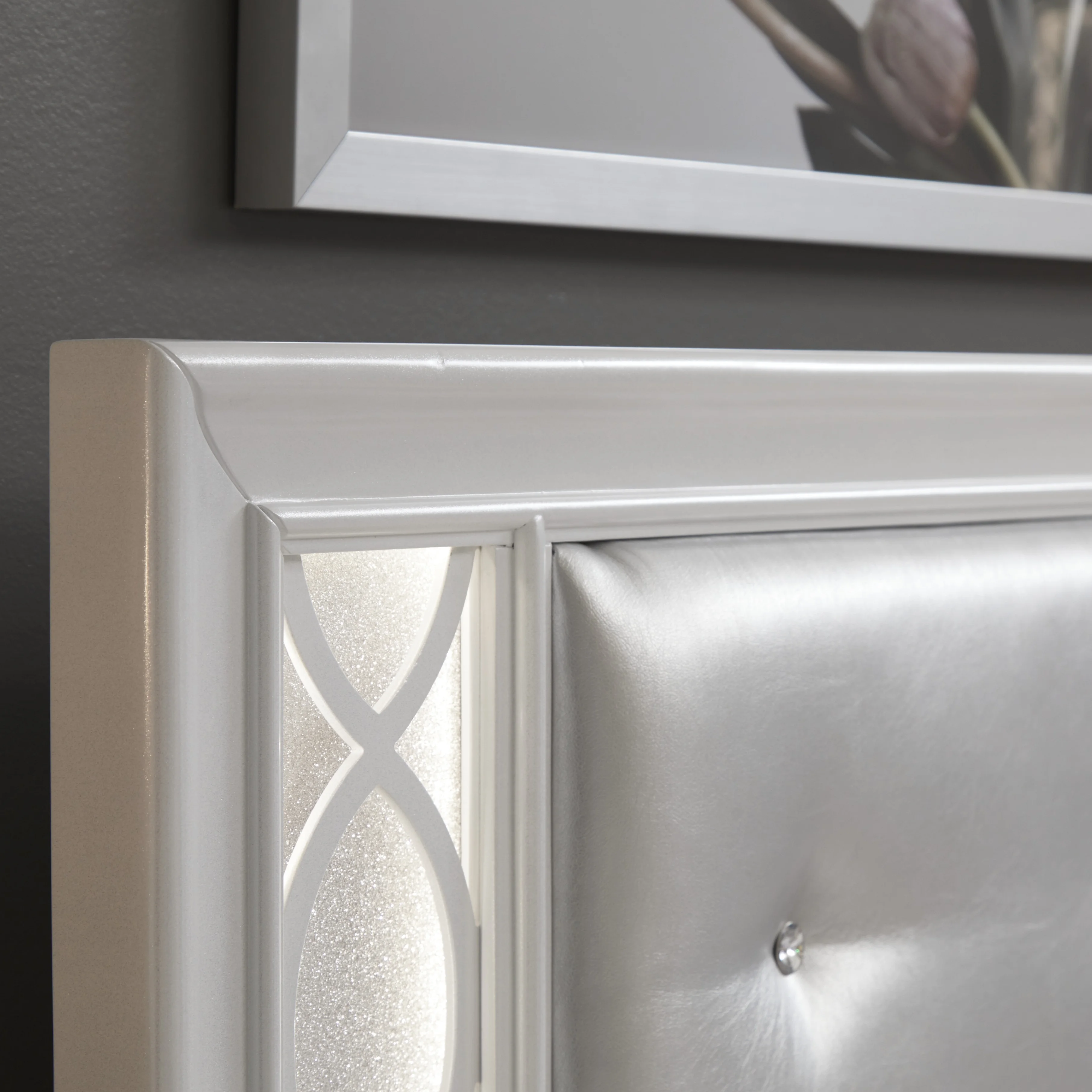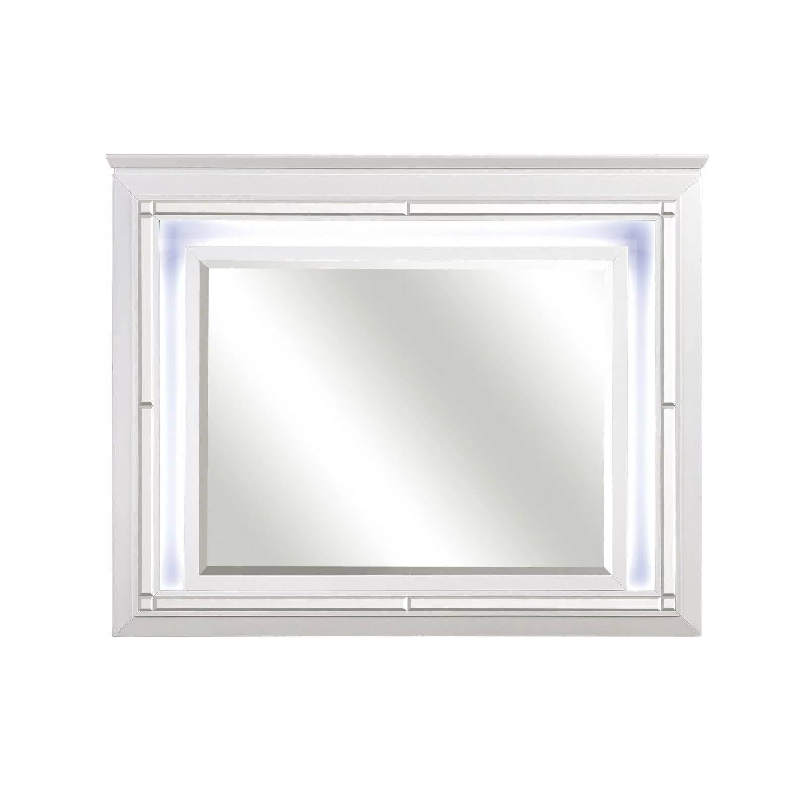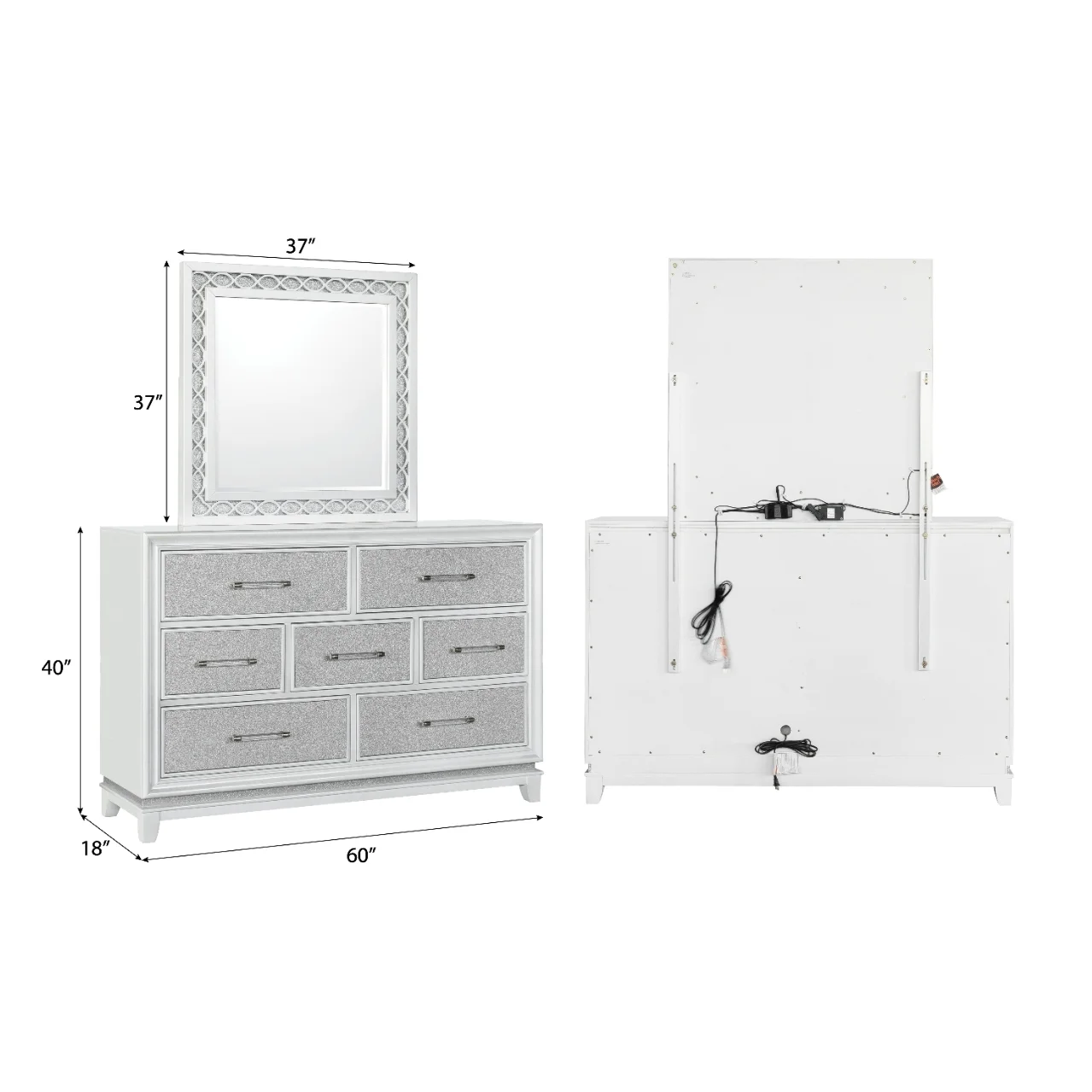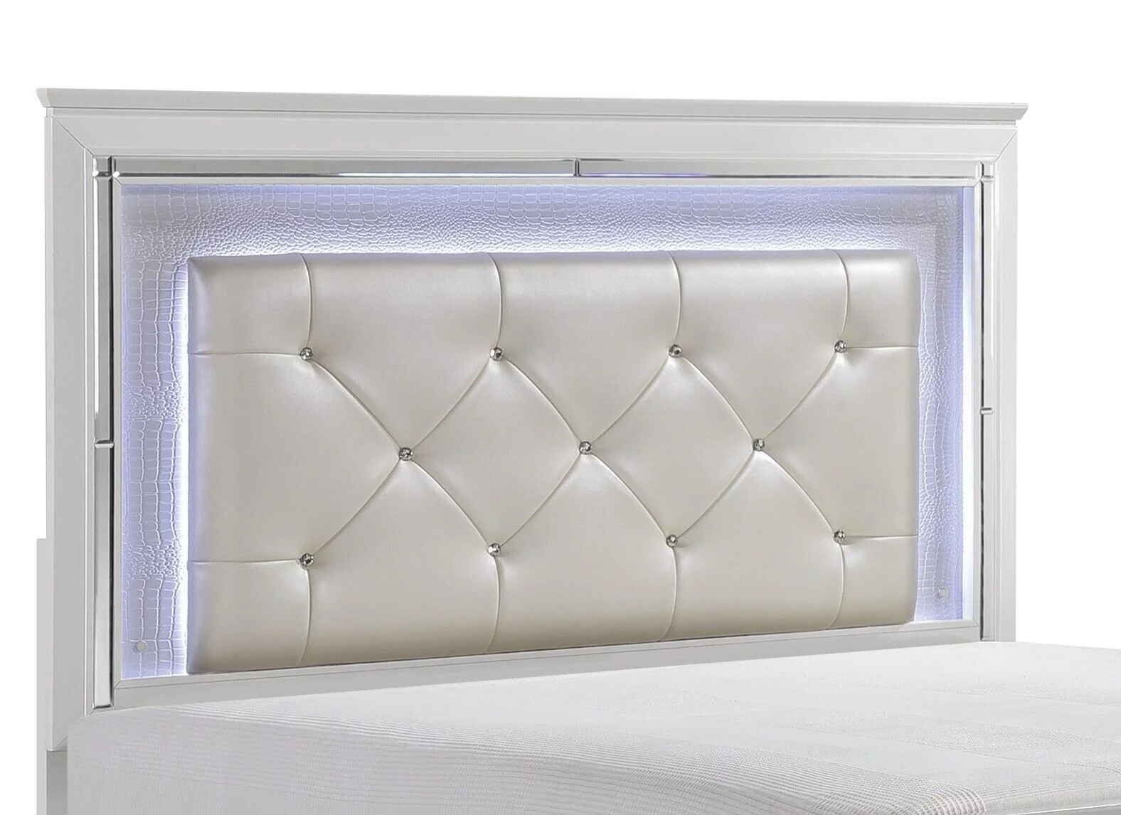 Roundhill Galaxy 4-Piece Bedroom Set with LED Lights, Tufted Bed, Dresser, Mirror, and Nightstand in Pearlized White, King