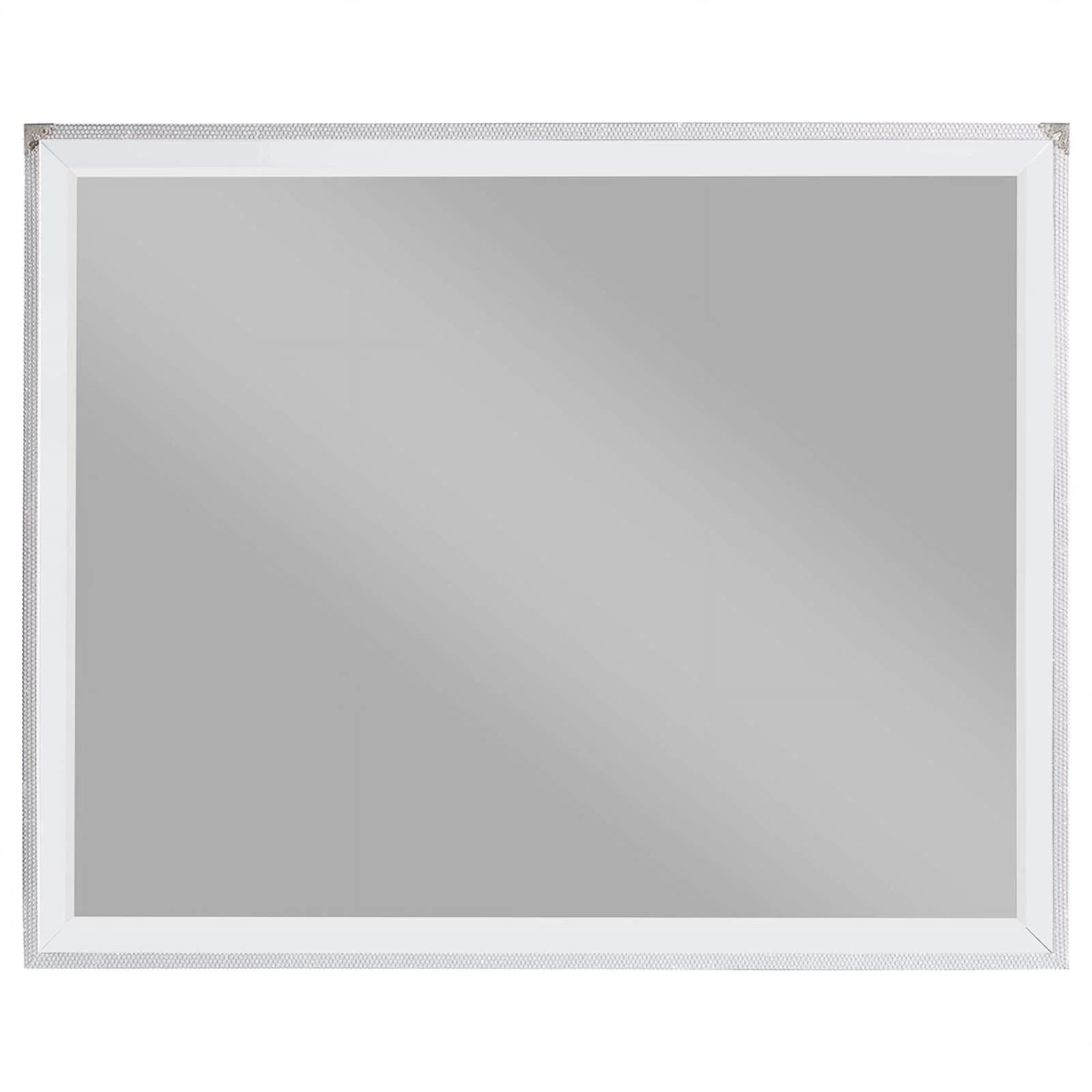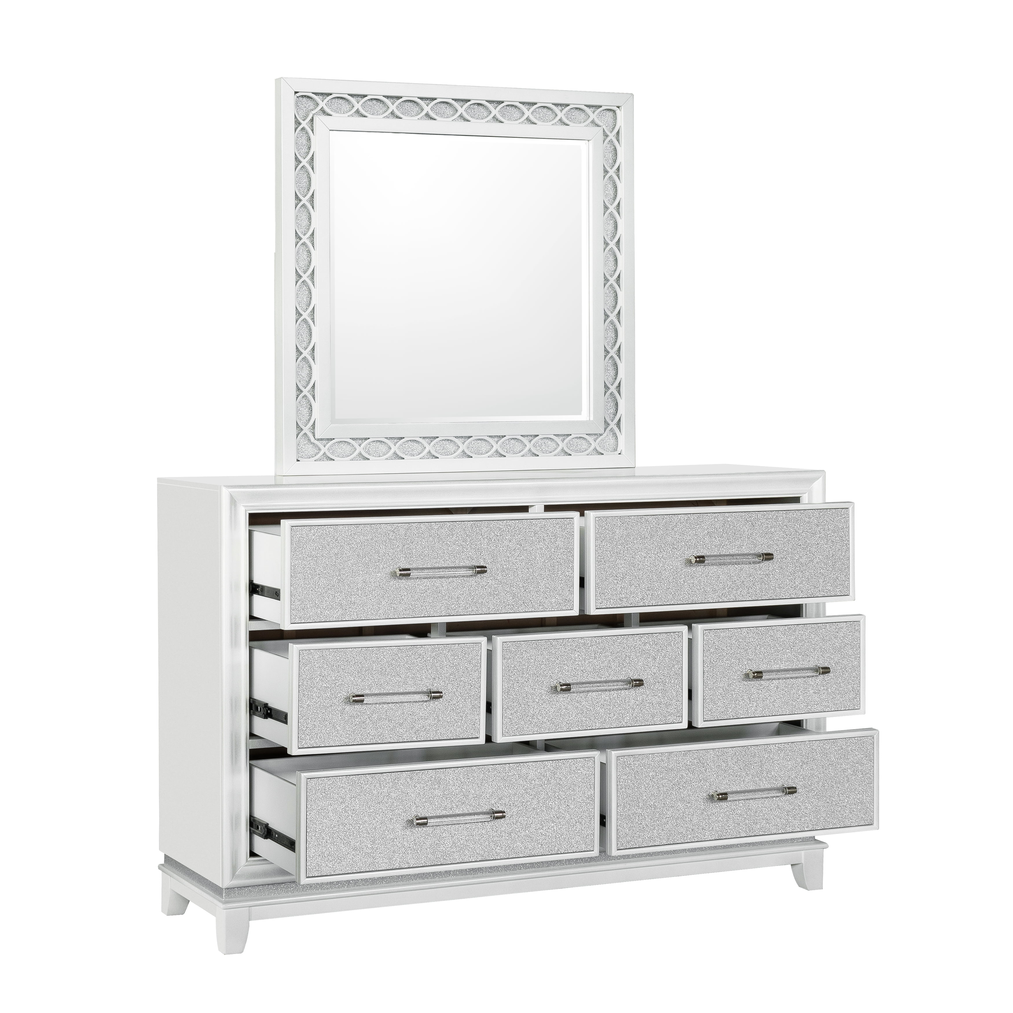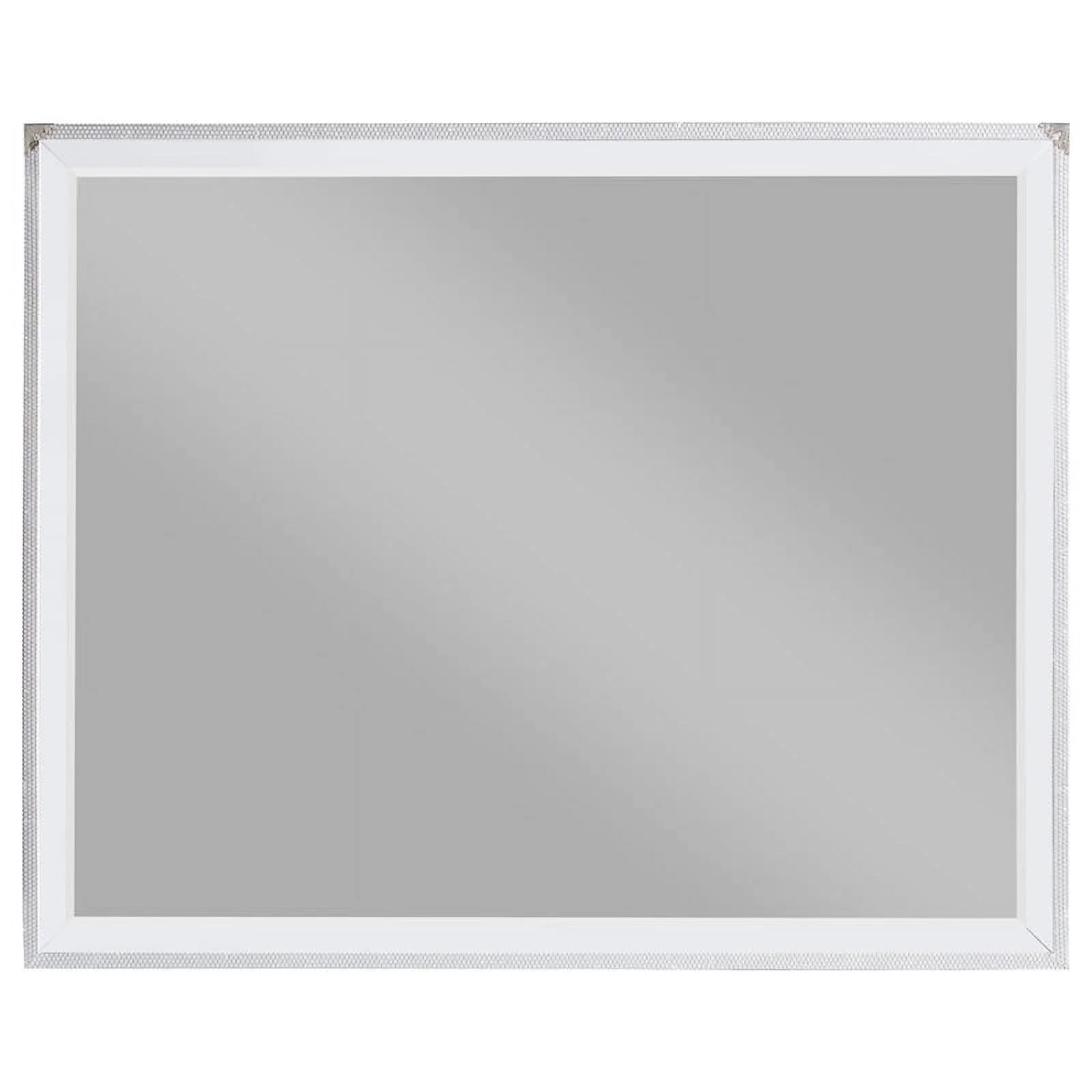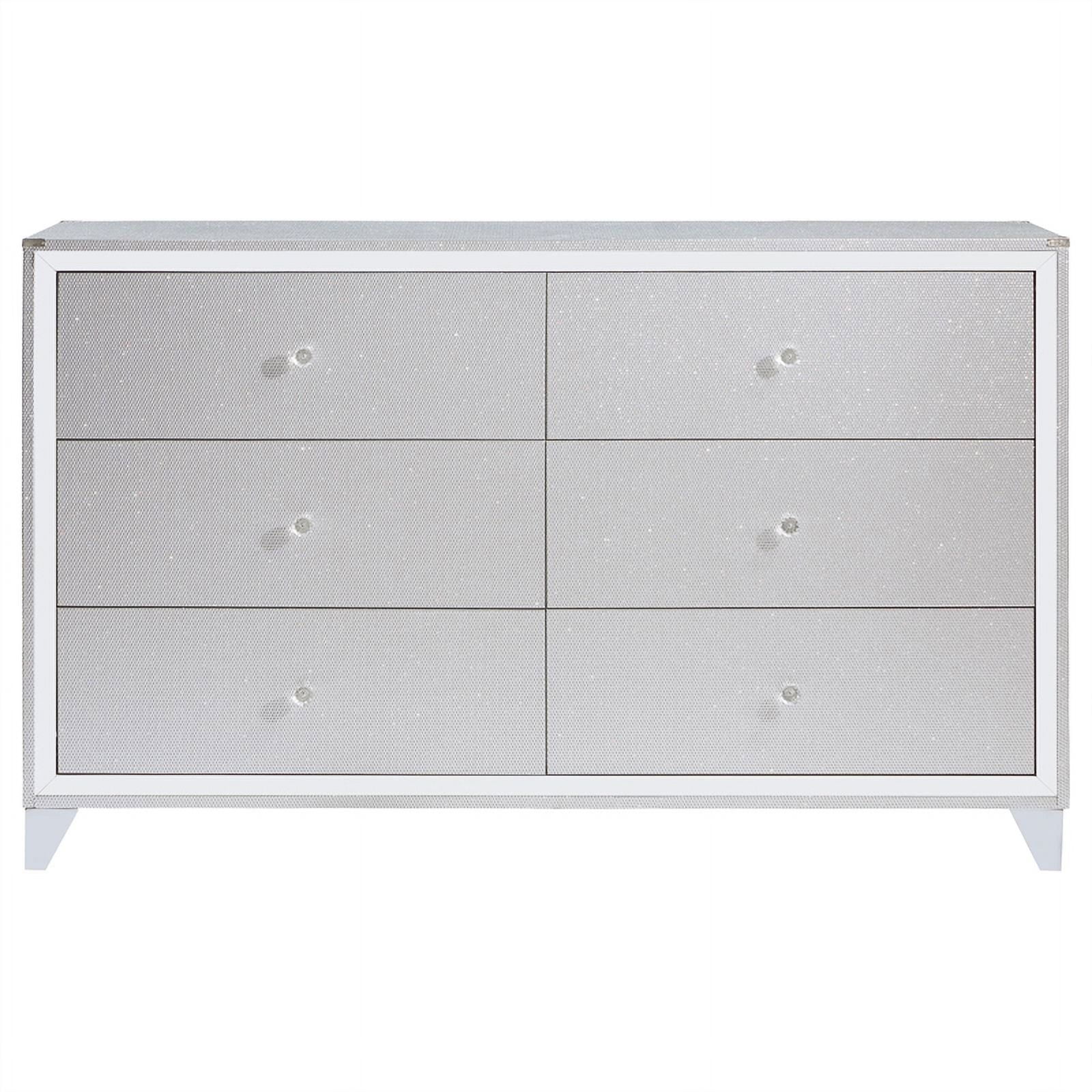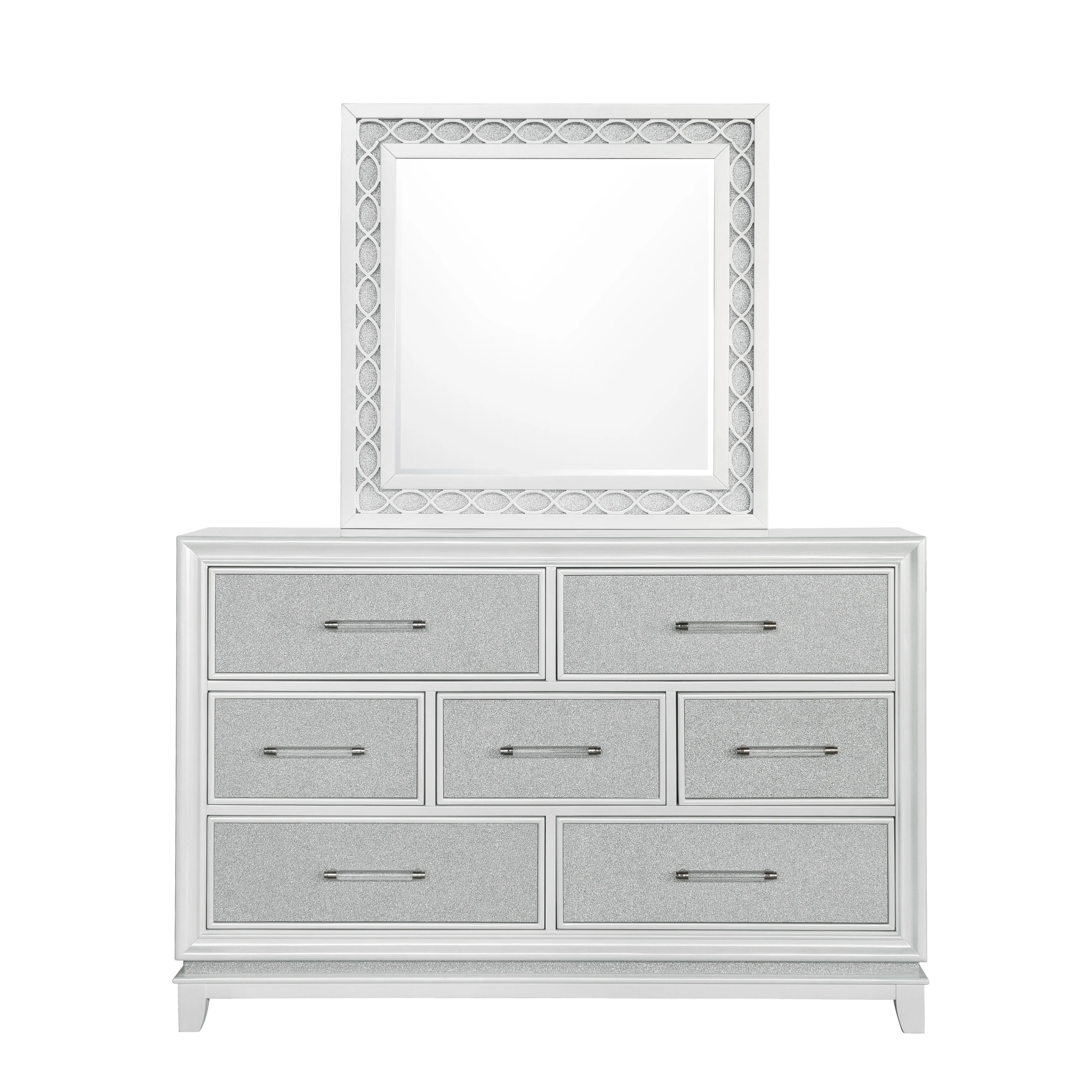 Roundhill Galaxy 4-Piece Bedroom Set with LED Lights, Tufted Bed, Dresser, Mirror, and Nightstand in Pearlized White, King