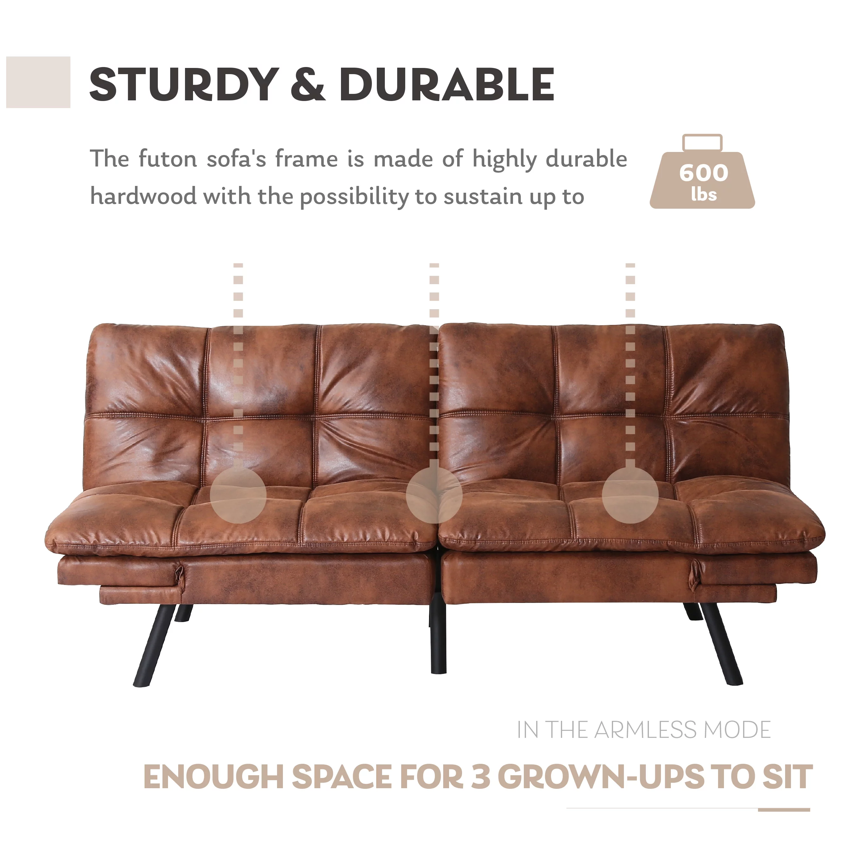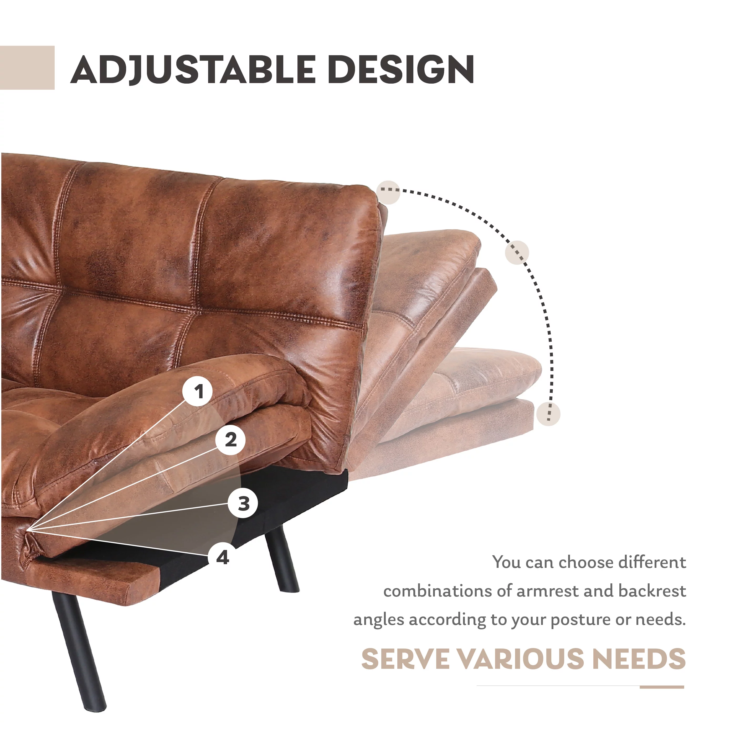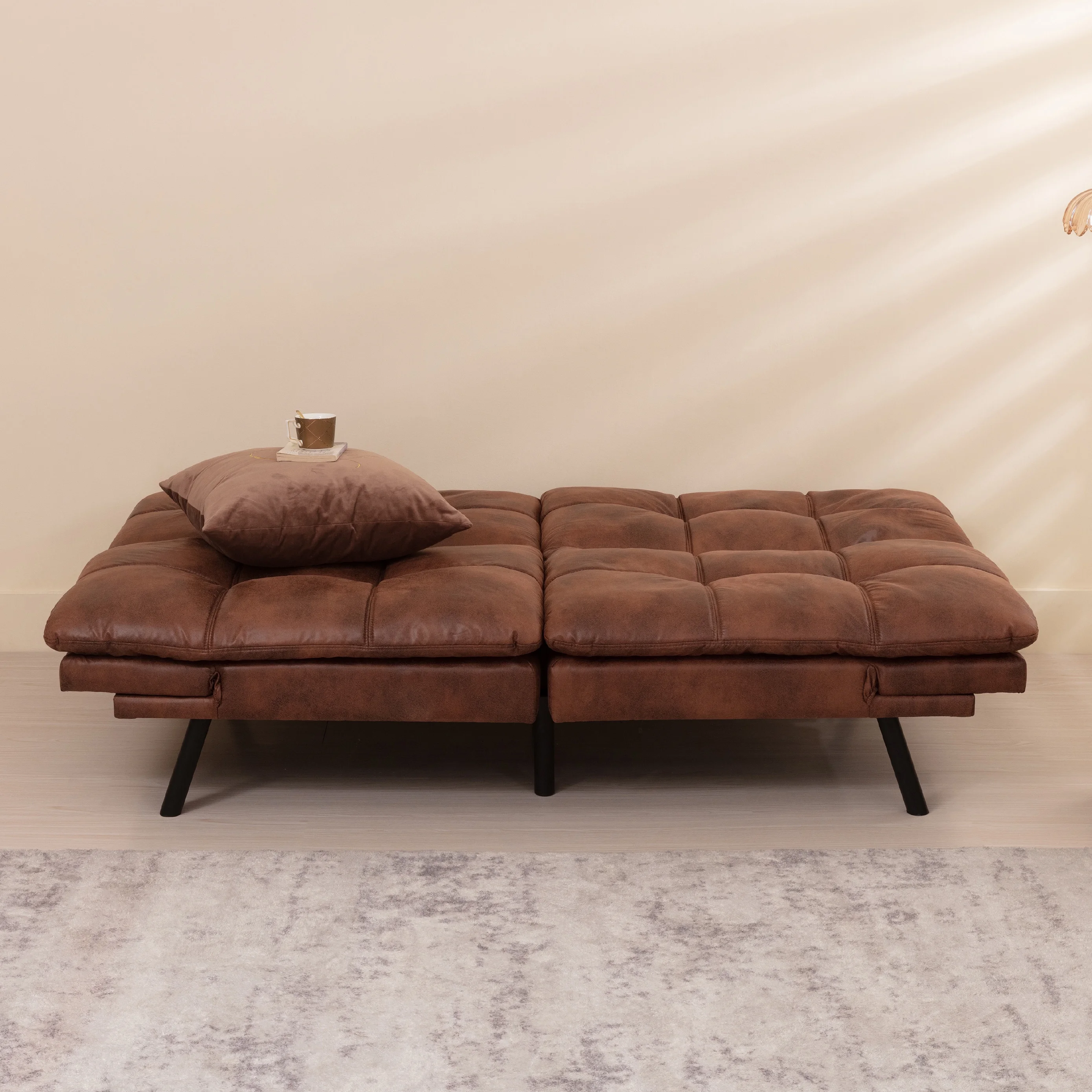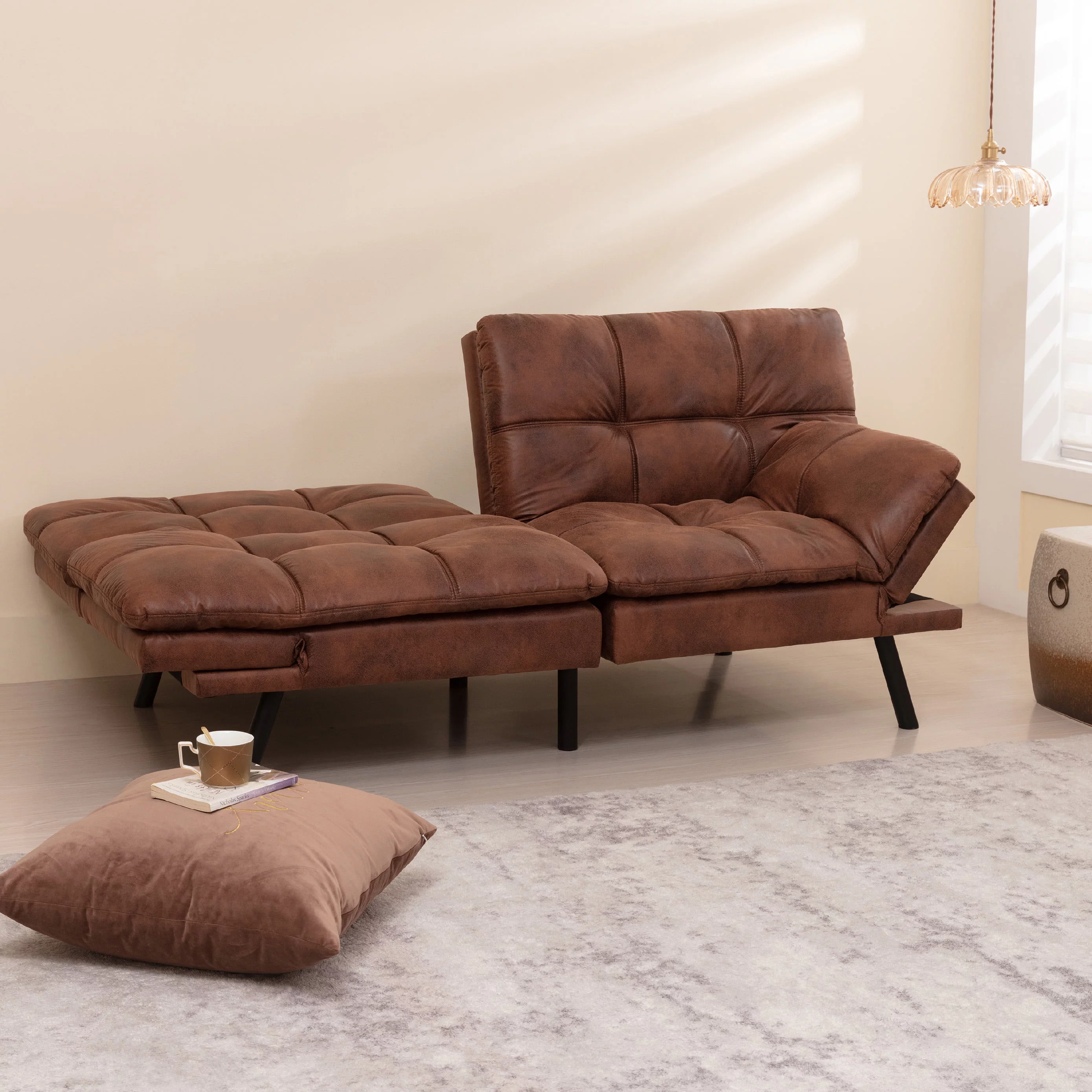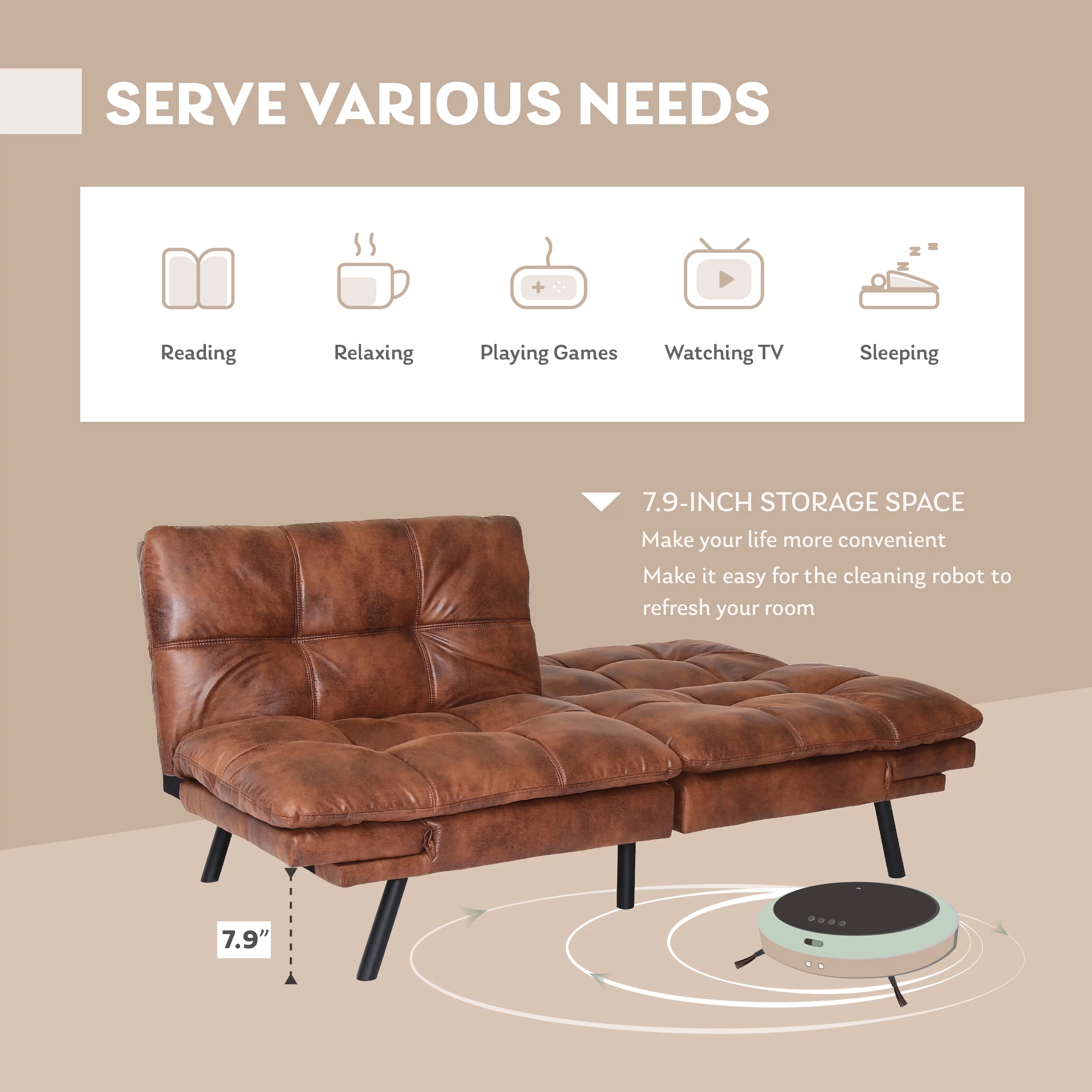 MLILY Convertible Futon Sofa Bed, Sleeper Sofa with Adjustable Armrest, Memory Foam Futon Couch, Brown