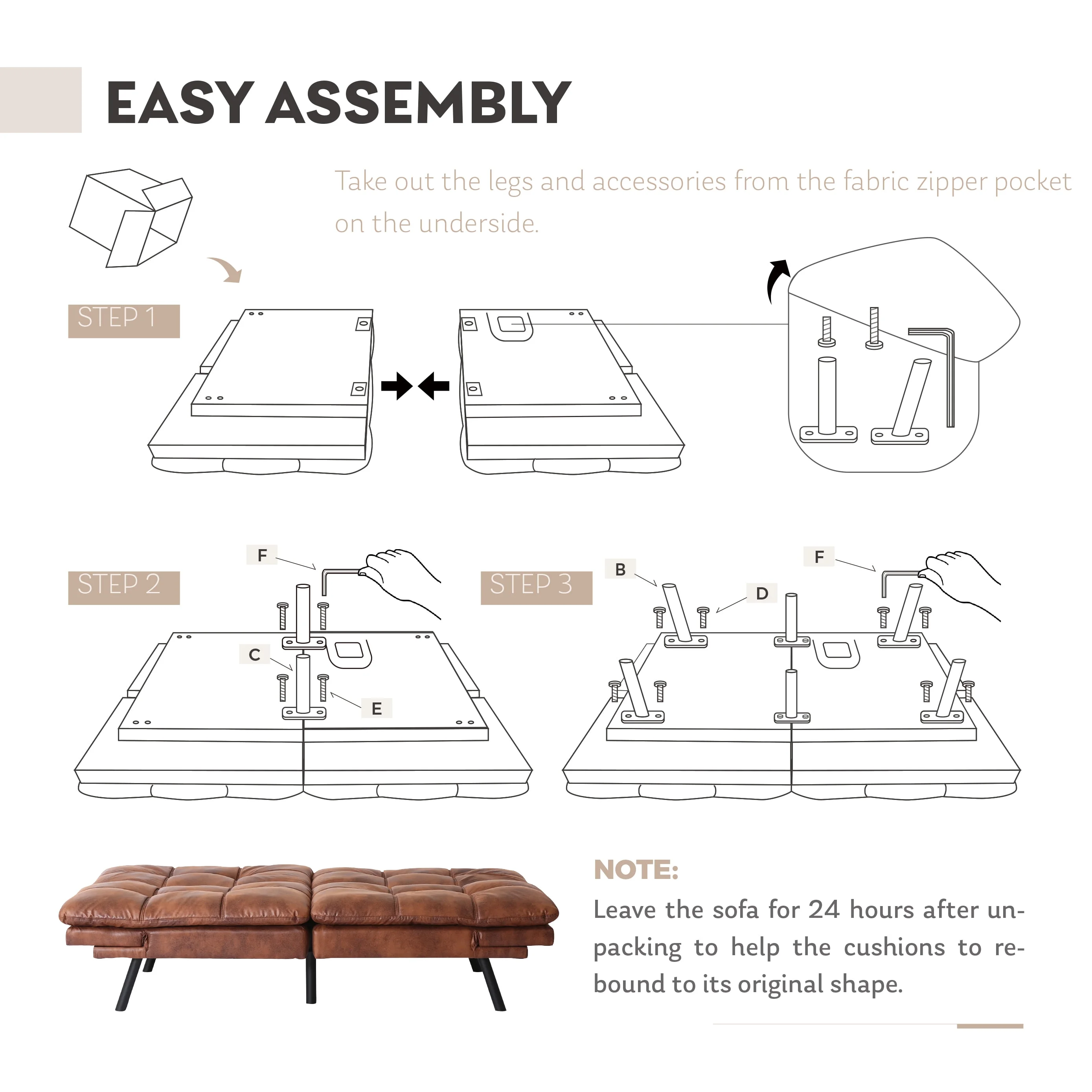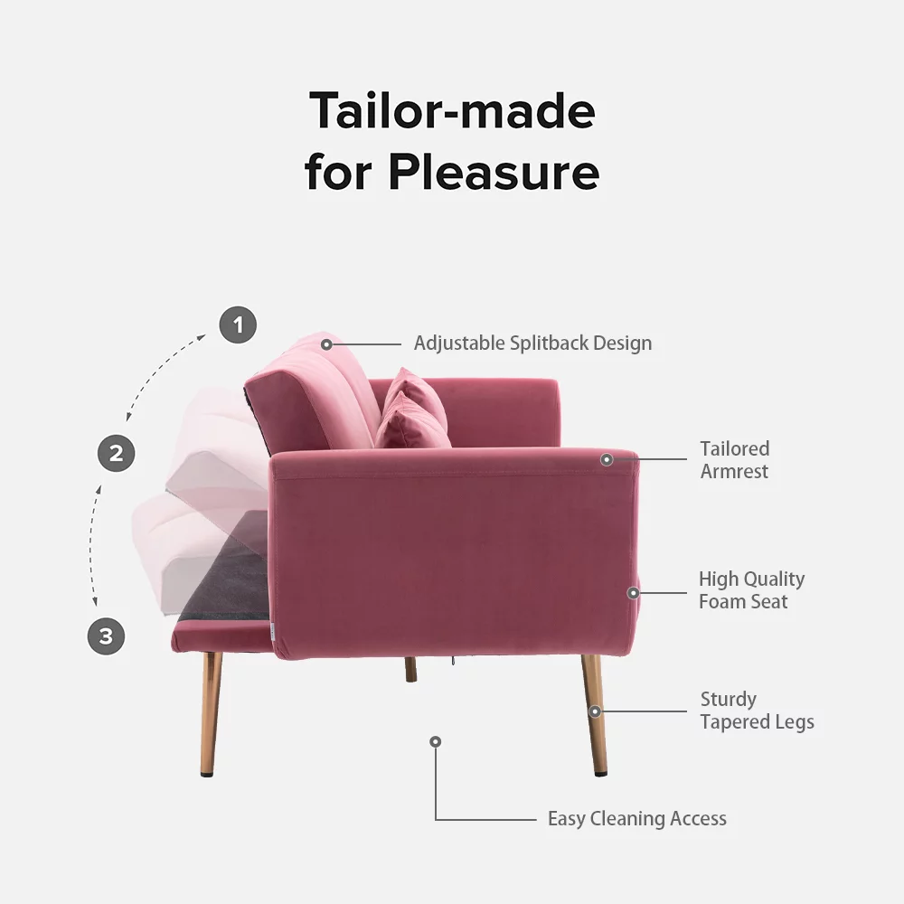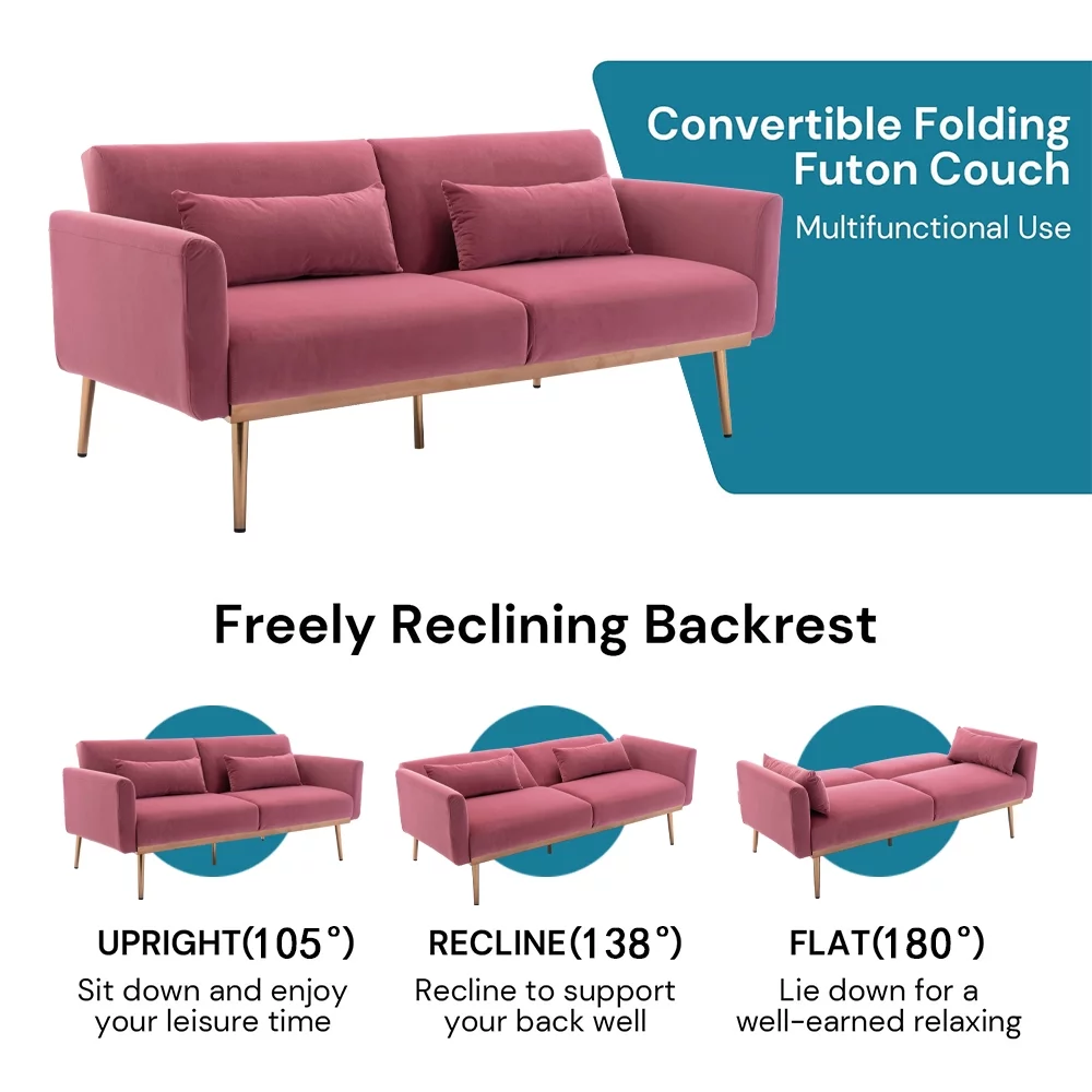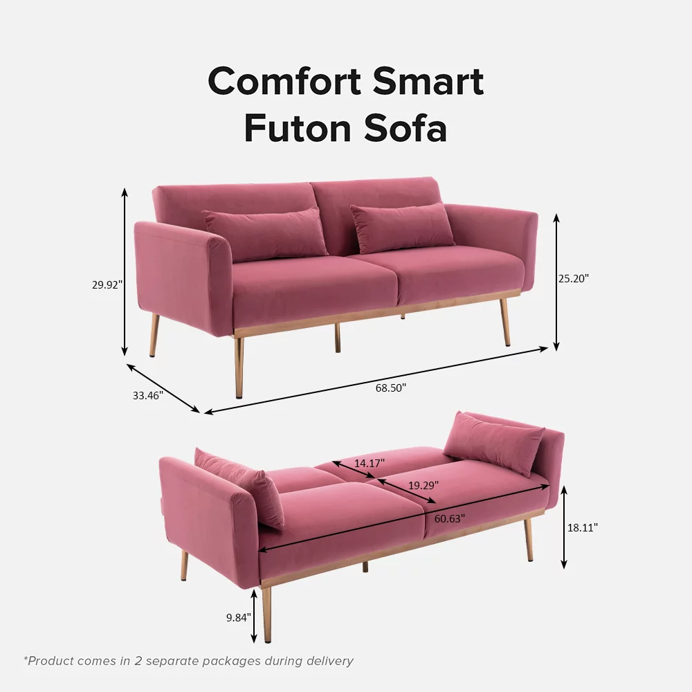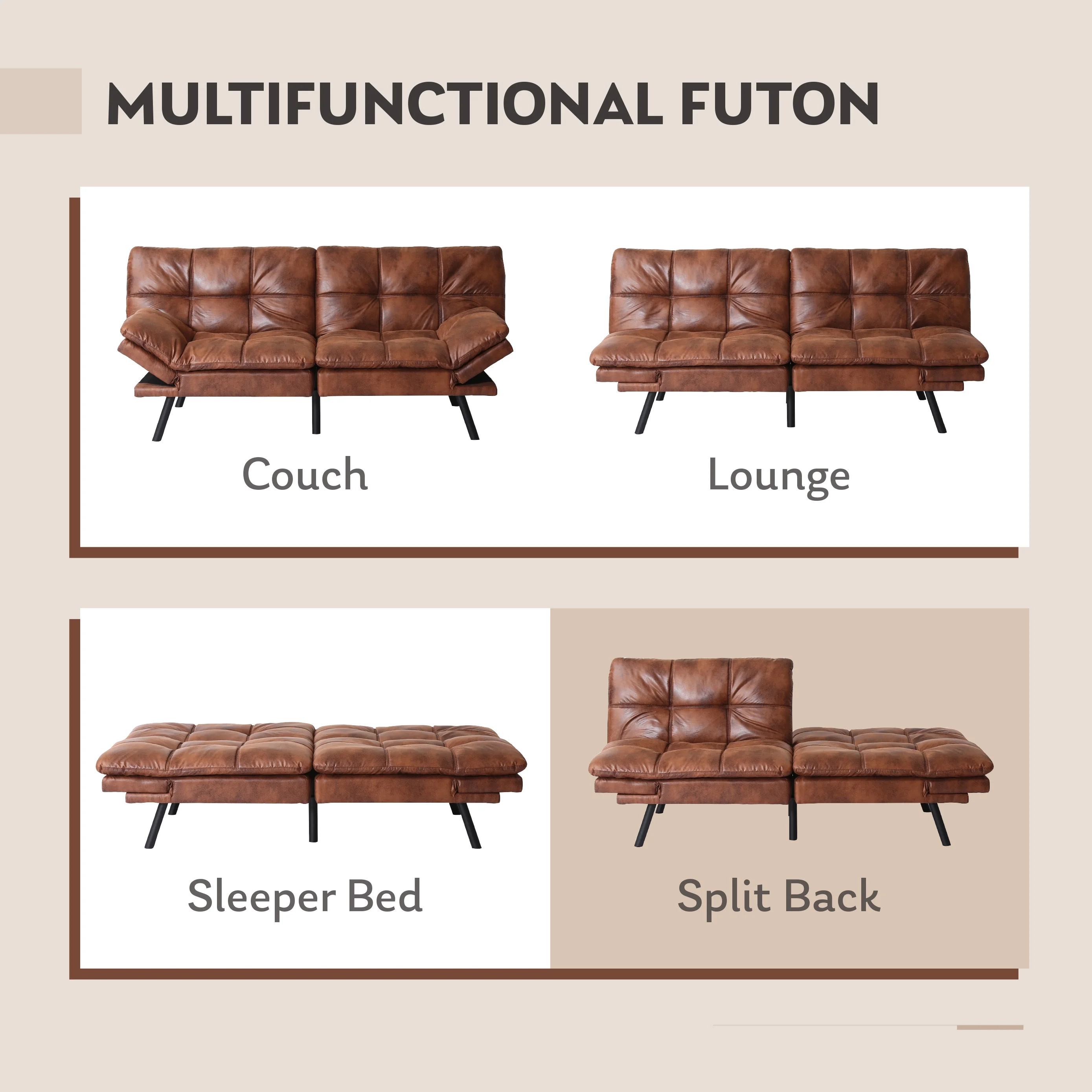 MLILY Convertible Futon Sofa Bed, Sleeper Sofa with Adjustable Armrest, Memory Foam Futon Couch, Brown