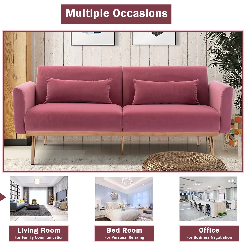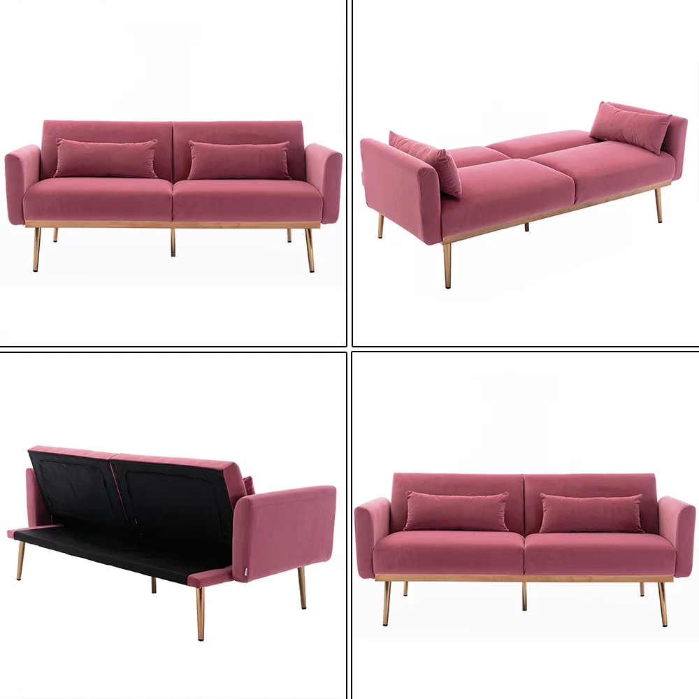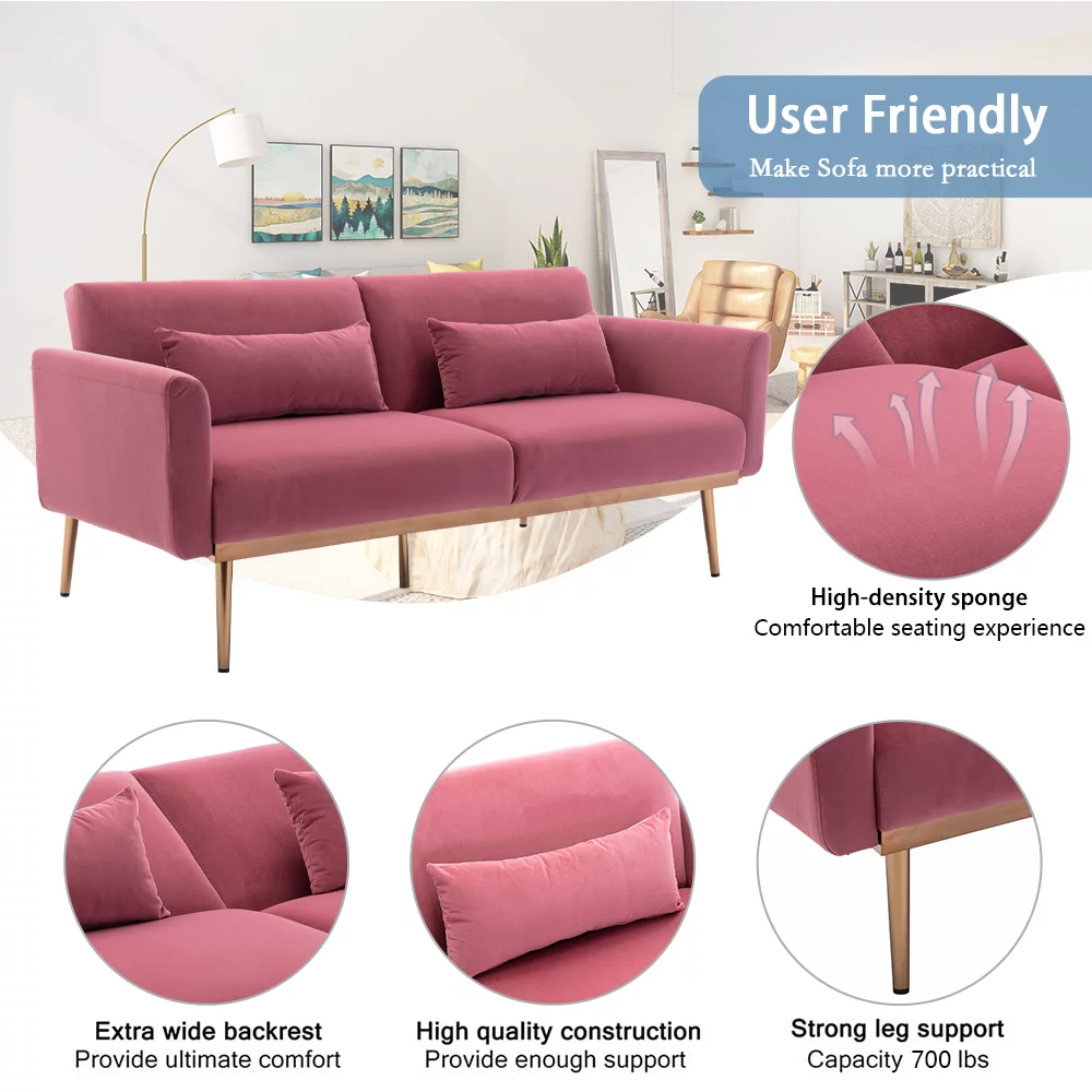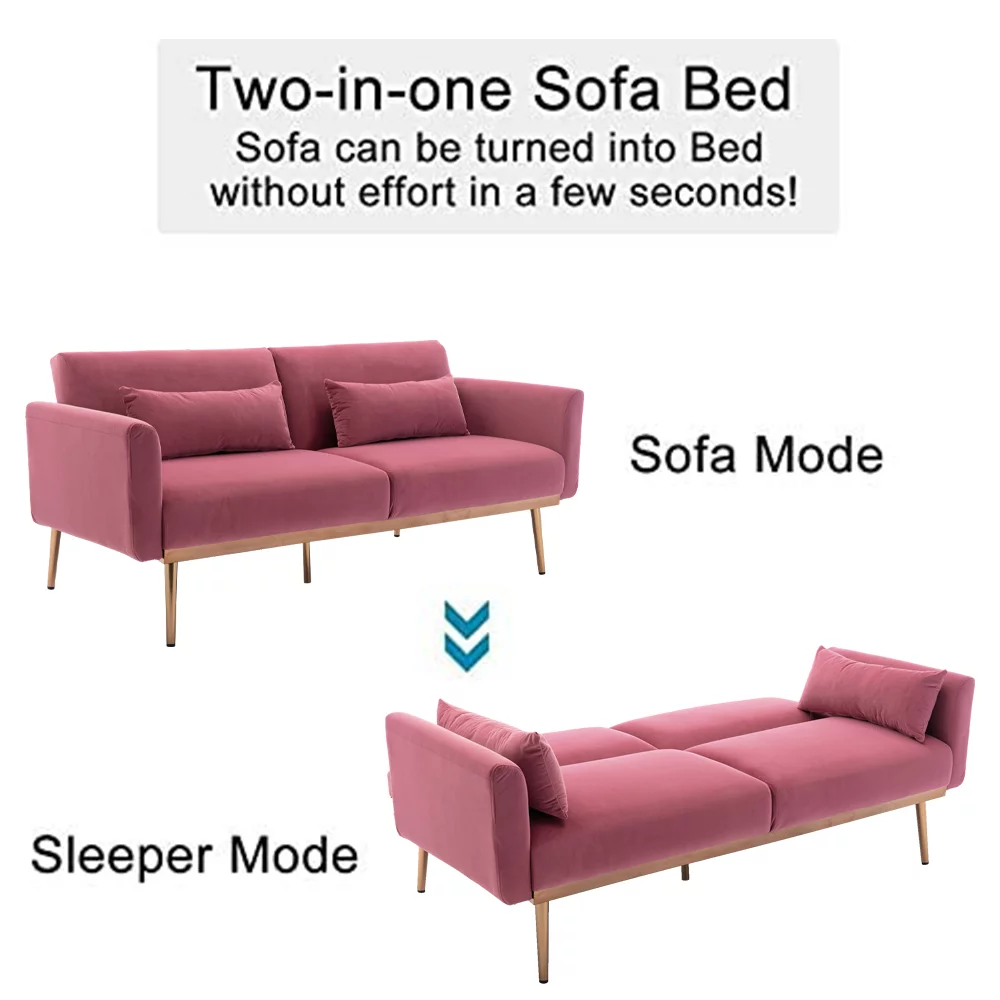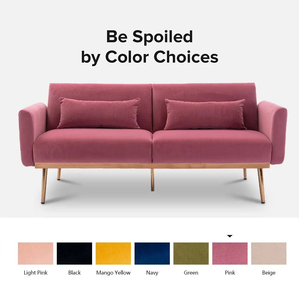 MLILY Convertible Futon Sofa Bed, Sleeper Sofa with Adjustable Armrest, Memory Foam Futon Couch, Brown