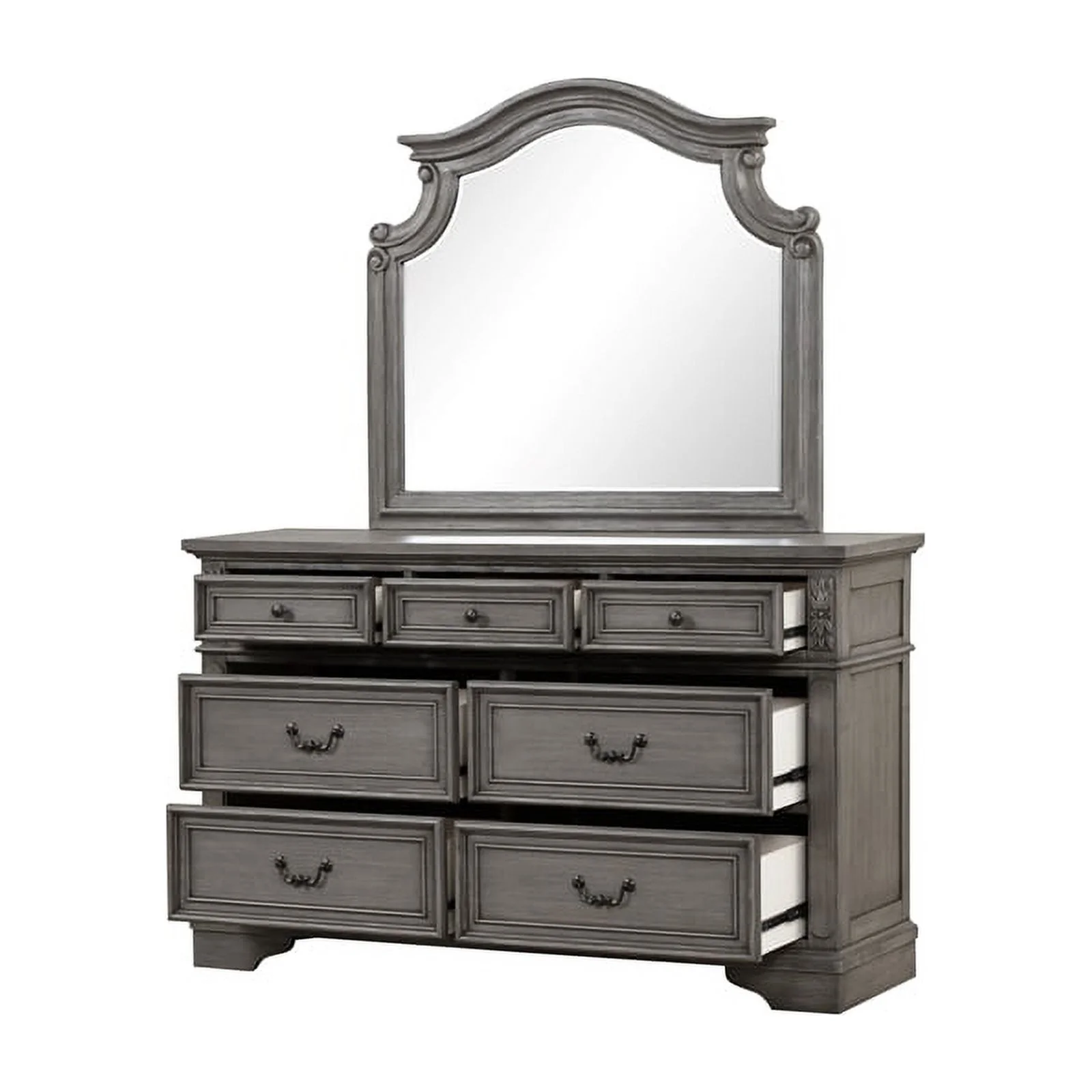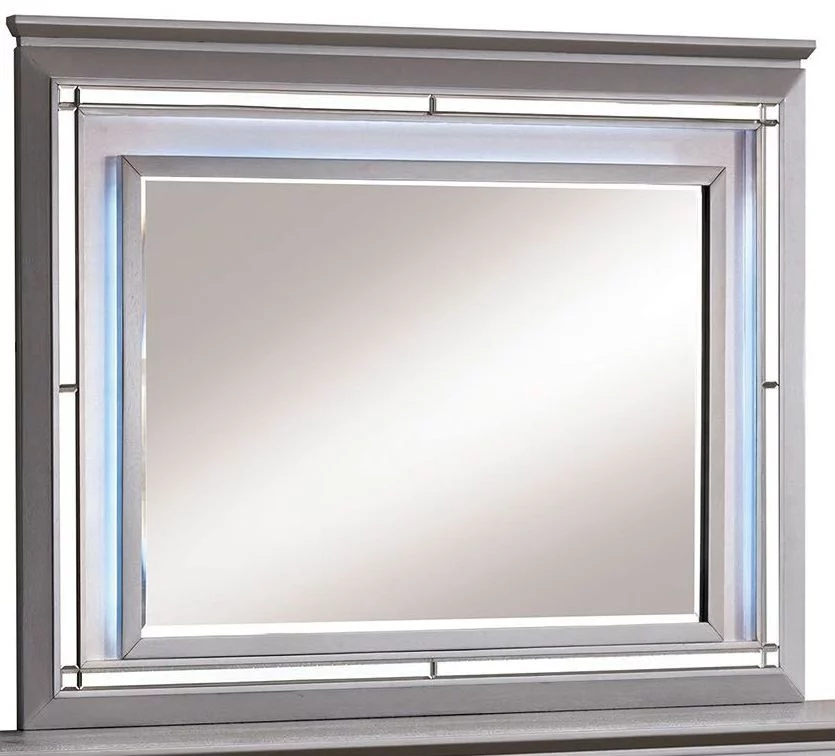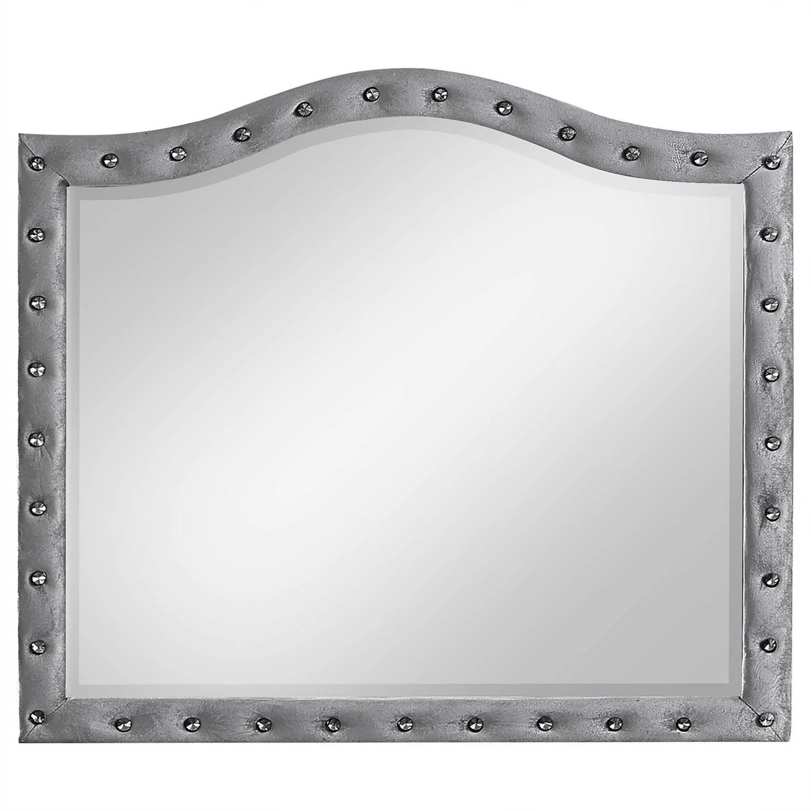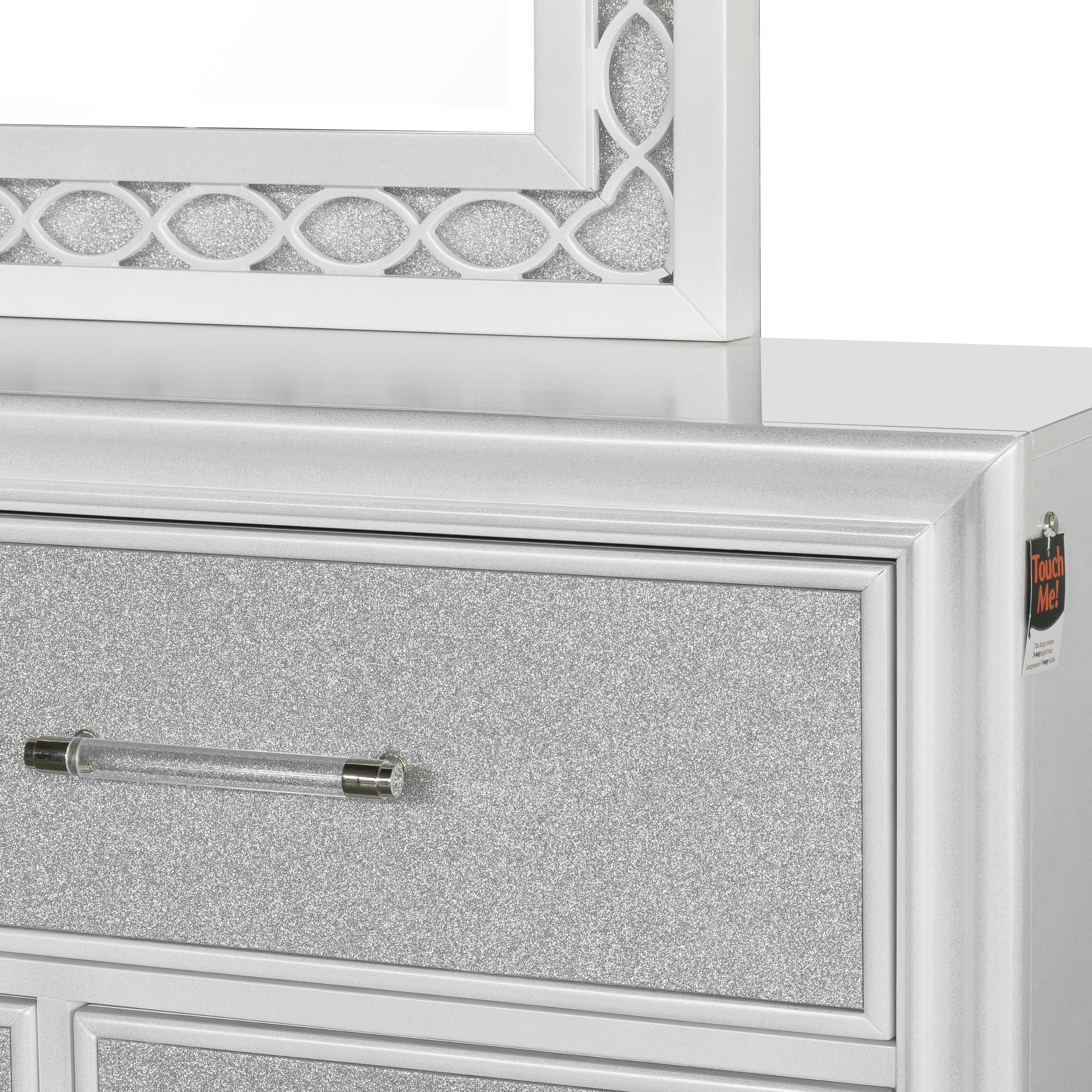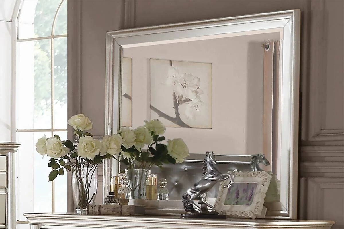 Glamour Traditional 4pc Bedroom Silver Color Cal King Size Bed Set Dresser Mirror Nightstand Mirror Panel Tufted HB Bedframe