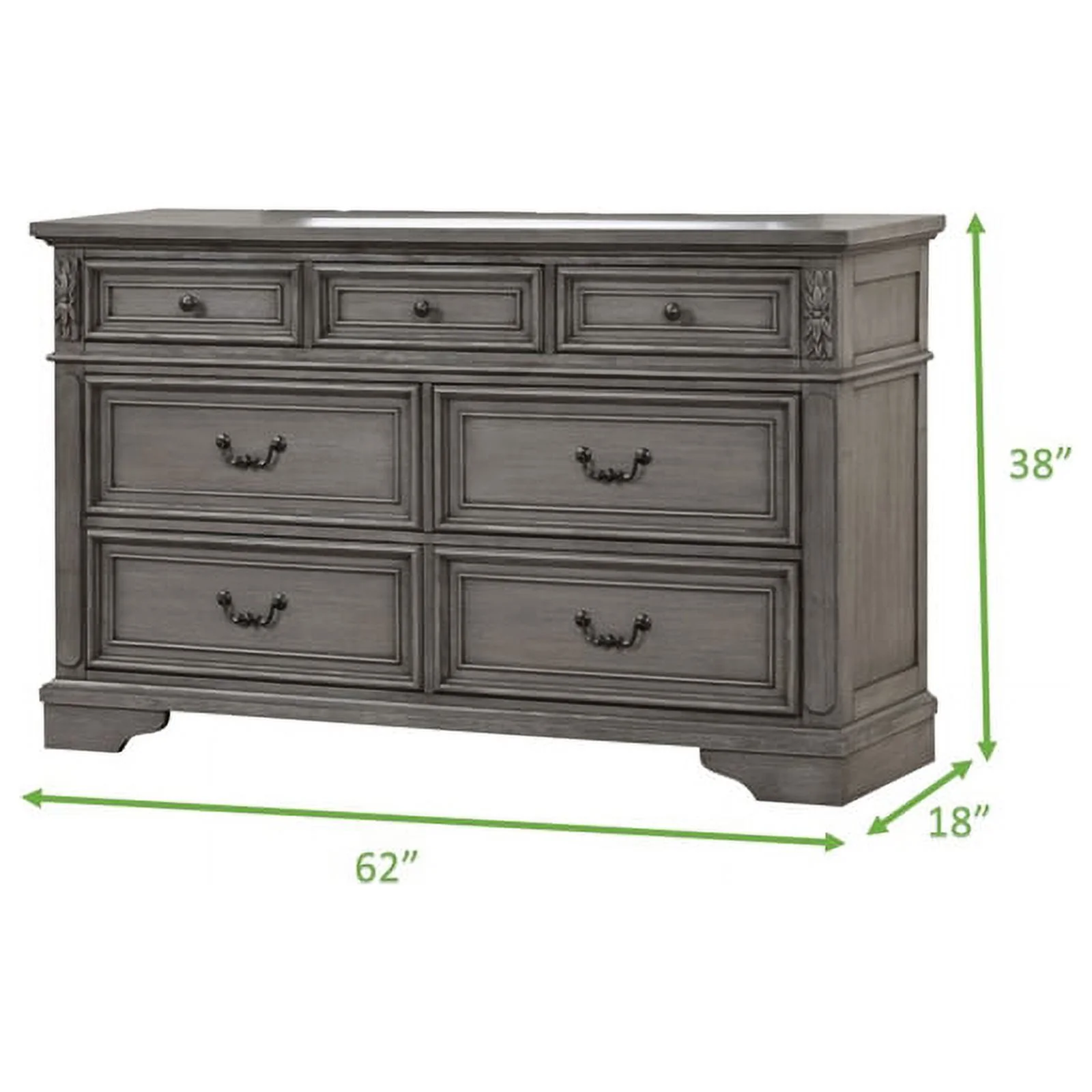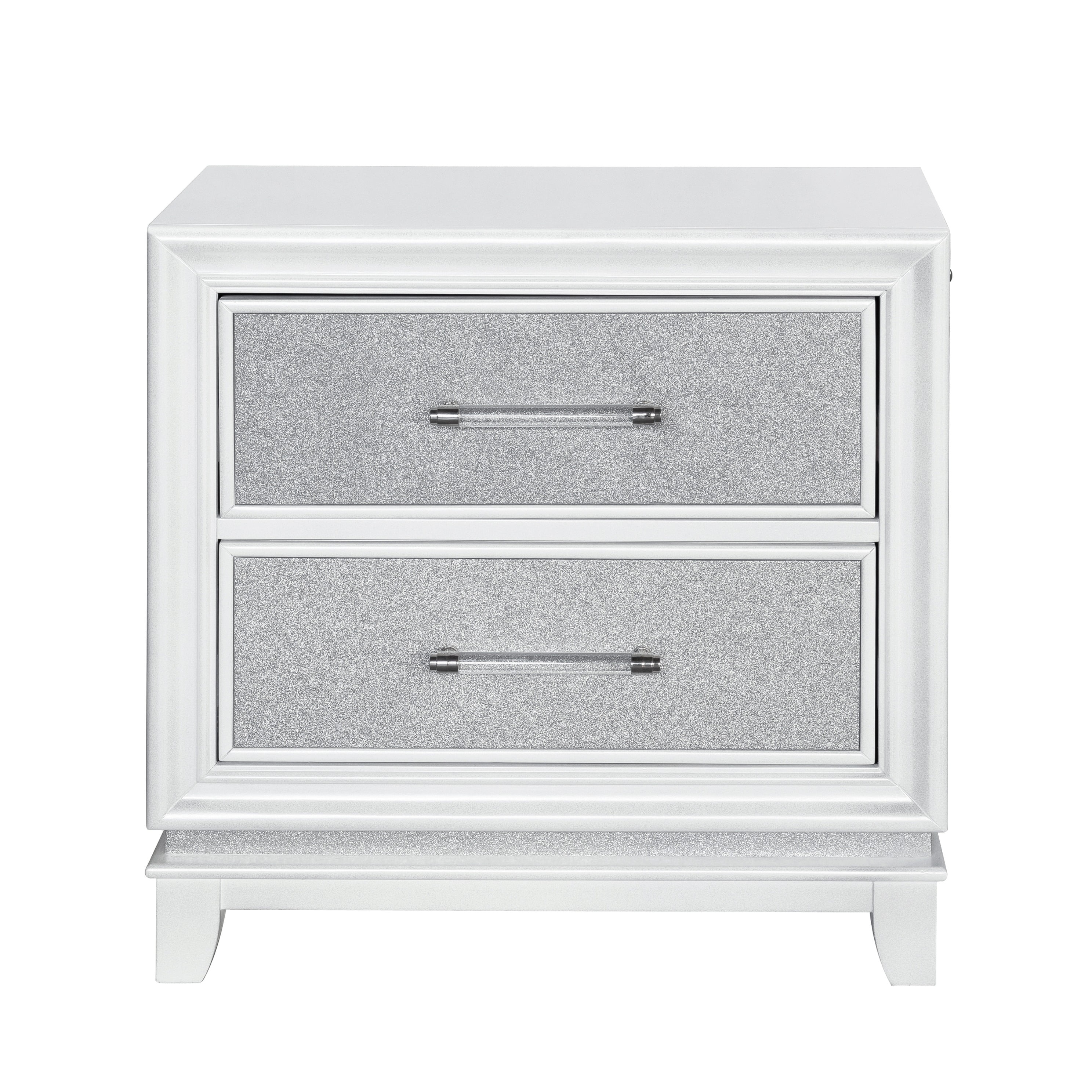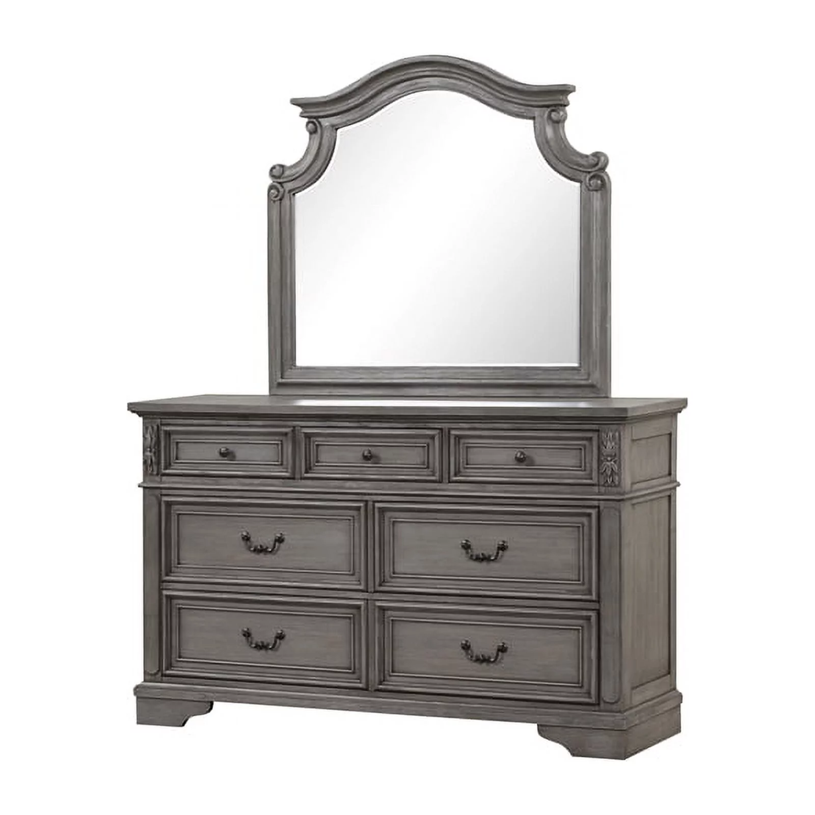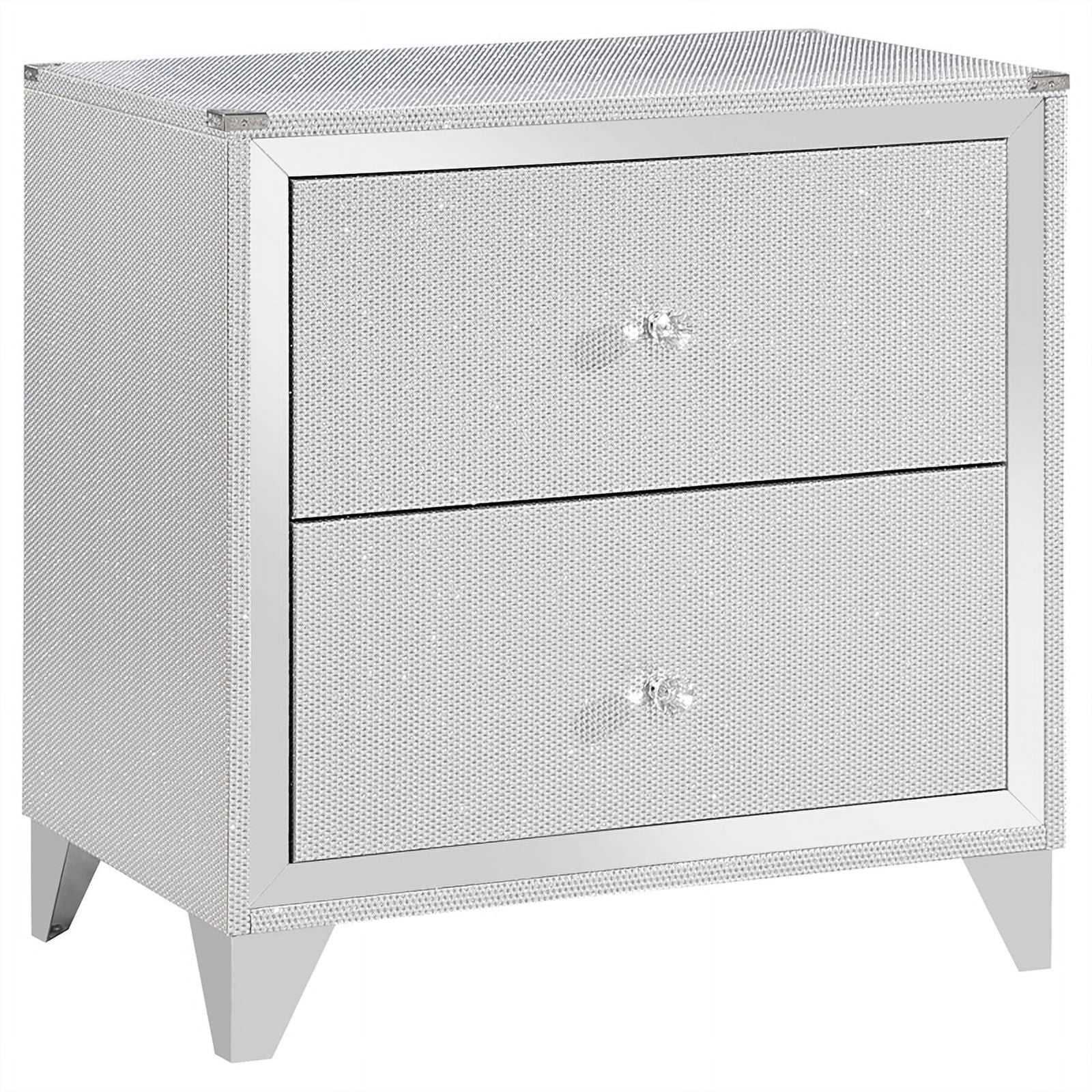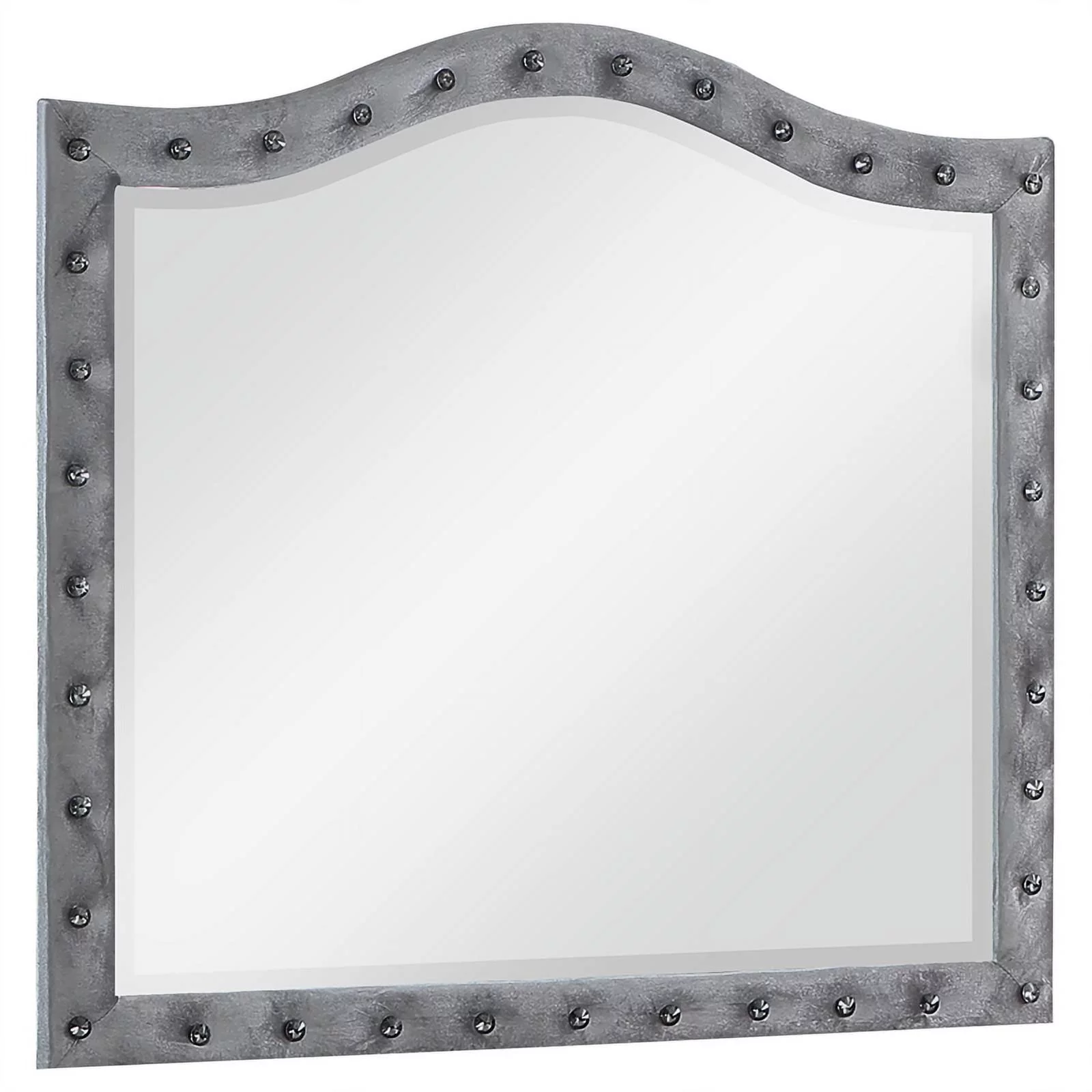 Glamour Traditional 4pc Bedroom Silver Color Cal King Size Bed Set Dresser Mirror Nightstand Mirror Panel Tufted HB Bedframe