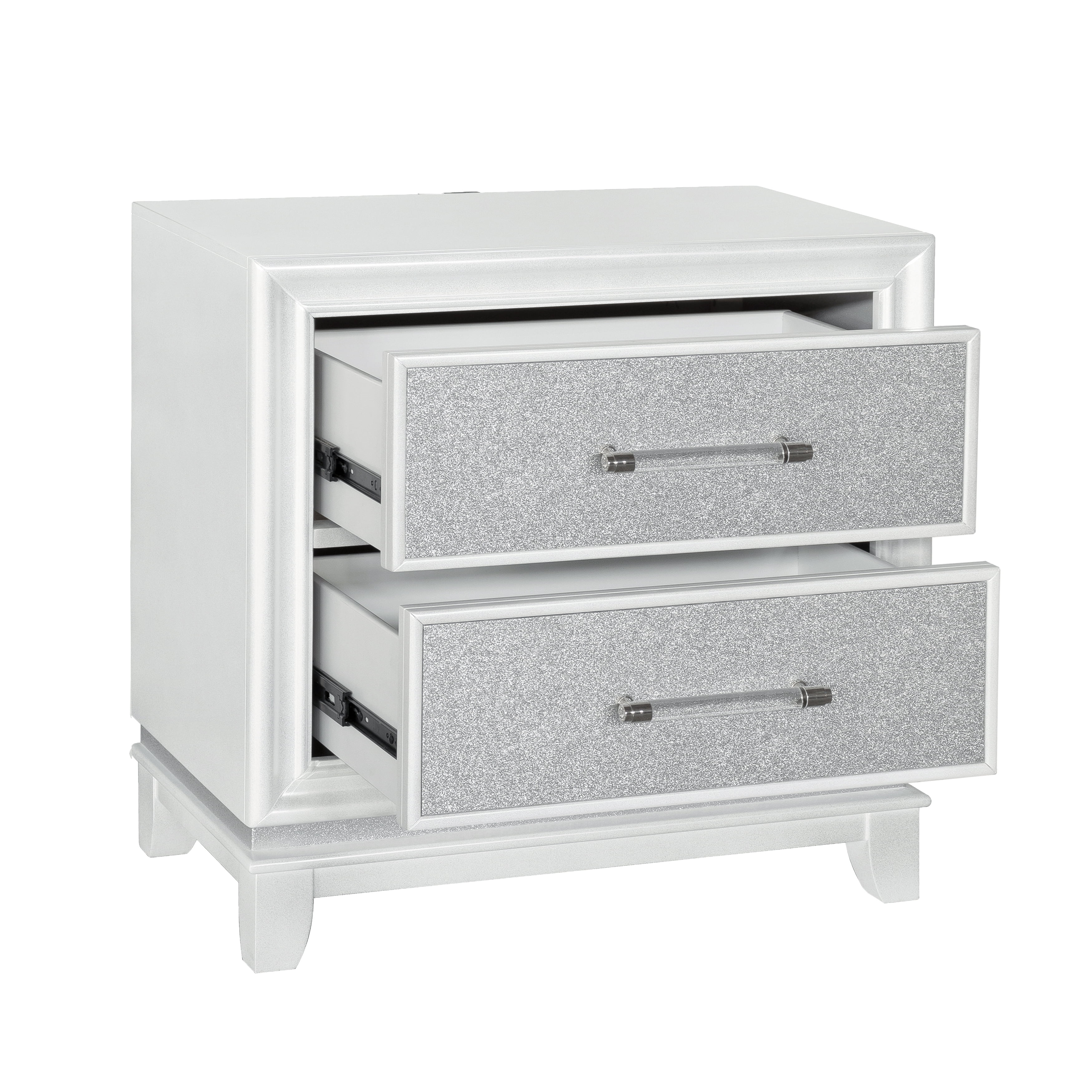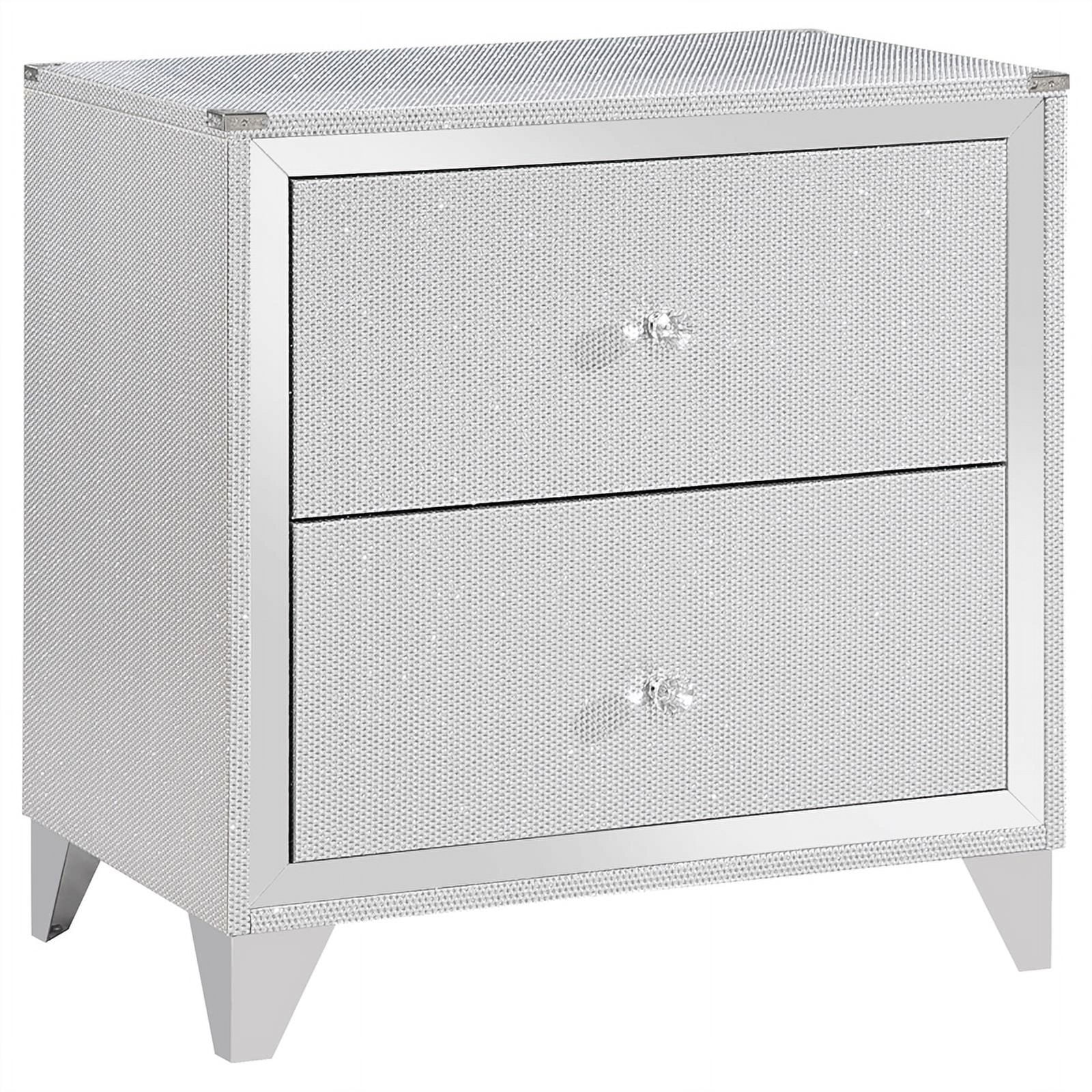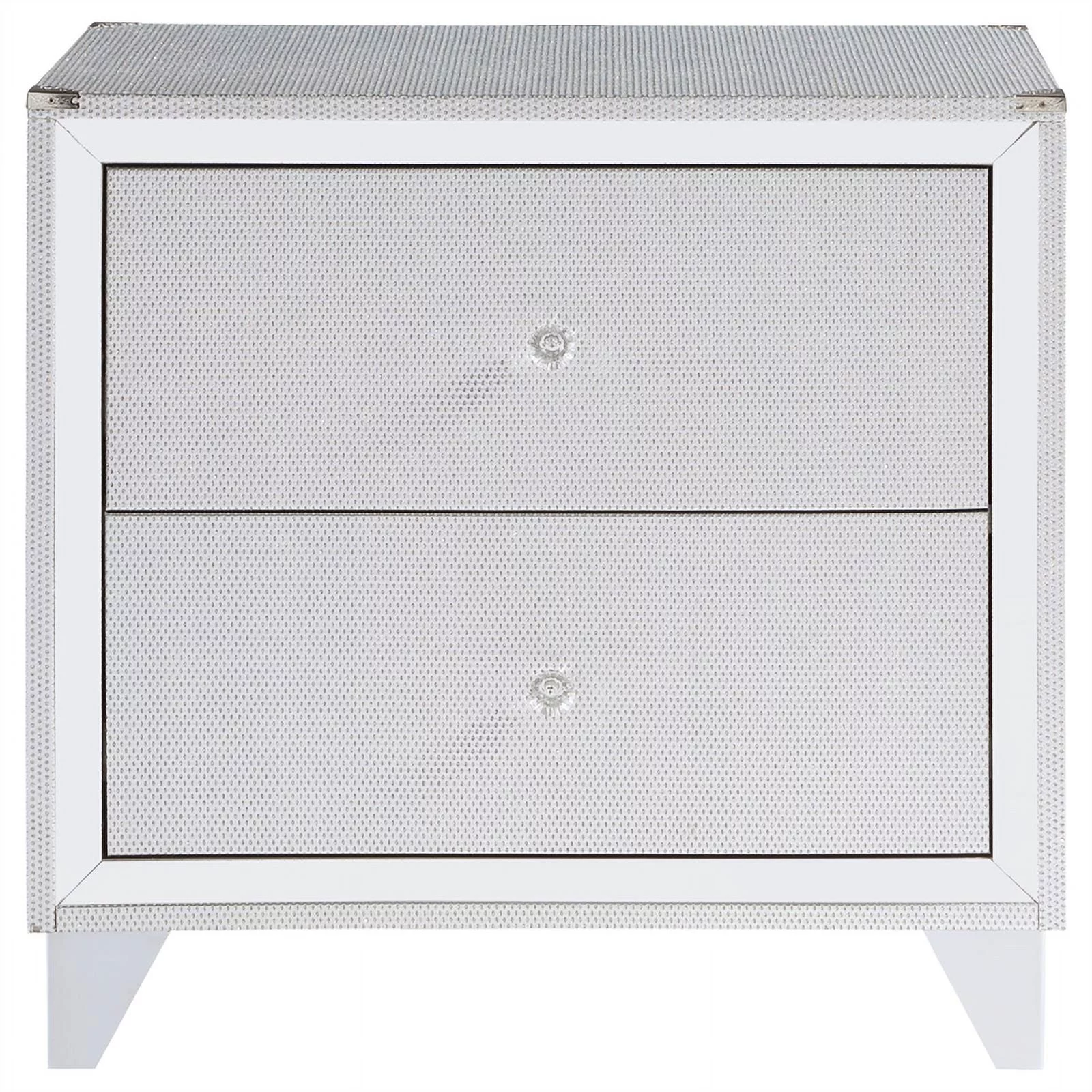 Traditional Look California King Size Bed 3pc Set Faux Leather Tufted Headboard Nightstand Silver Finish Bedroom Furniture