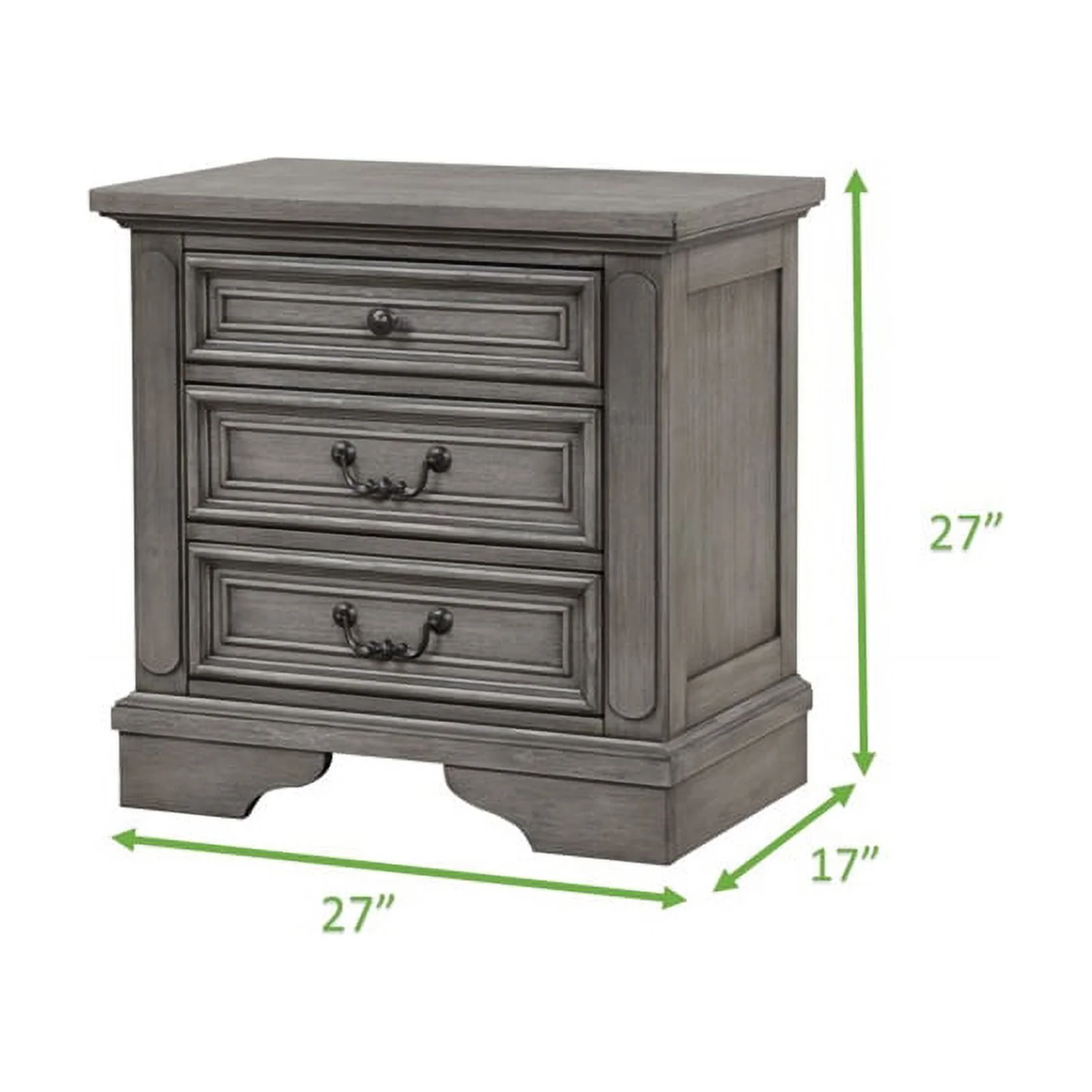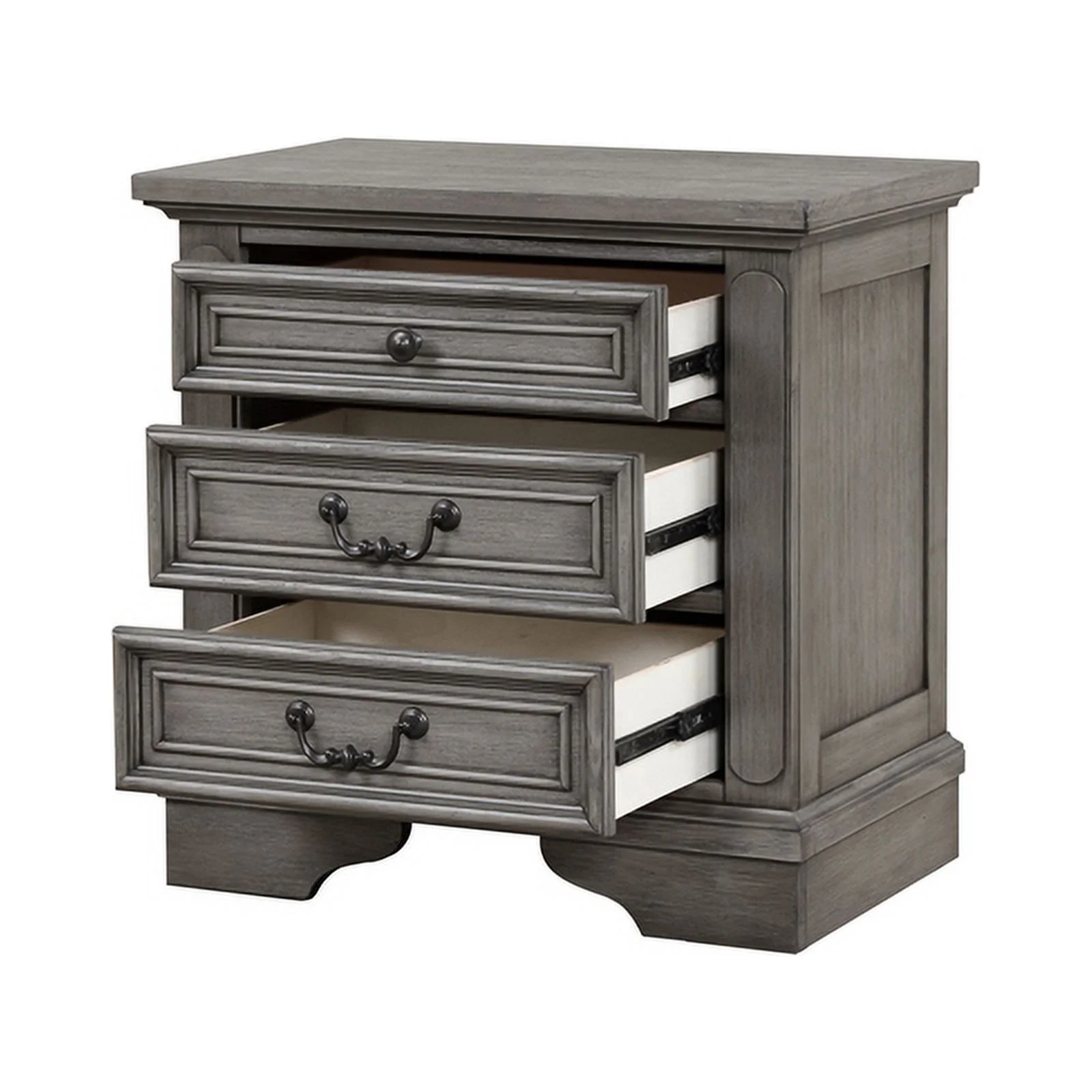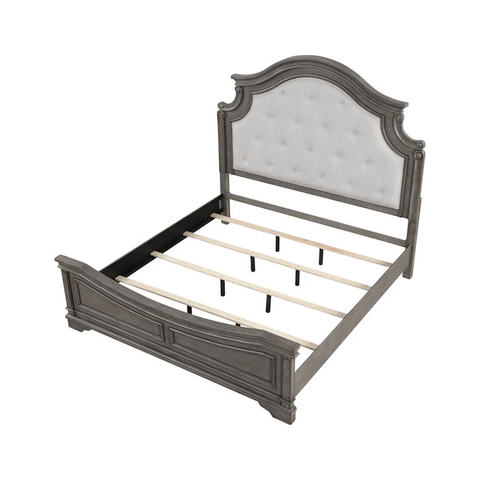 Est King Size Bed Antique Formal Fabric Tufted HB FB Bed 2x Nightstands 3pc Set Grey Finish Posts Bed bedroom Furniture