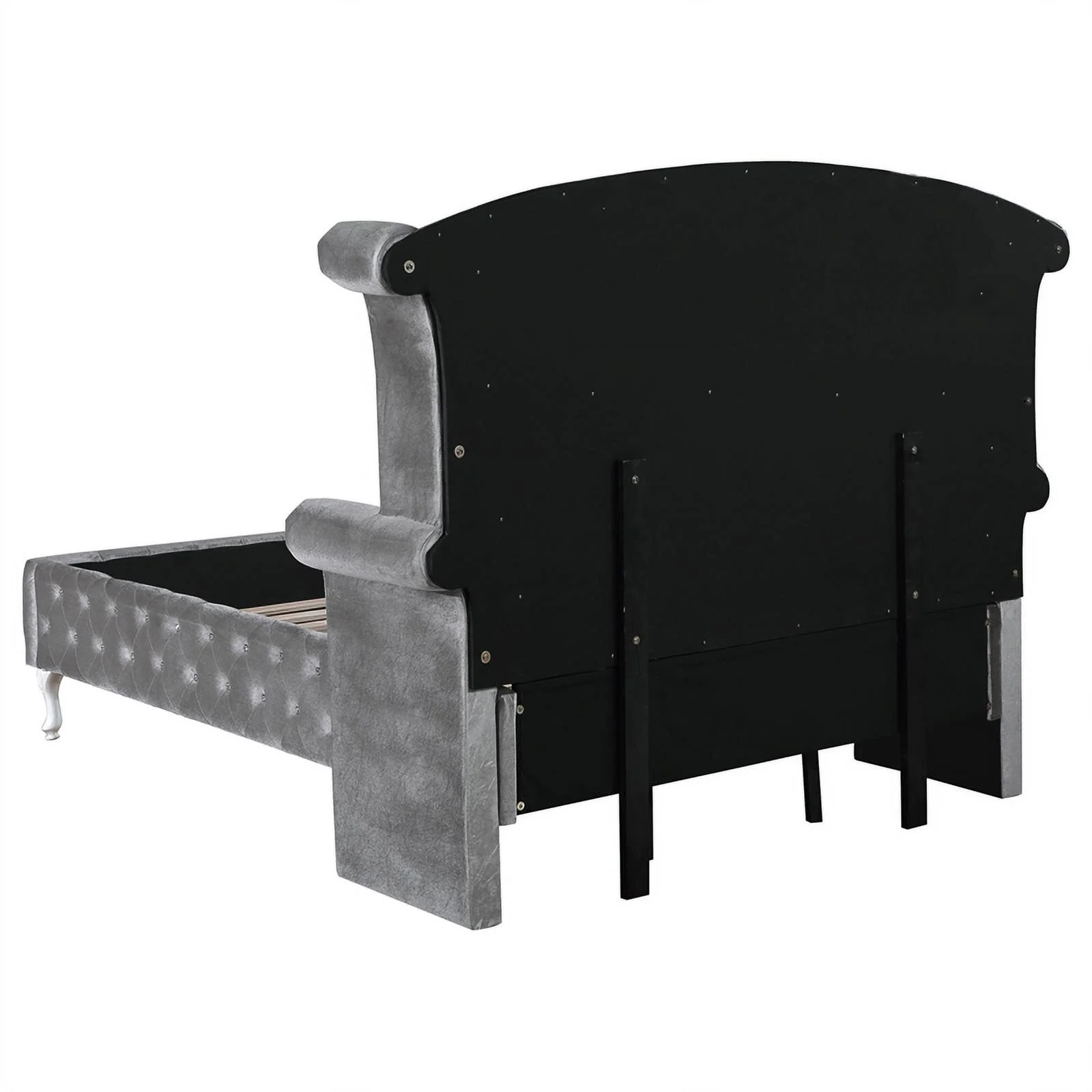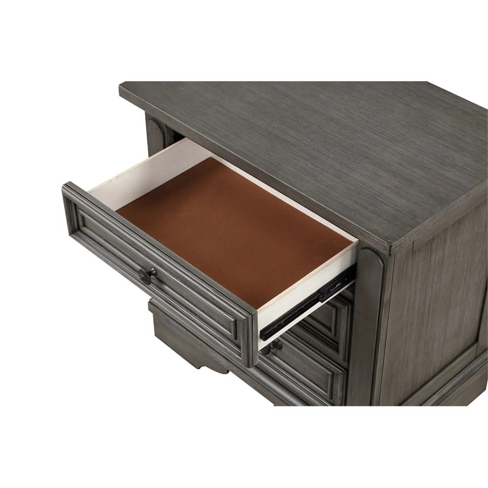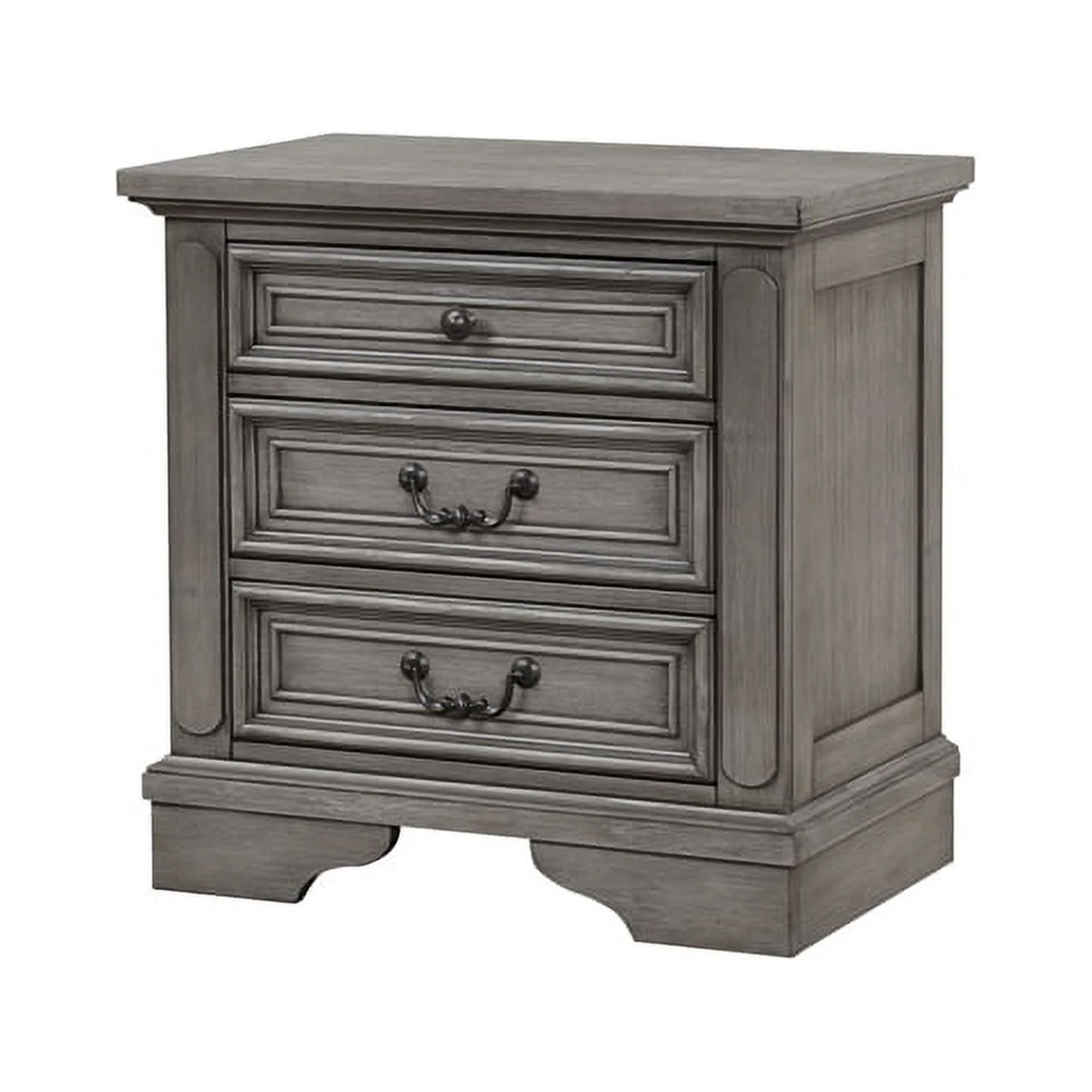 Est King Size Bed Antique Formal Fabric Tufted HB FB Bed 2x Nightstands 3pc Set Grey Finish Posts Bed bedroom Furniture