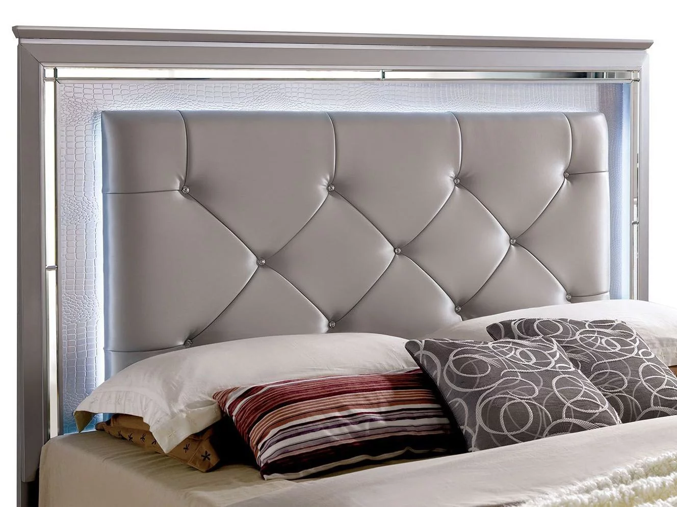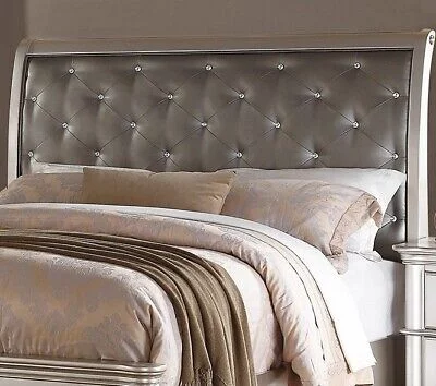 Silver Finish Chic Formal Solid wood Bedframe Est King Size Bed Leatherette Tufted Headboard Unique Design FB 1pc Bedroom Set