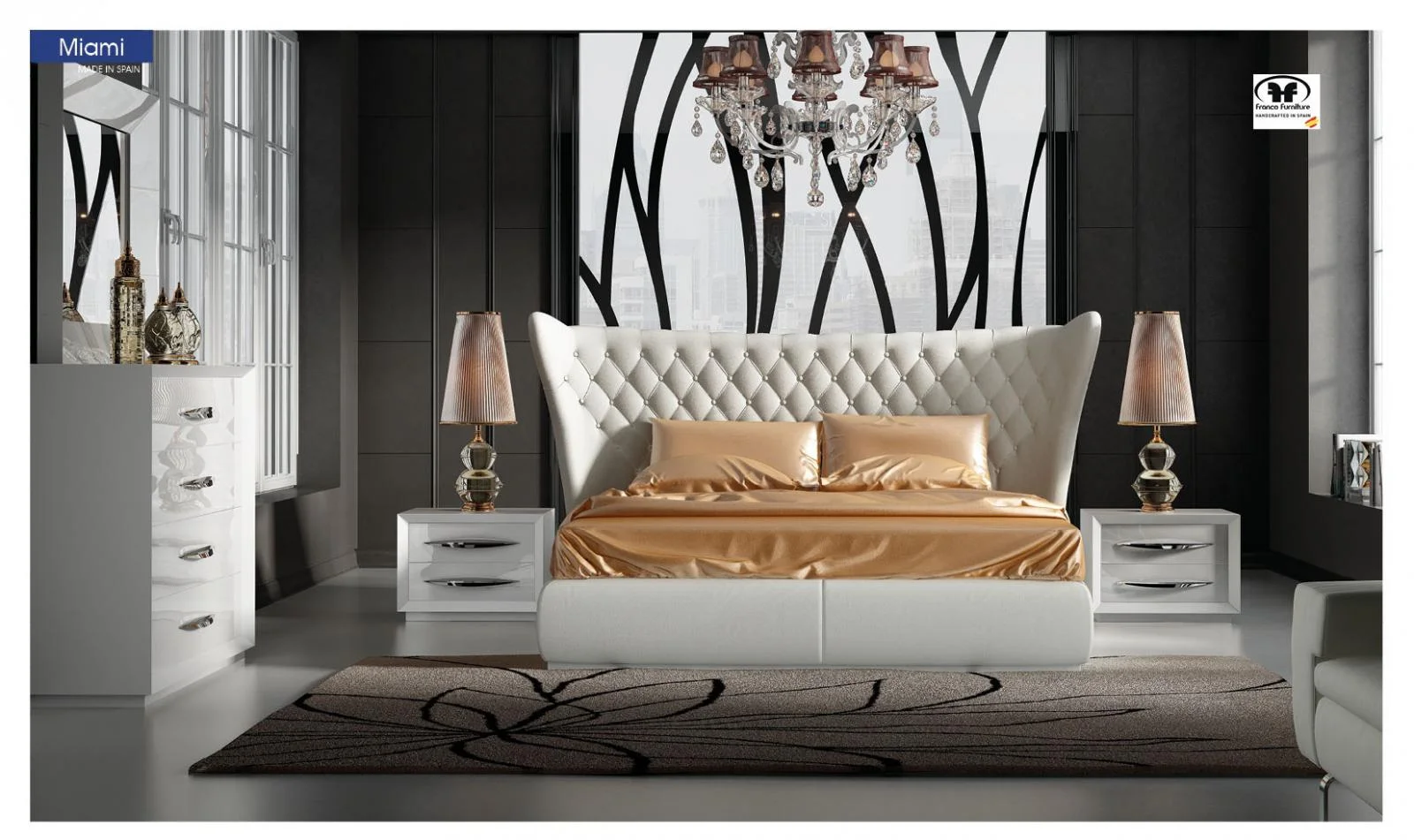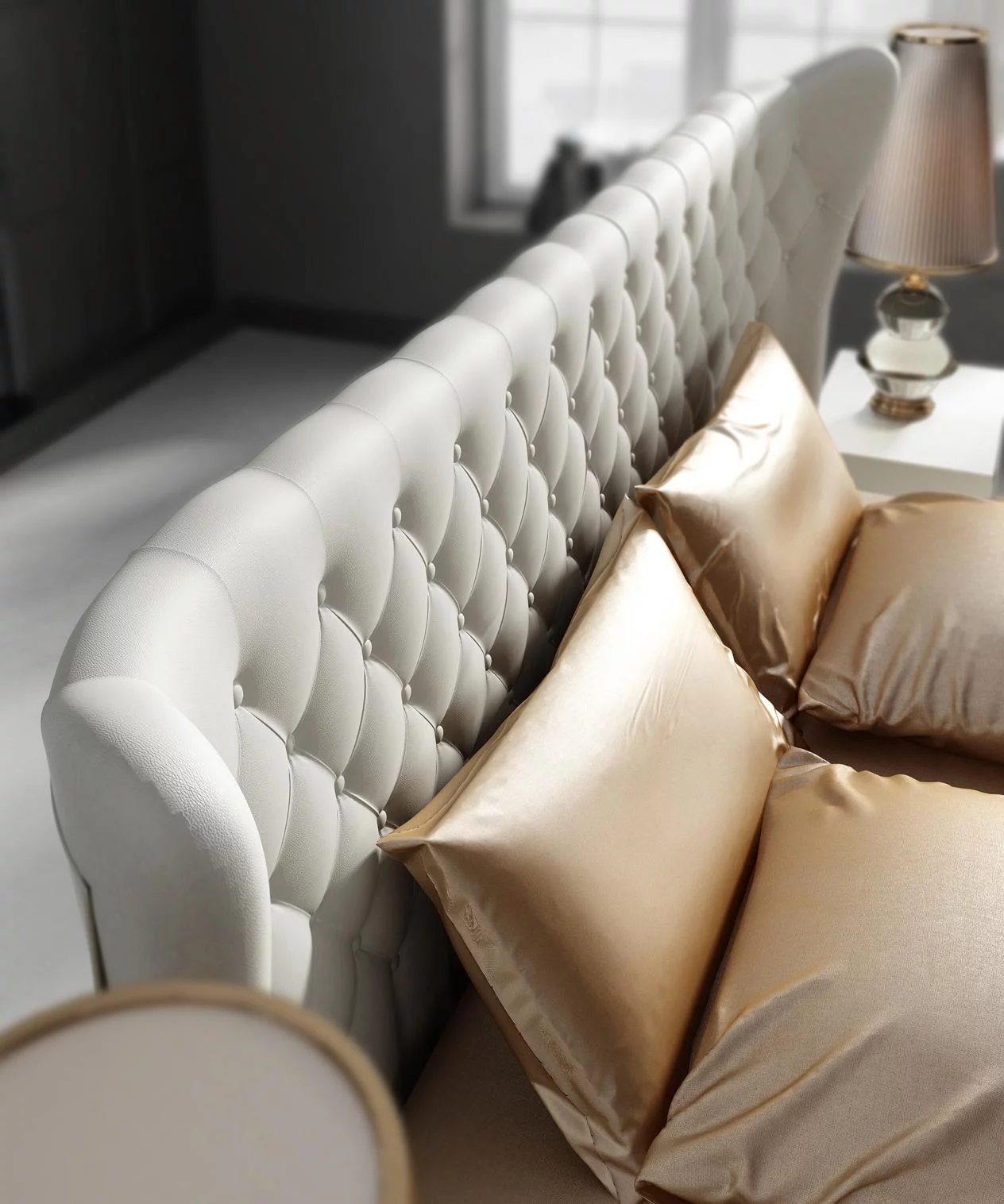 Sand Eco Leather Tufted King Bedroom Set 3Pcs Made in Spain ESF Velvet