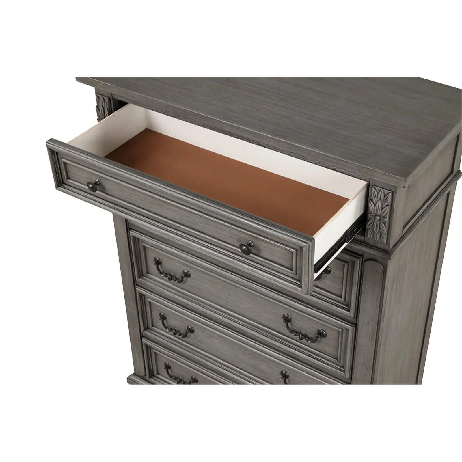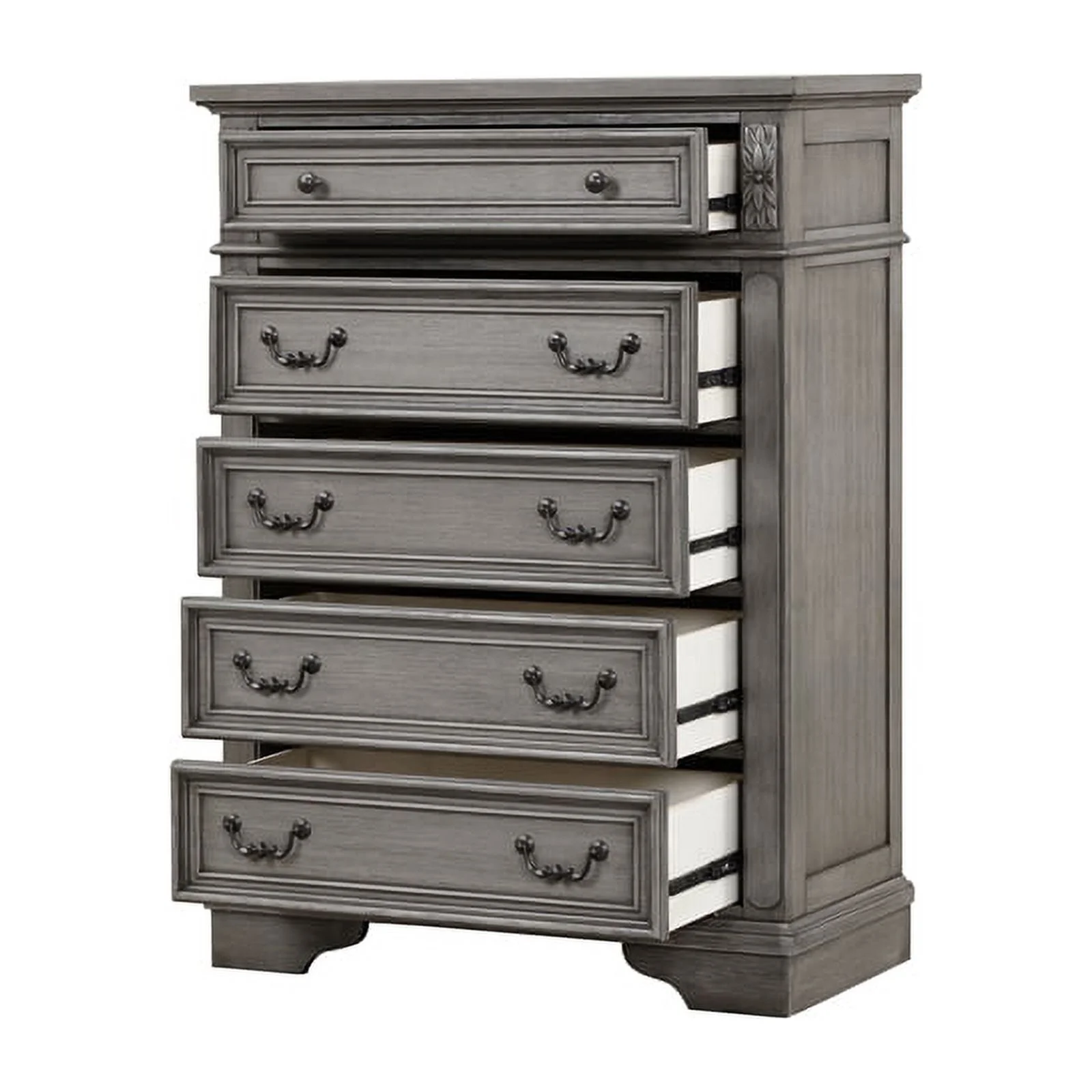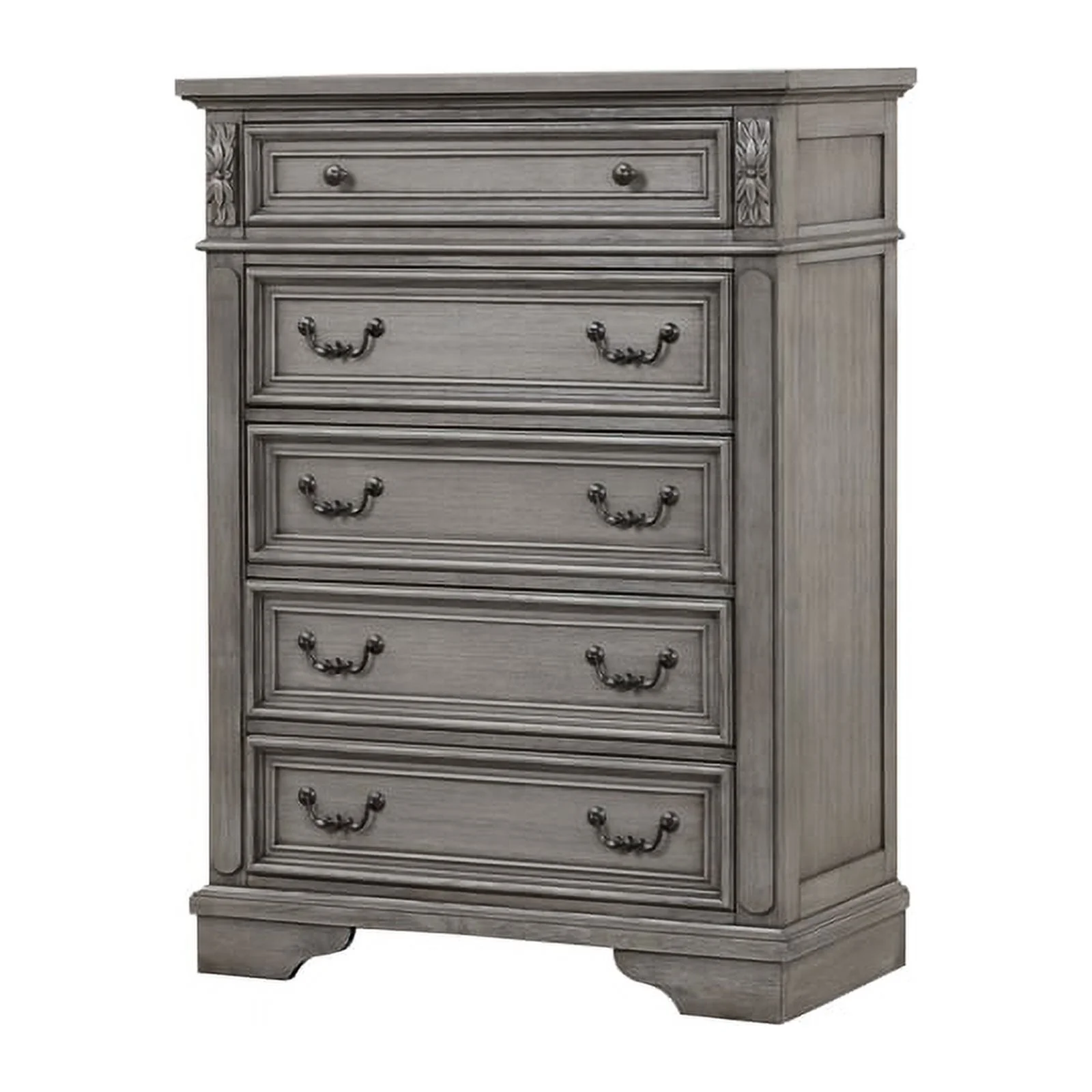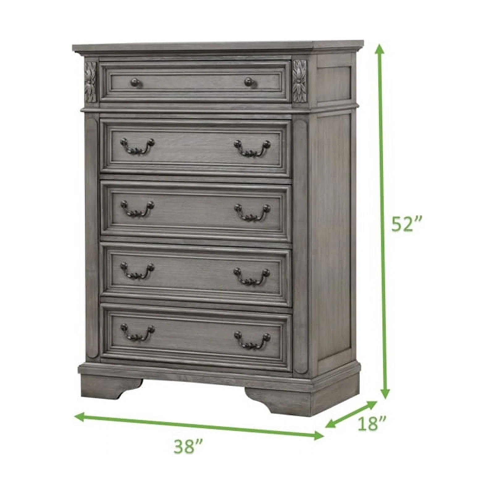 Pemberly Row Traditional Tufted King 5 Pc Bedroom Set Made with Wood in Gray
