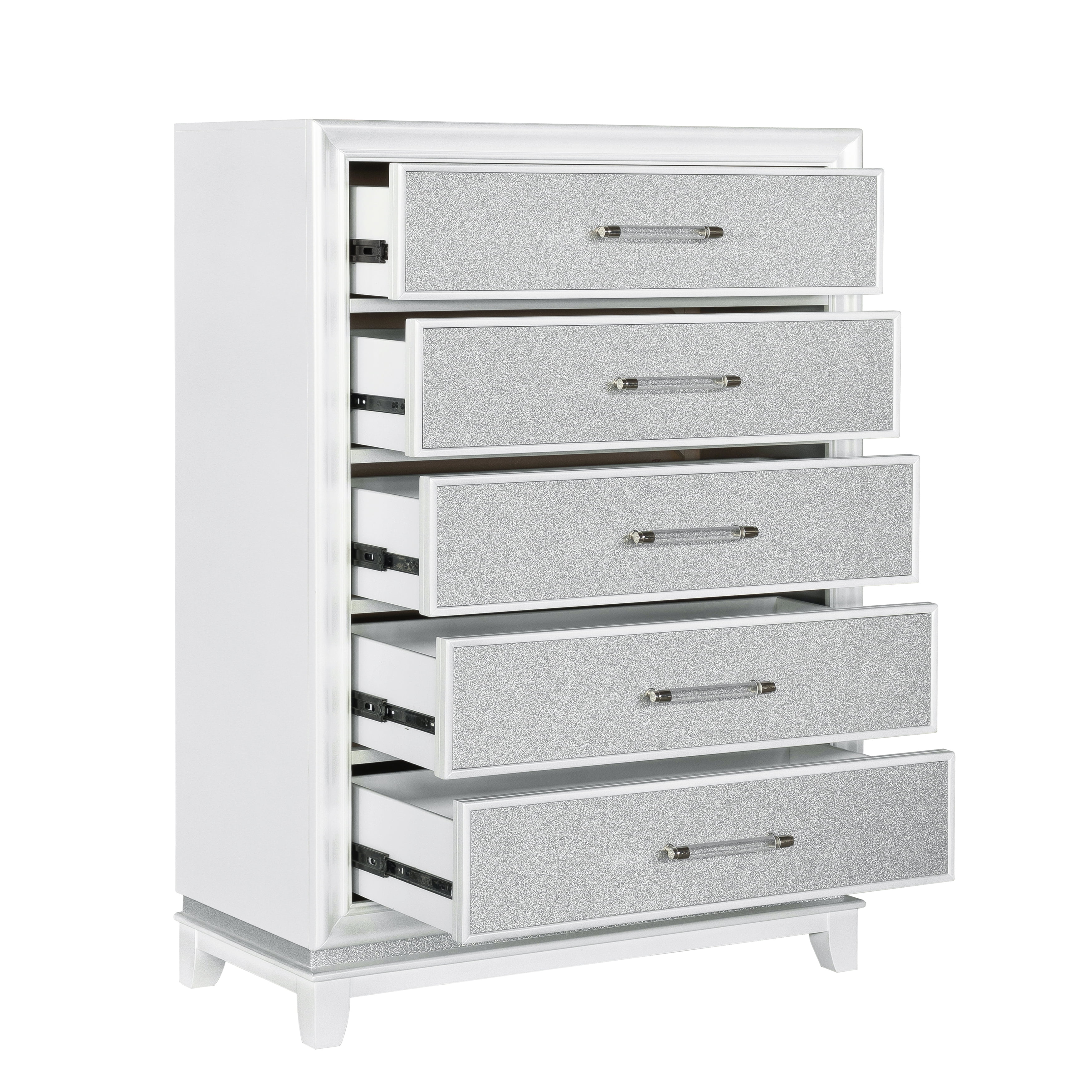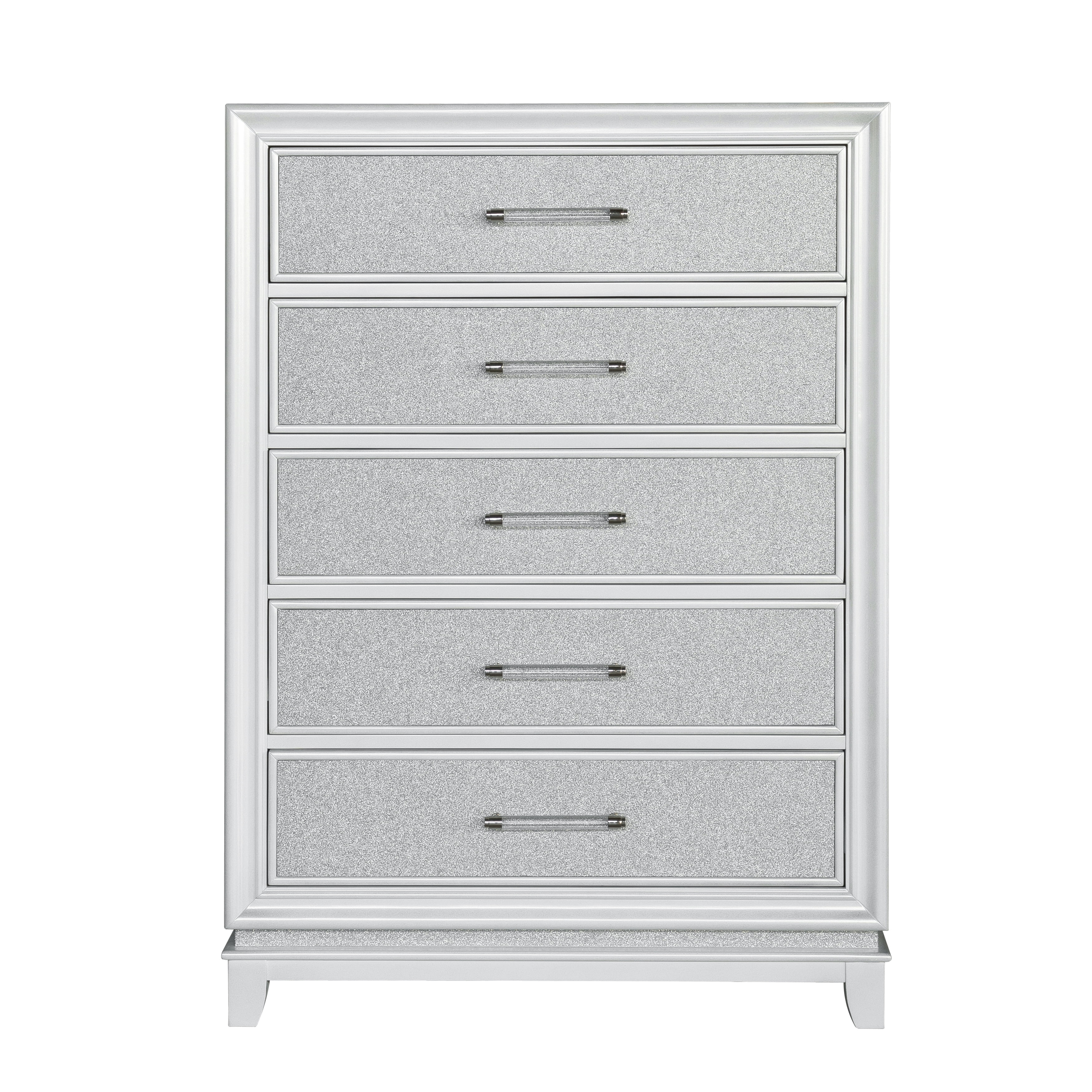 Maklaine 5-piece Modern Wood Tufted California King Bedroom Set in Silver