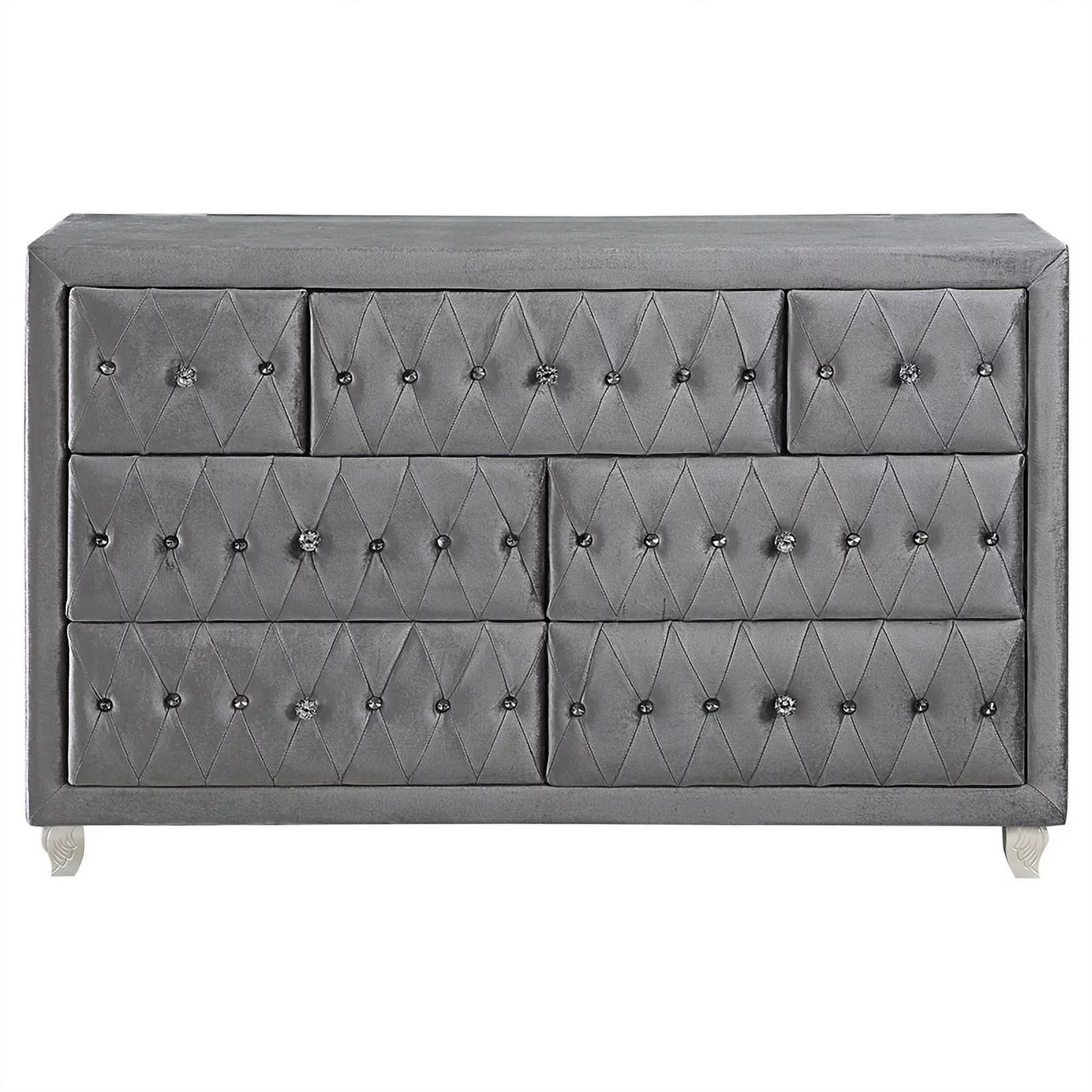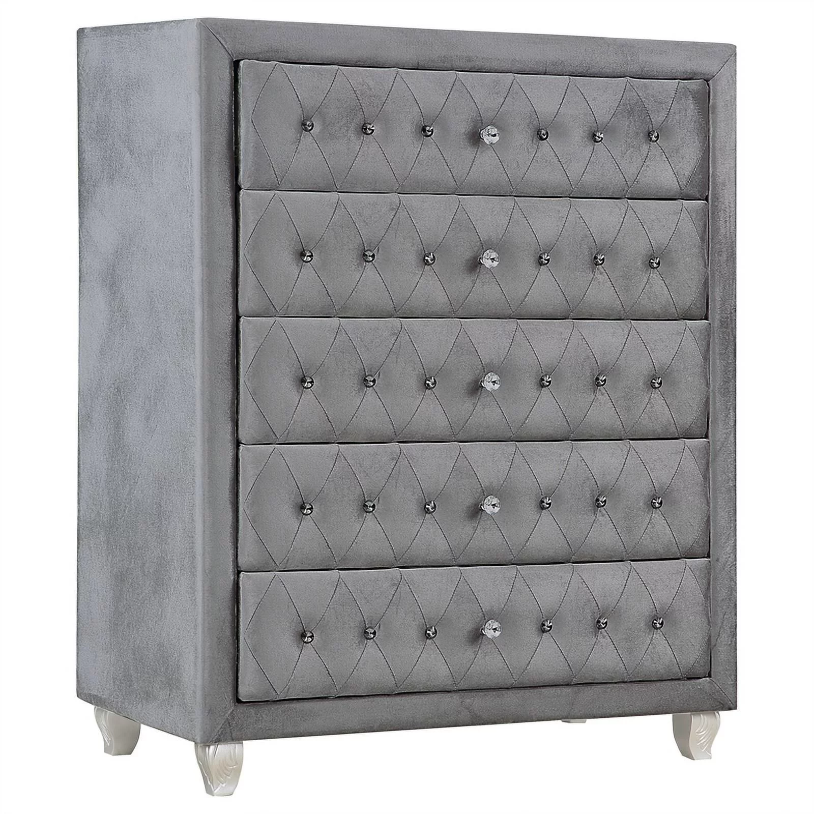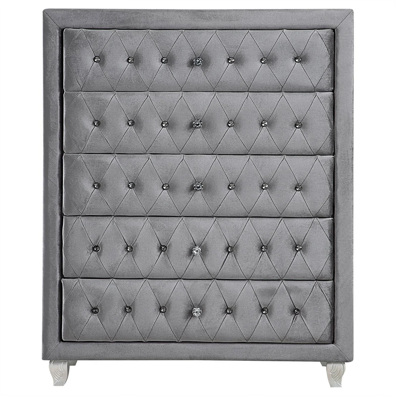Maklaine 5-piece Velvet Tufted California King Bedroom Set in Gray