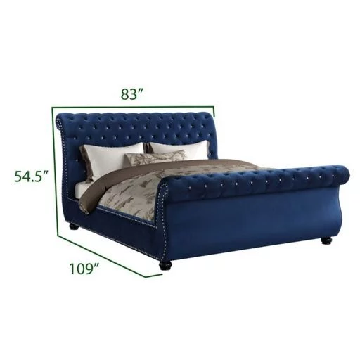 Sportaza King 5-N Pc Tufted Upholstery Vanity Bedroom Set Made With Wood In Blue