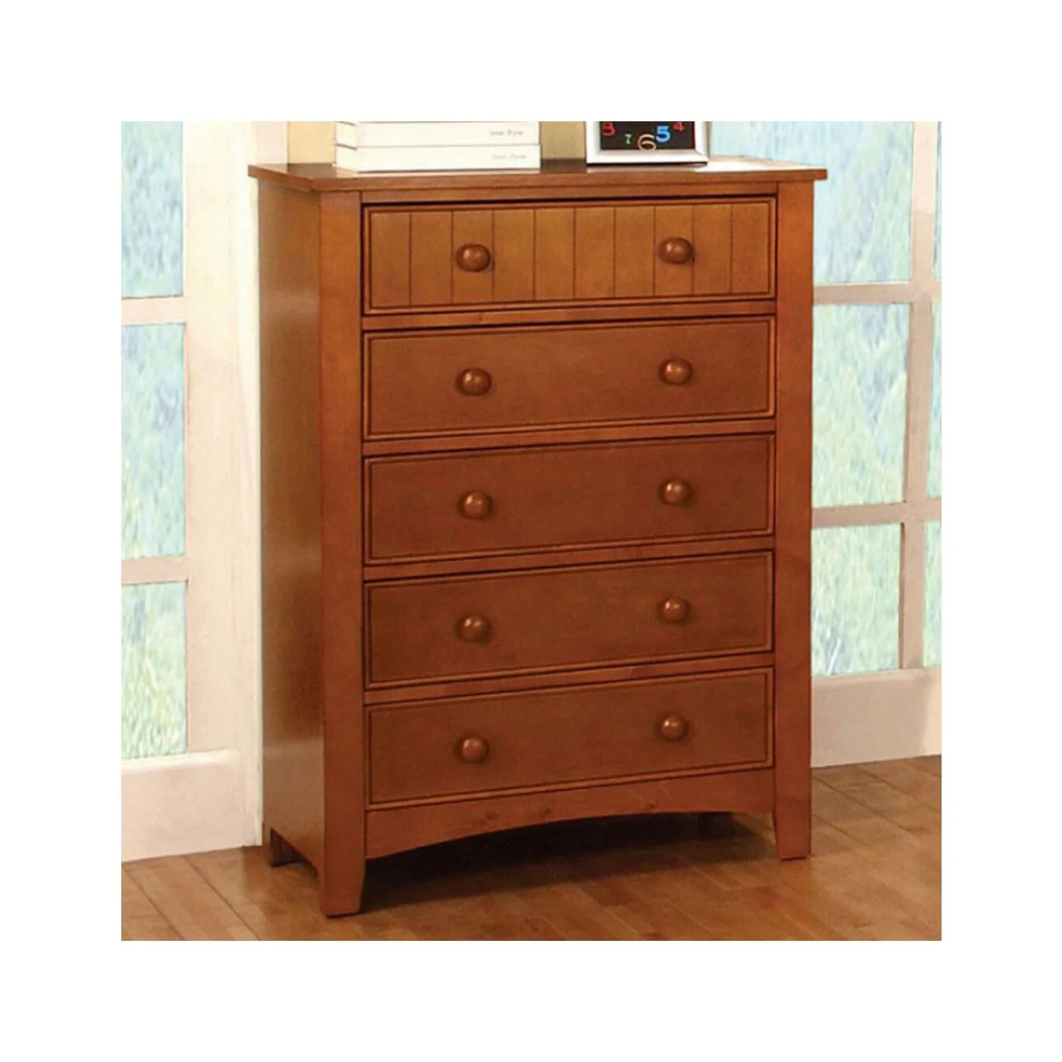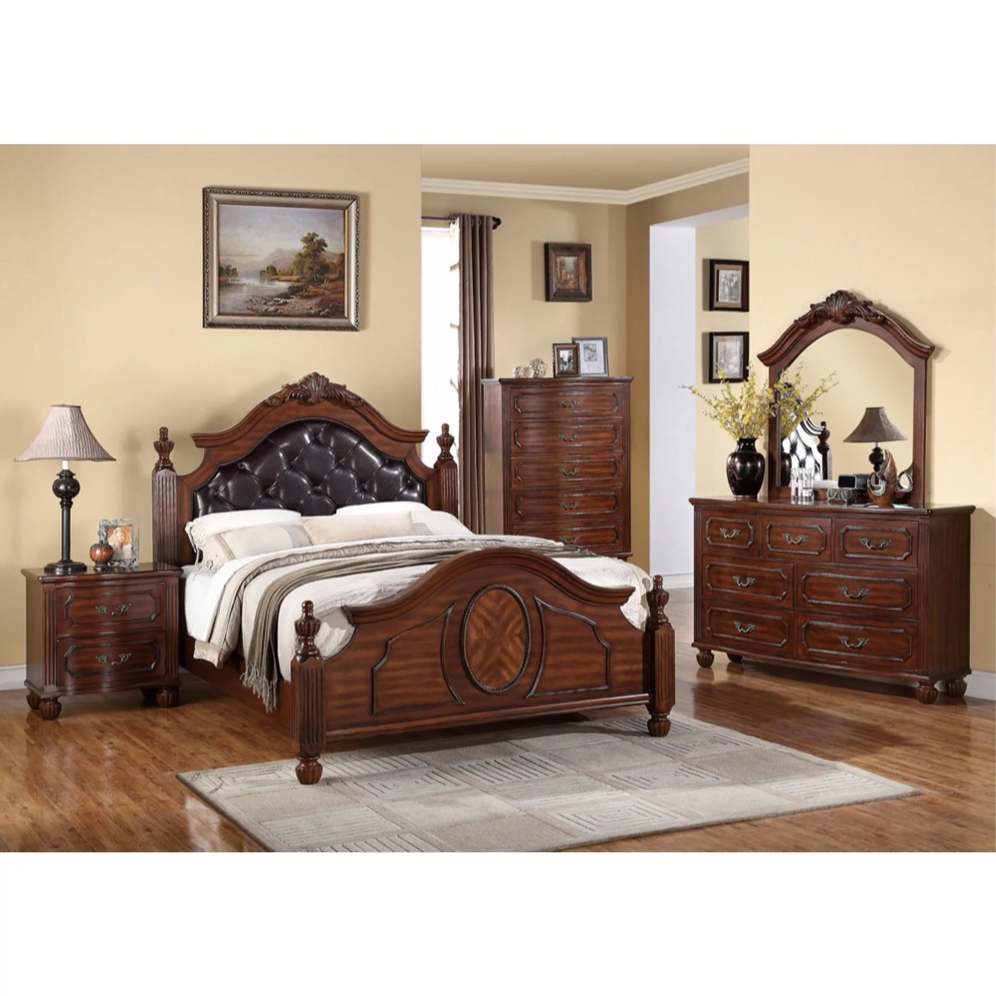 Transitional Wooden E.King Bed With PU HB & Circular Floral Design, Cherry Finish