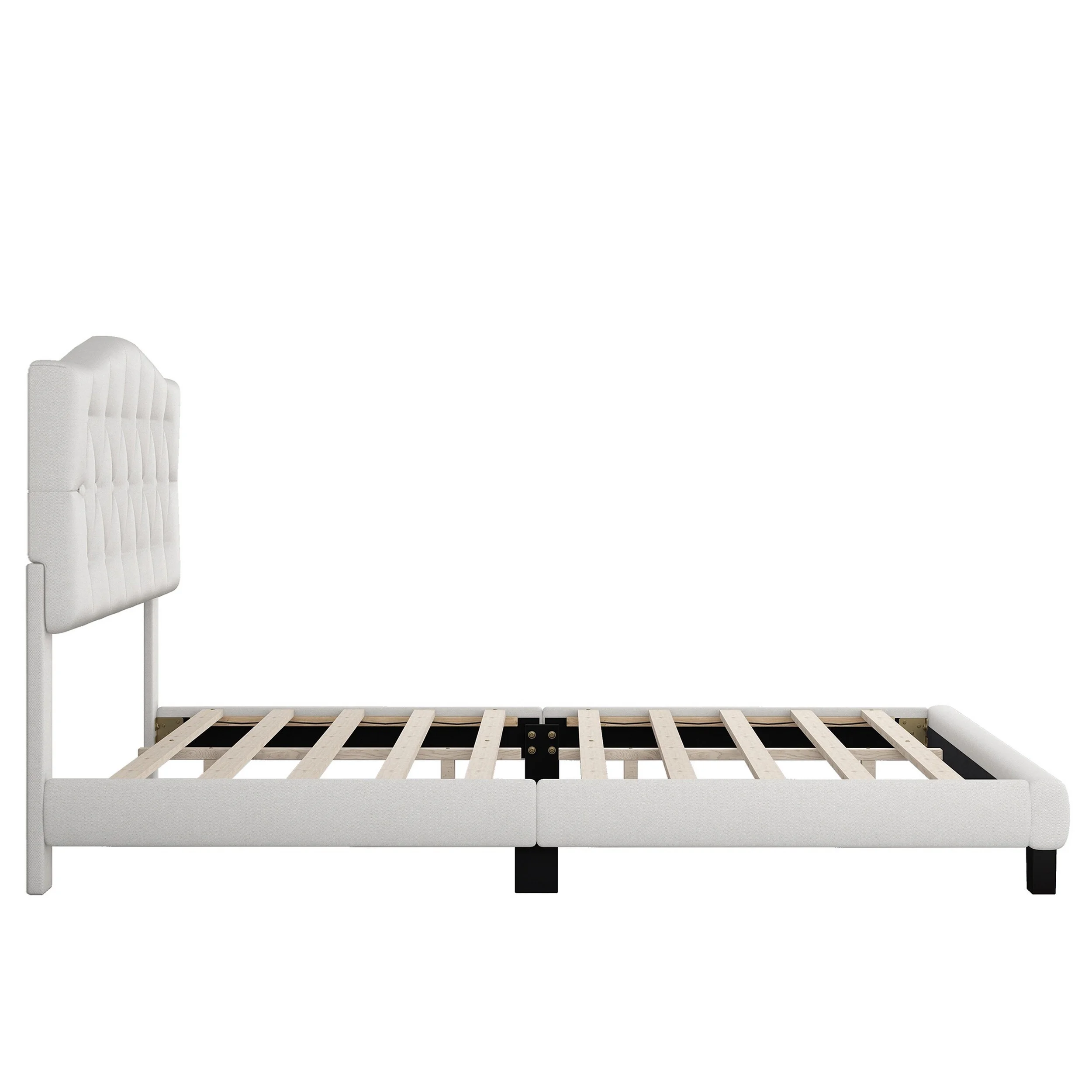 Cody King Size Platform Bed with Diamond Button Tufted Headboard, Beige