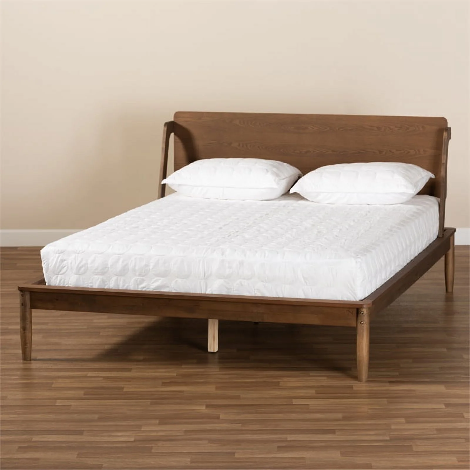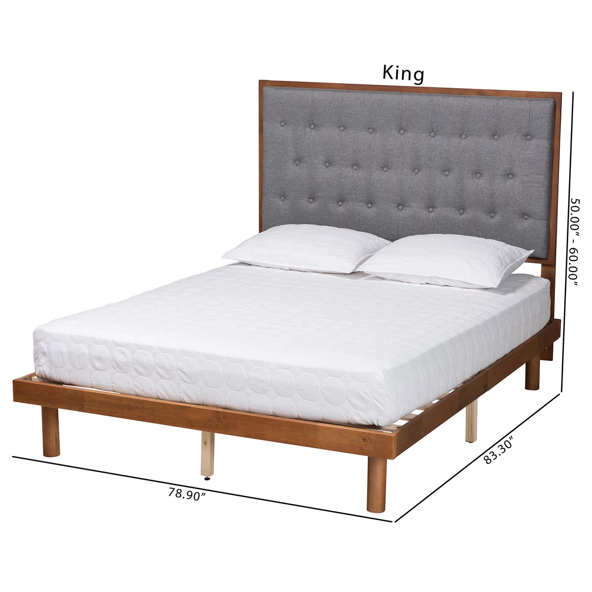 Baxton Studio Bellini Classic and Traditional Grey Fabric and Walnut Brown Finished Wood King Size Platform Bed