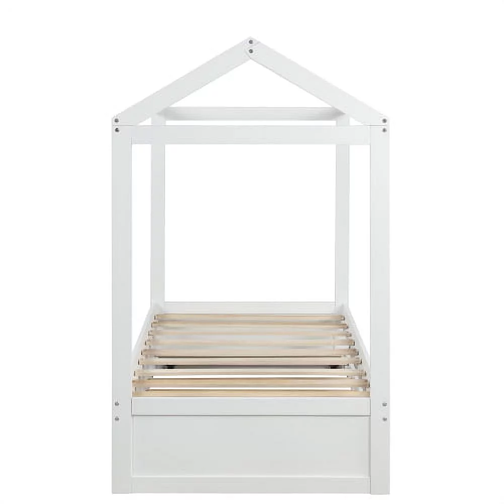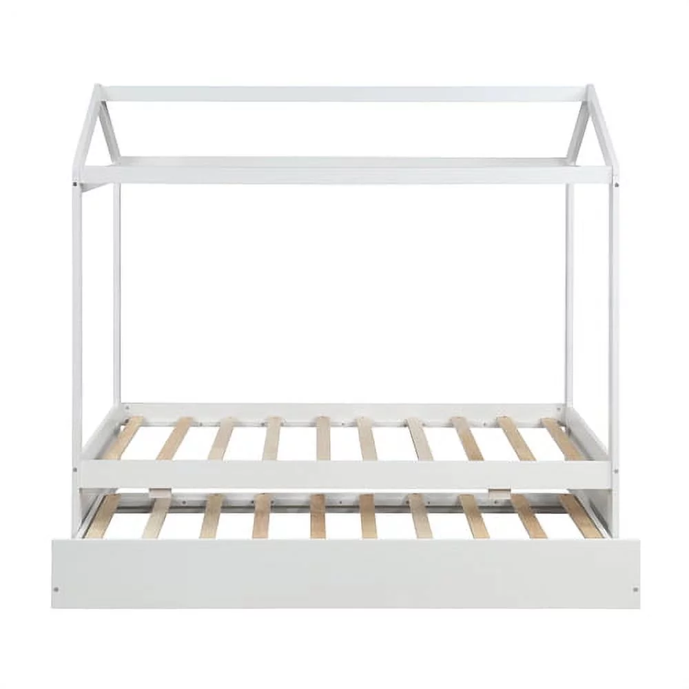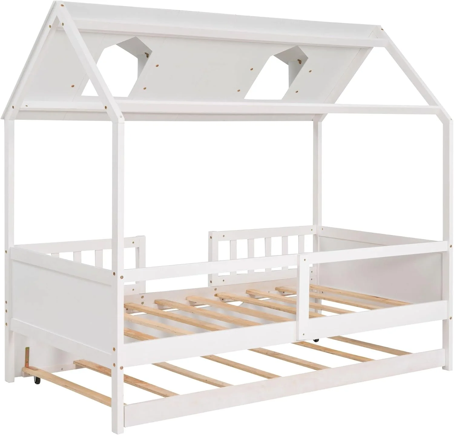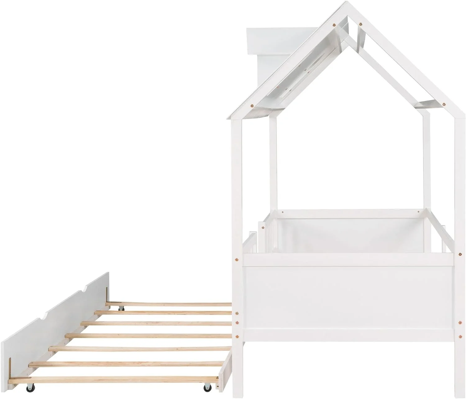 Churanty Twin Size Wooden House Bed with Trundle and Roof, Children House Bunk Bed Can Be Decorated,White