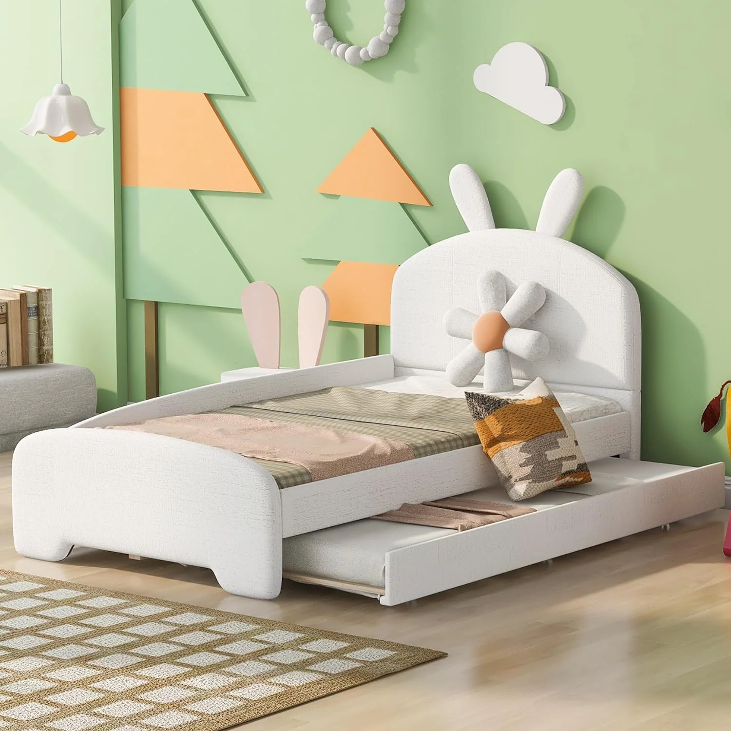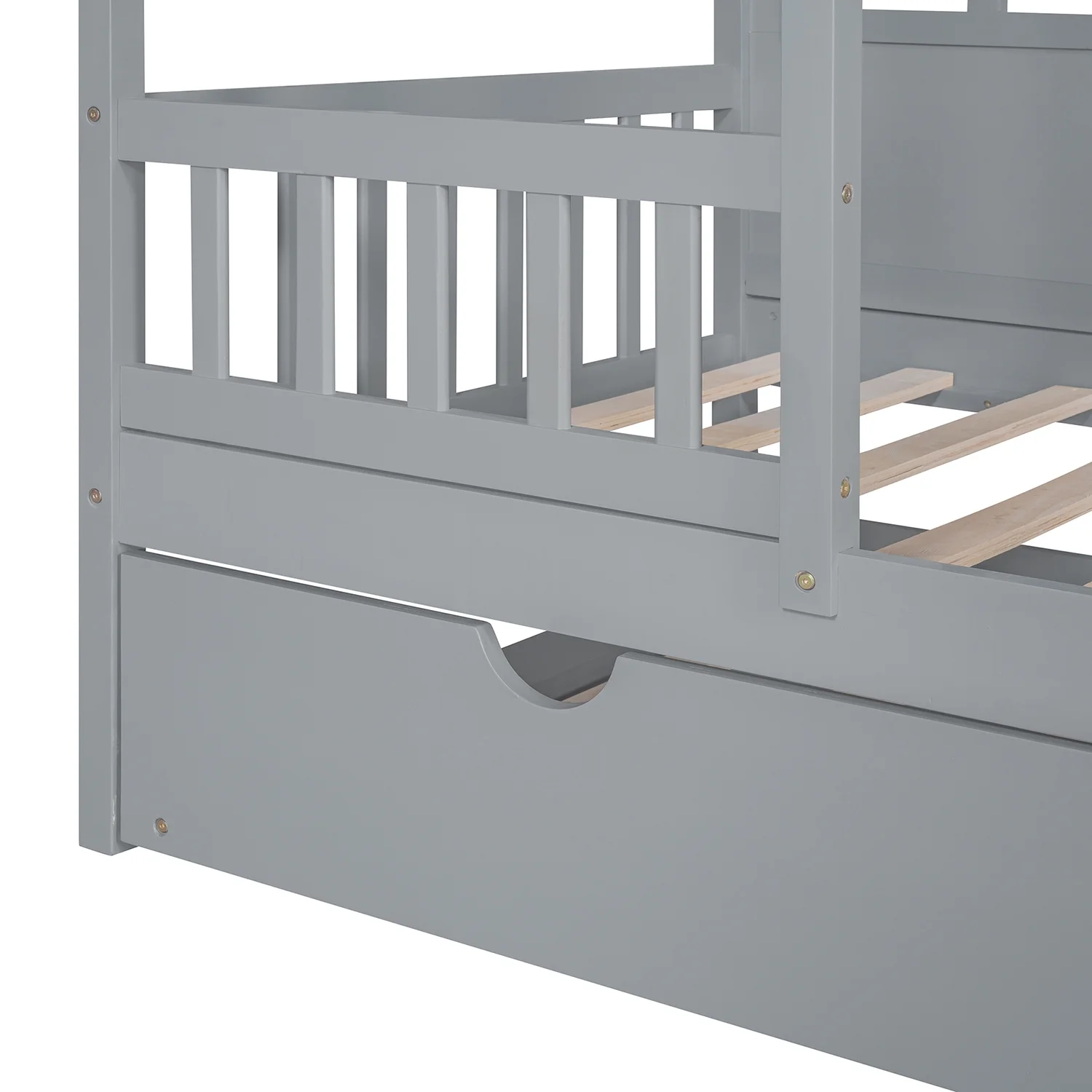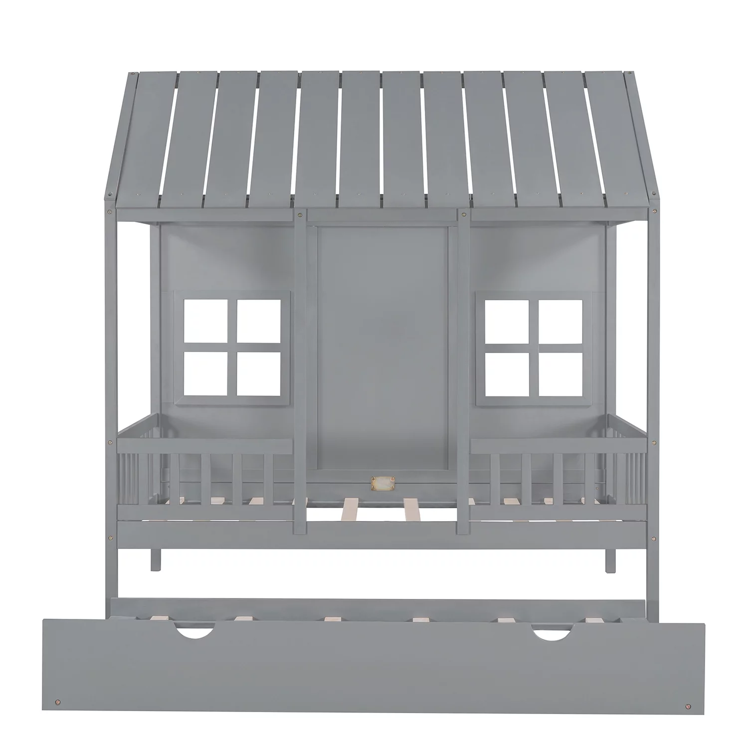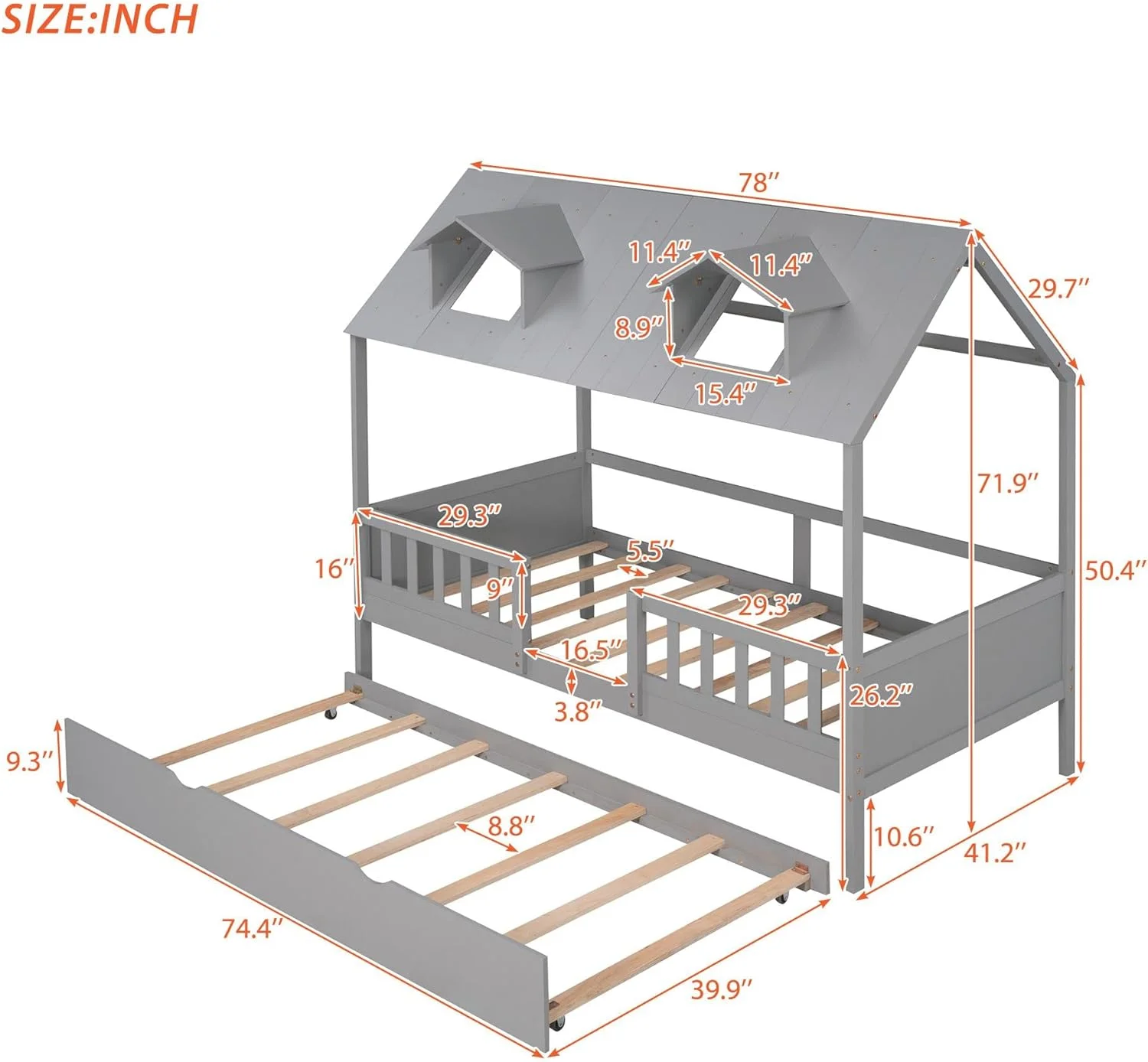 Churanty Twin Size Wooden House Bed with Trundle and Roof, Children House Bunk Bed Can Be Decorated,White