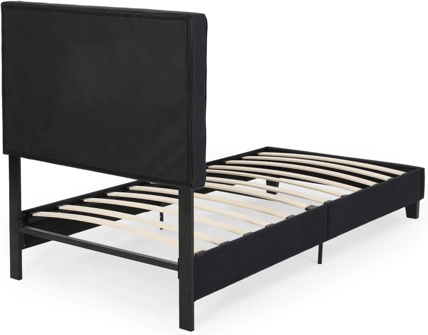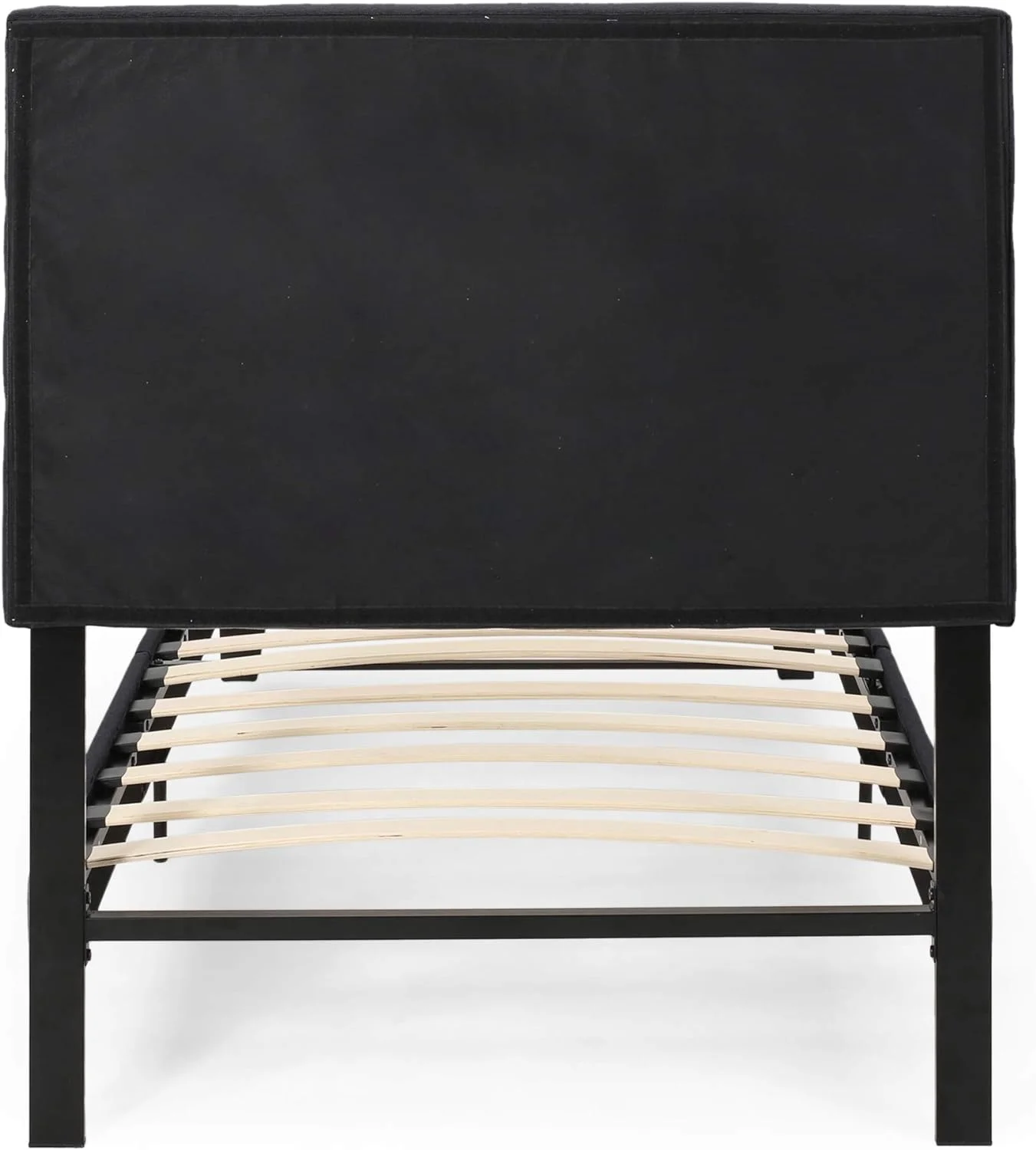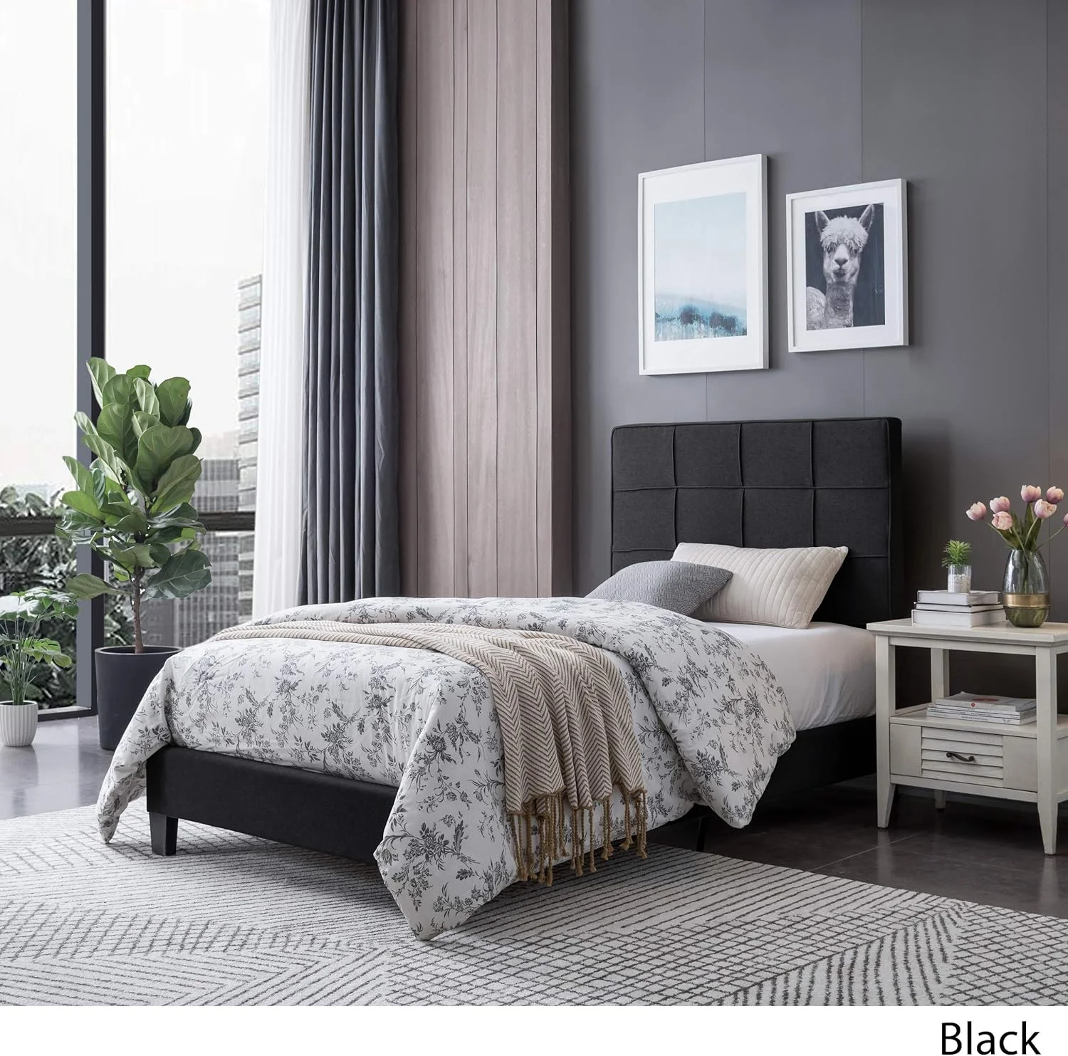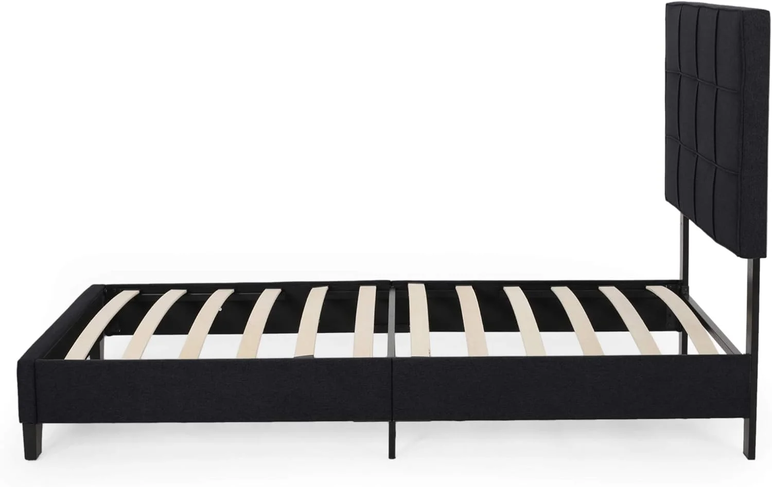 Rio Faux Leather Upholstered Platform Bed With Tufted Headboard, Queen, Black