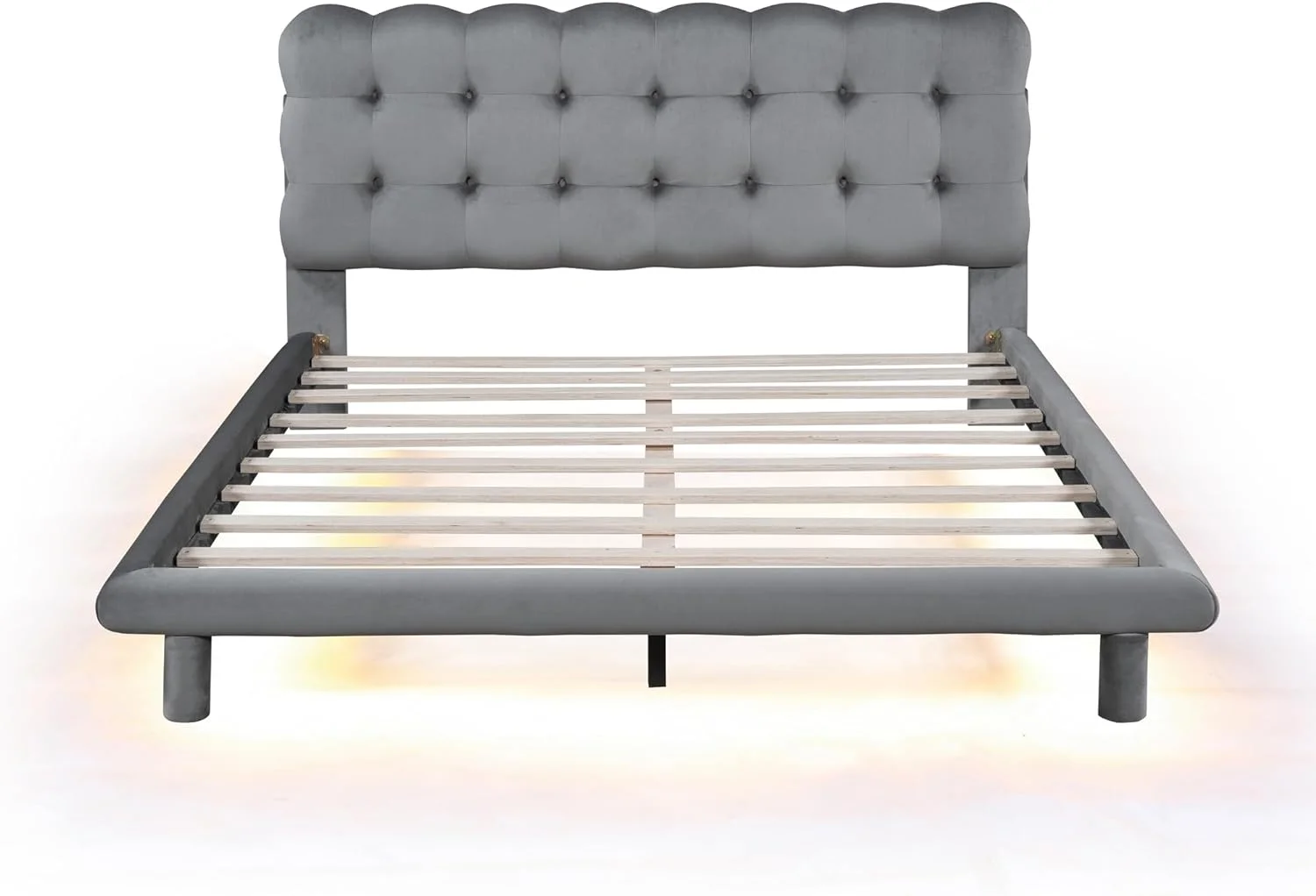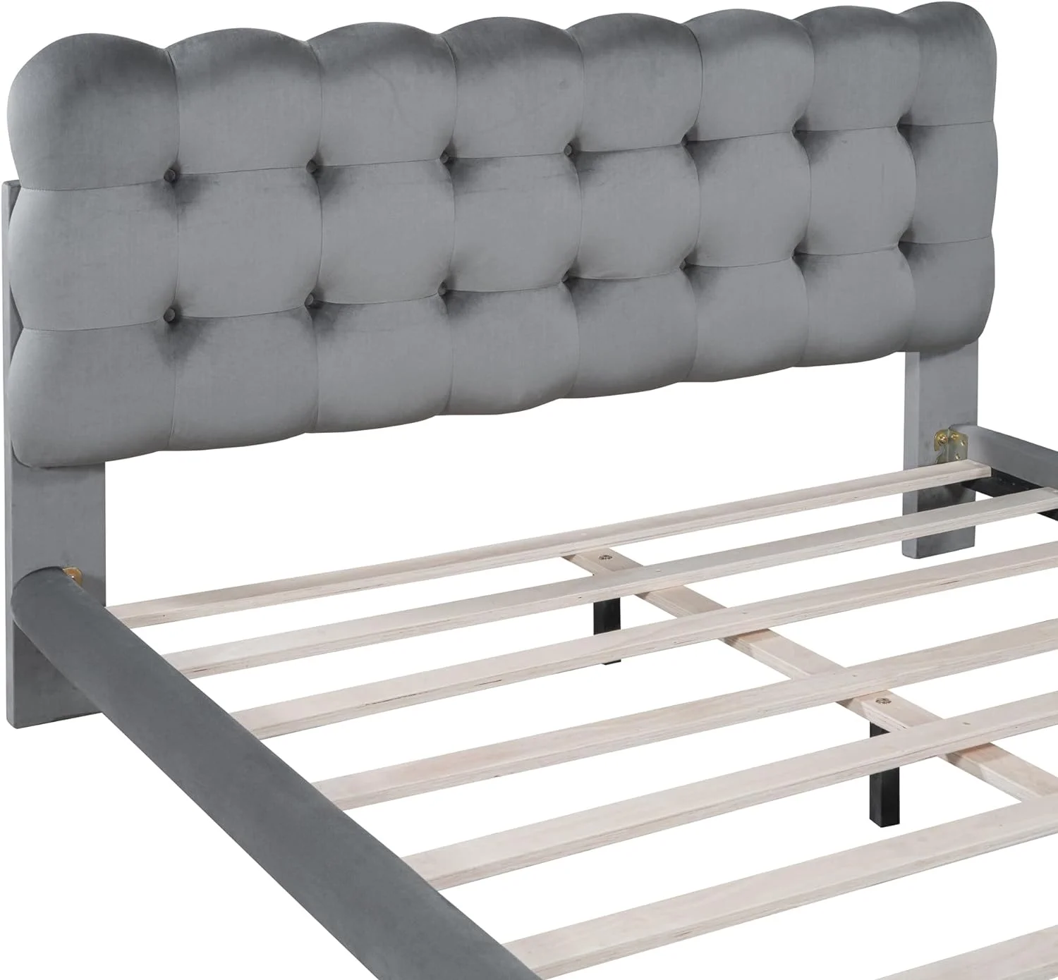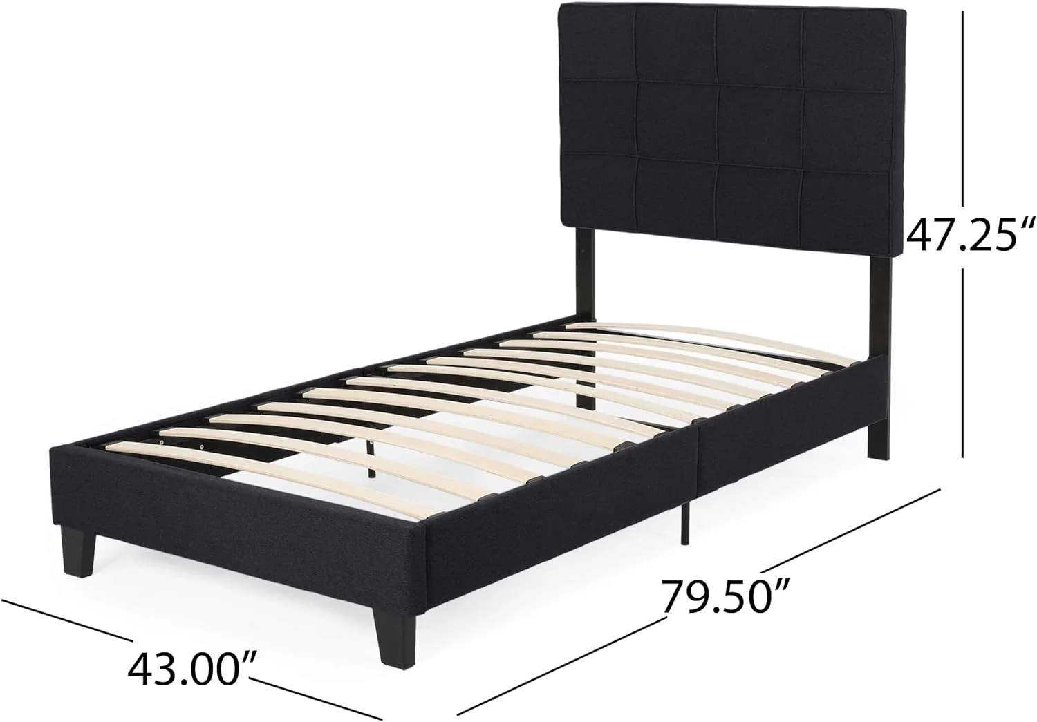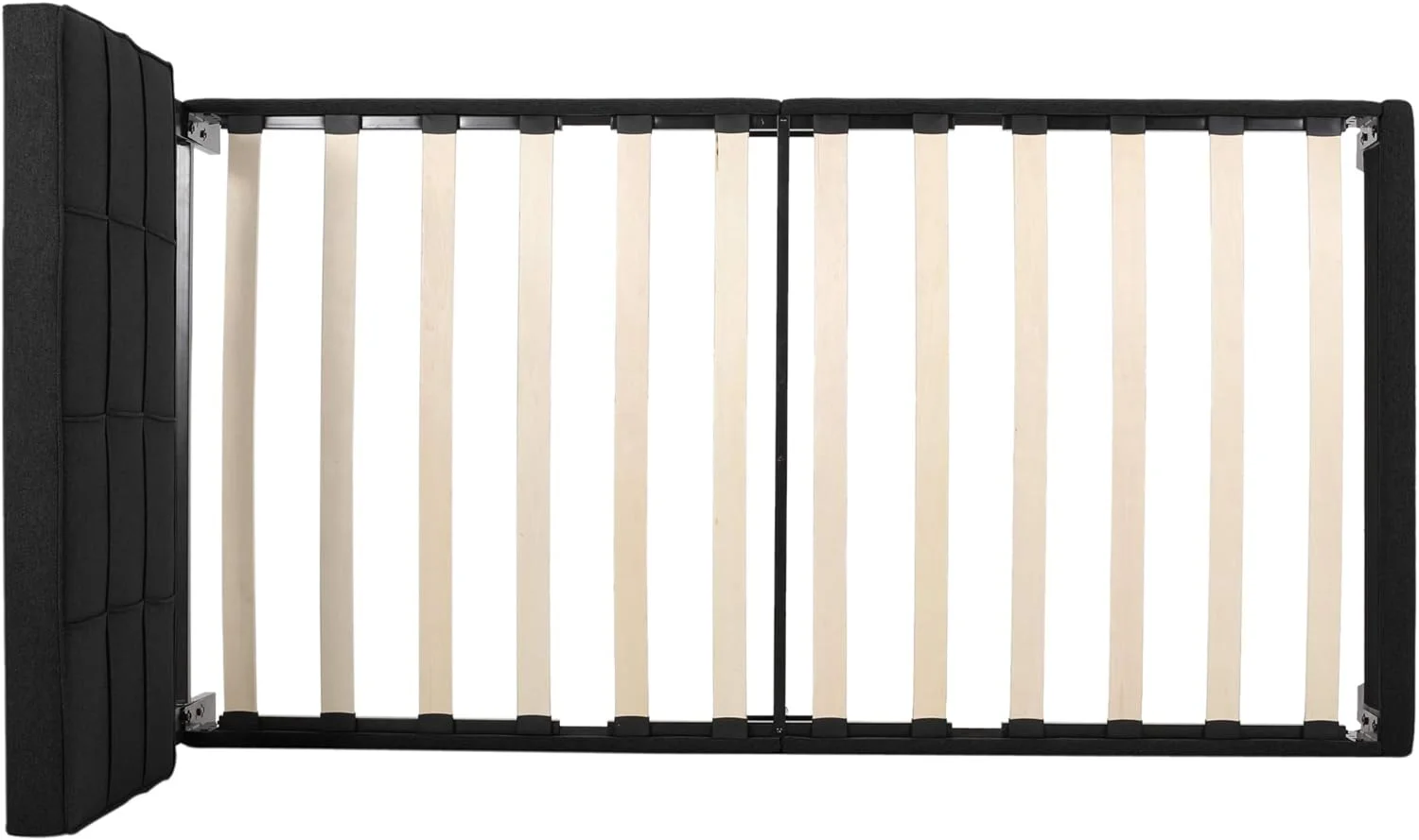 Rio Faux Leather Upholstered Platform Bed With Tufted Headboard, Queen, Black