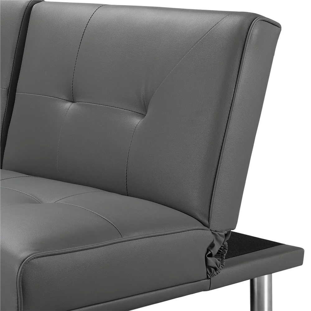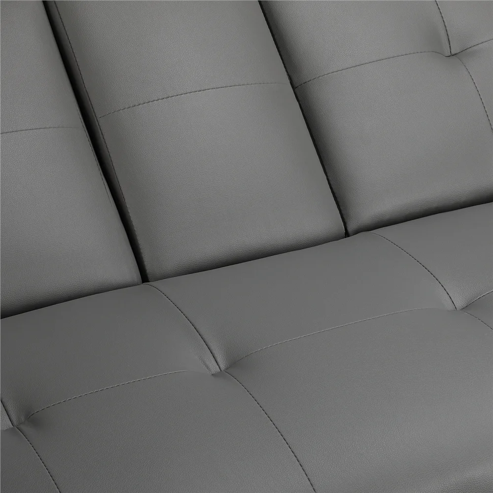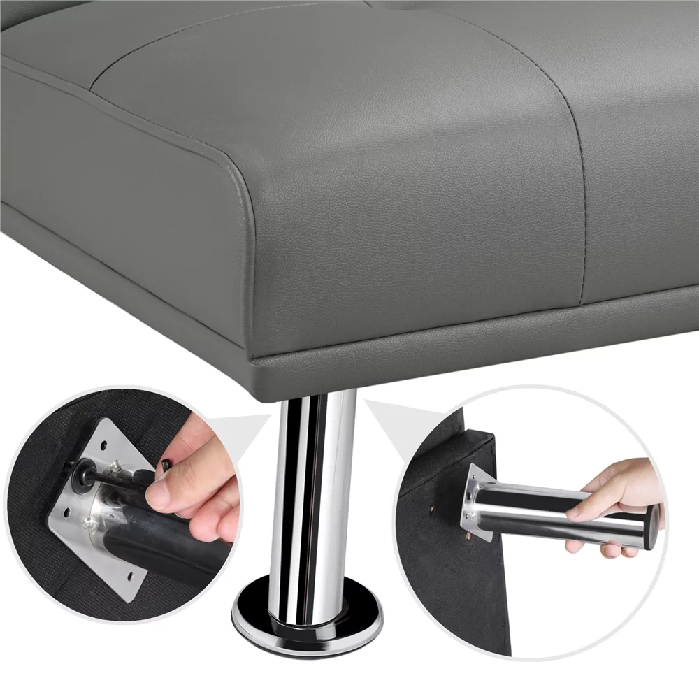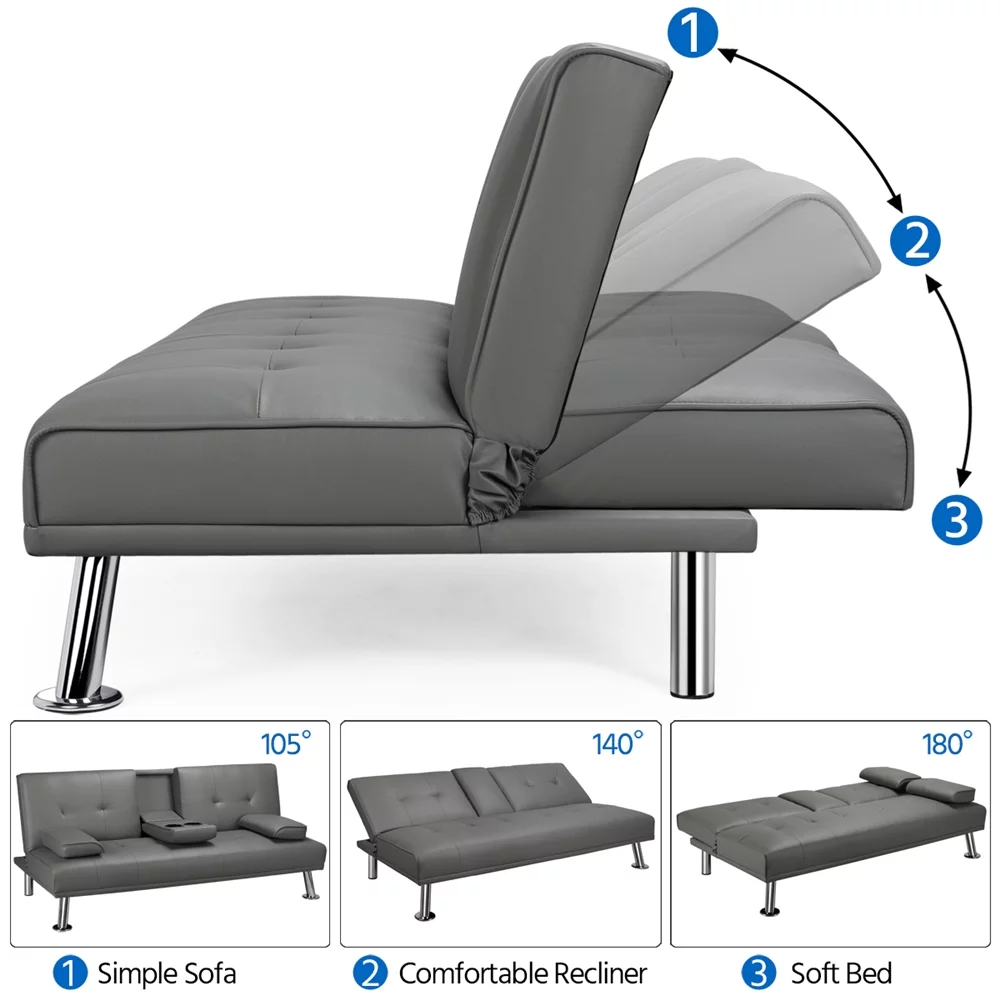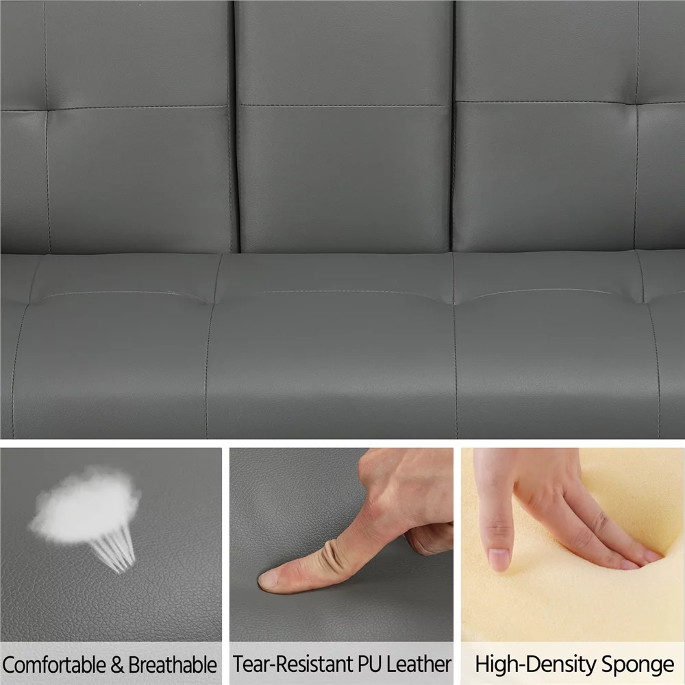 Topeakmart Modern Faux Leather Futon Sofa Bed Home Recliner Couch Home Furniture with Armrest Gray