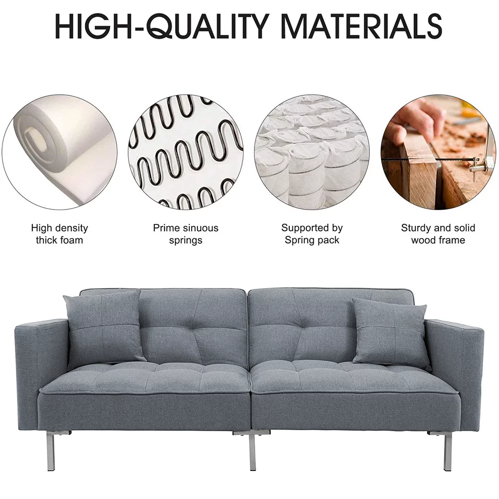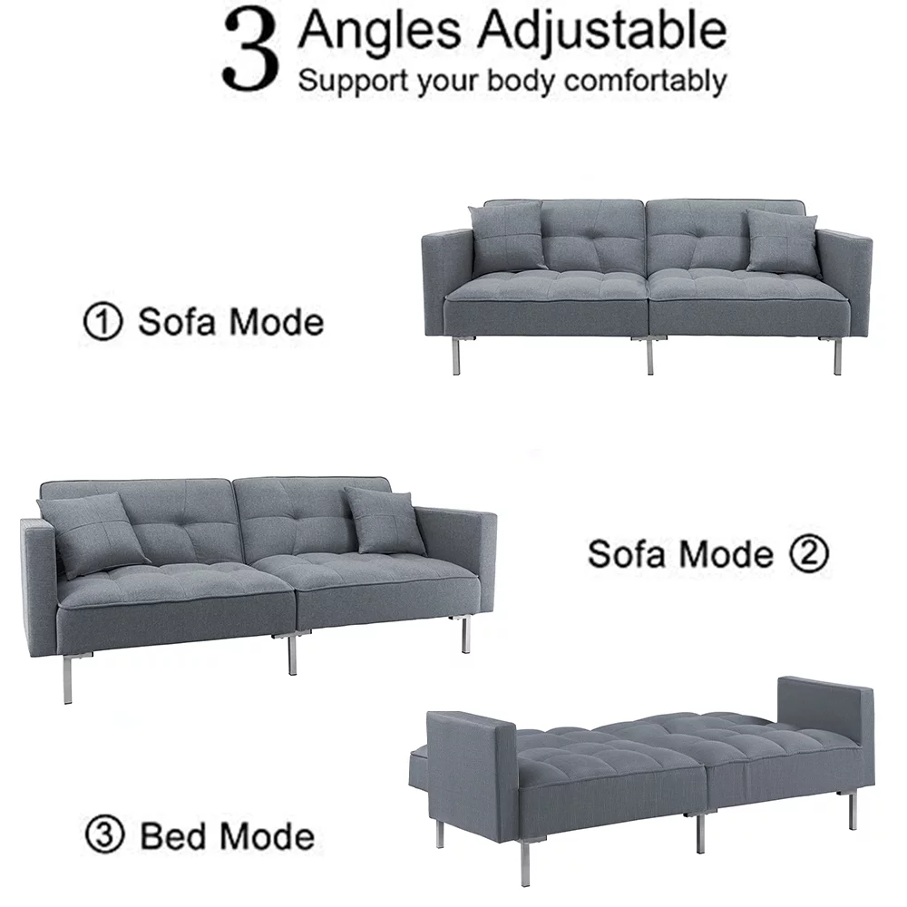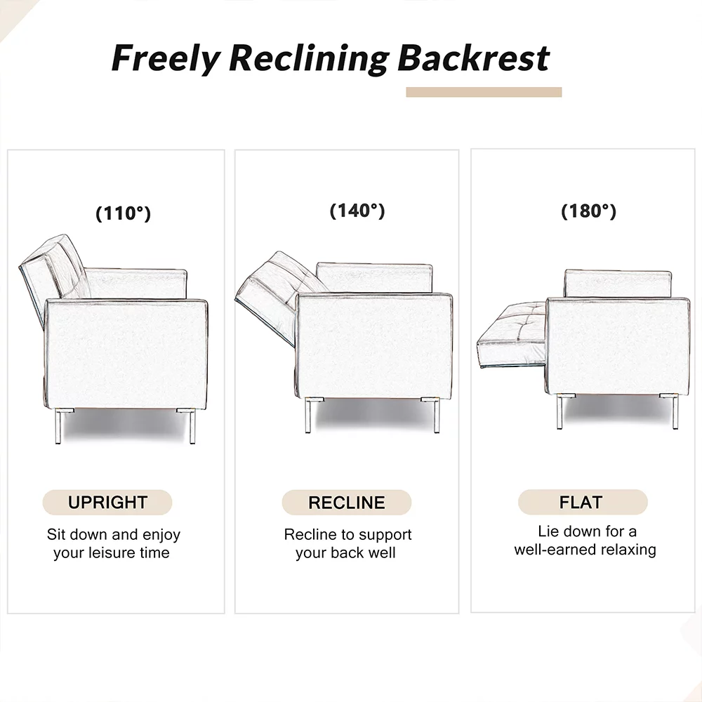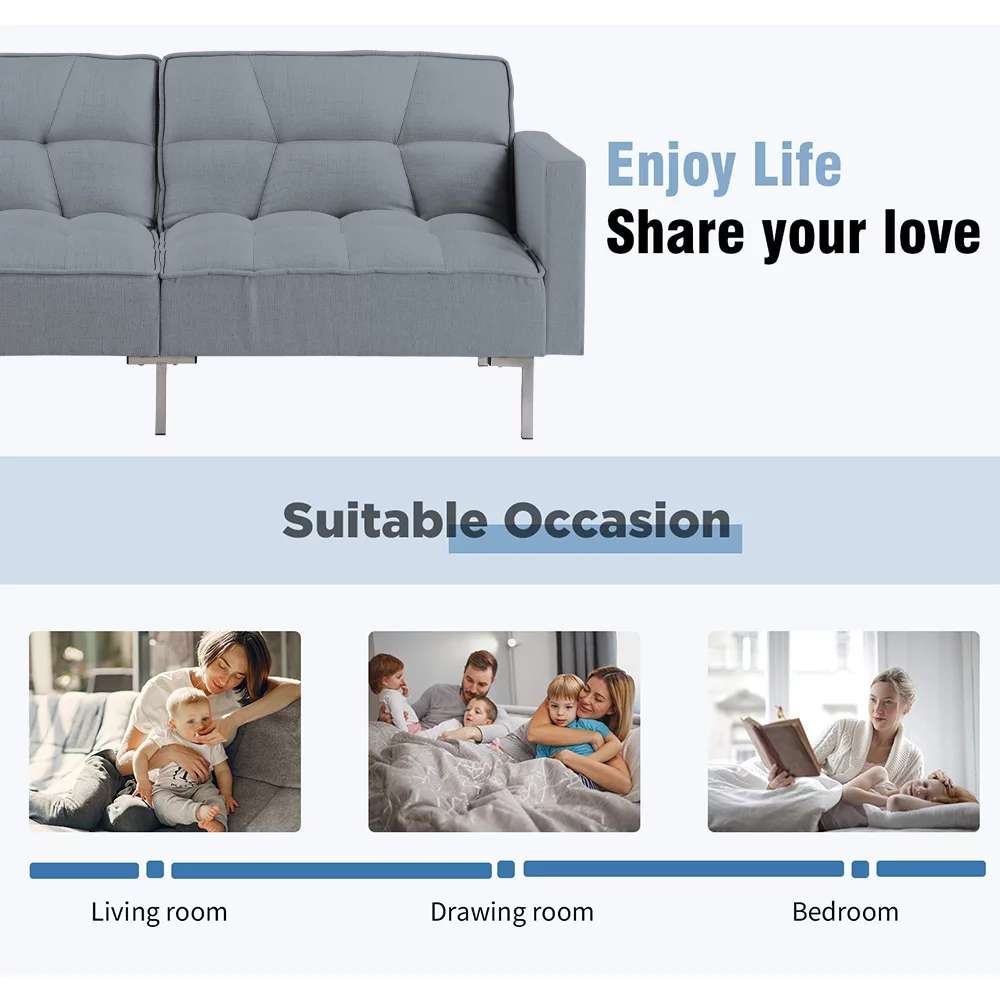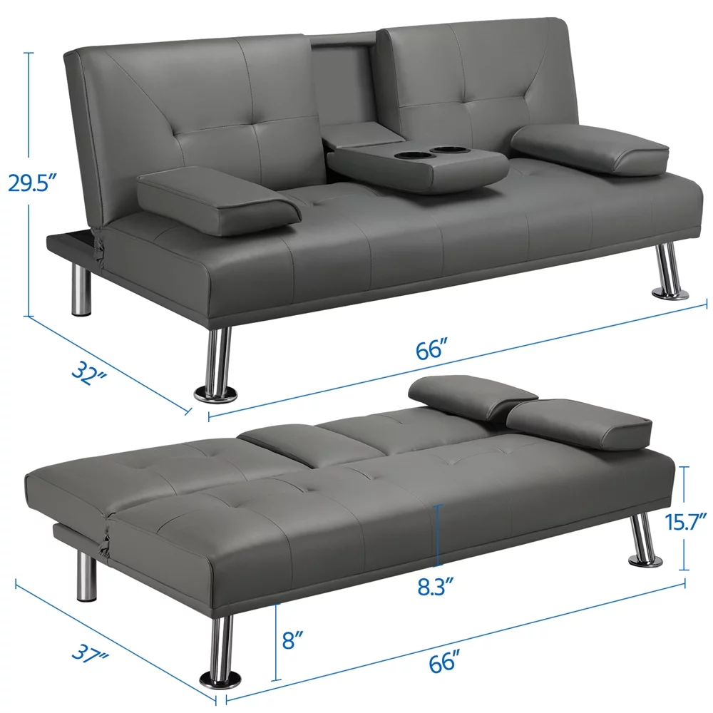 Topeakmart Modern Faux Leather Futon Sofa Bed Home Recliner Couch Home Furniture with Armrest Gray