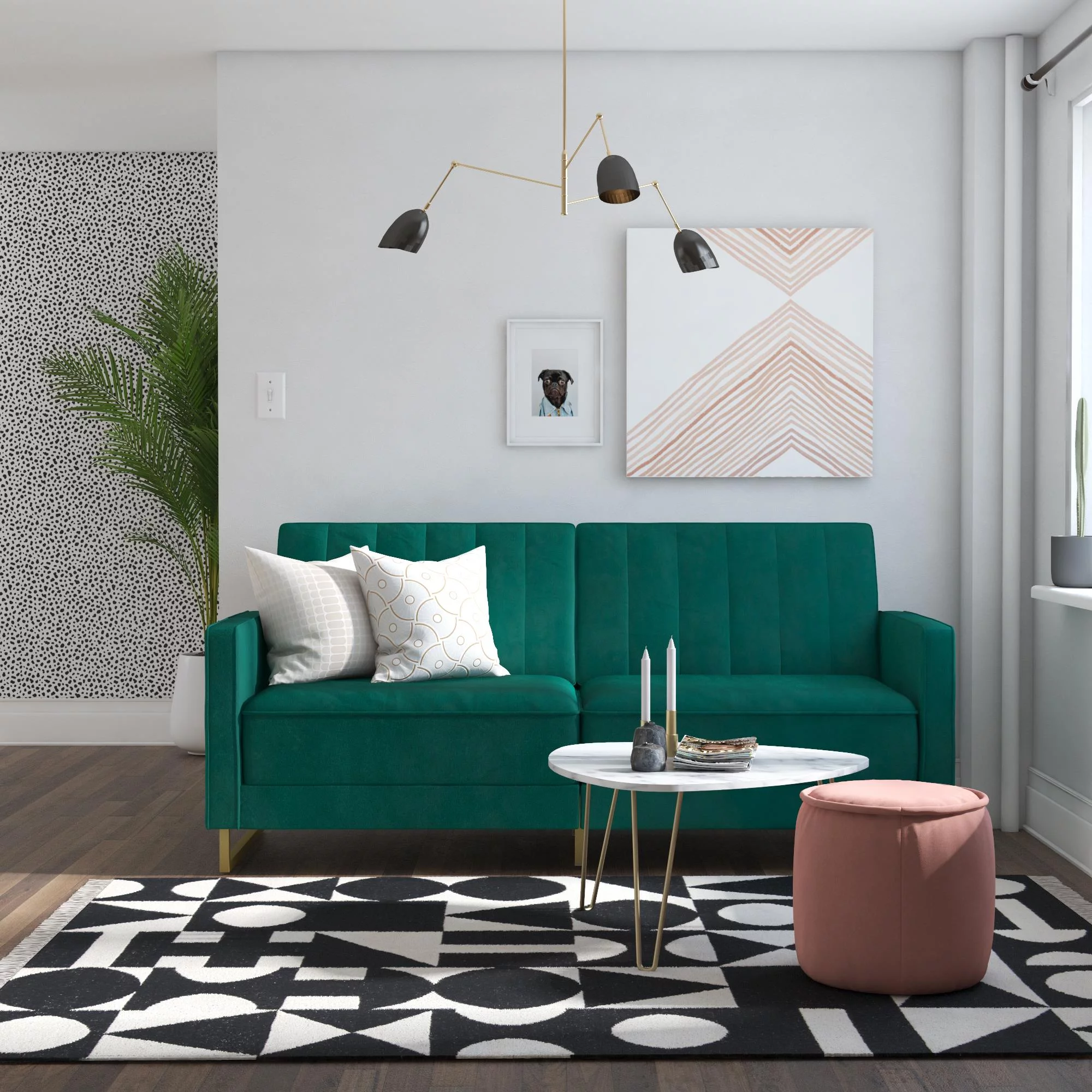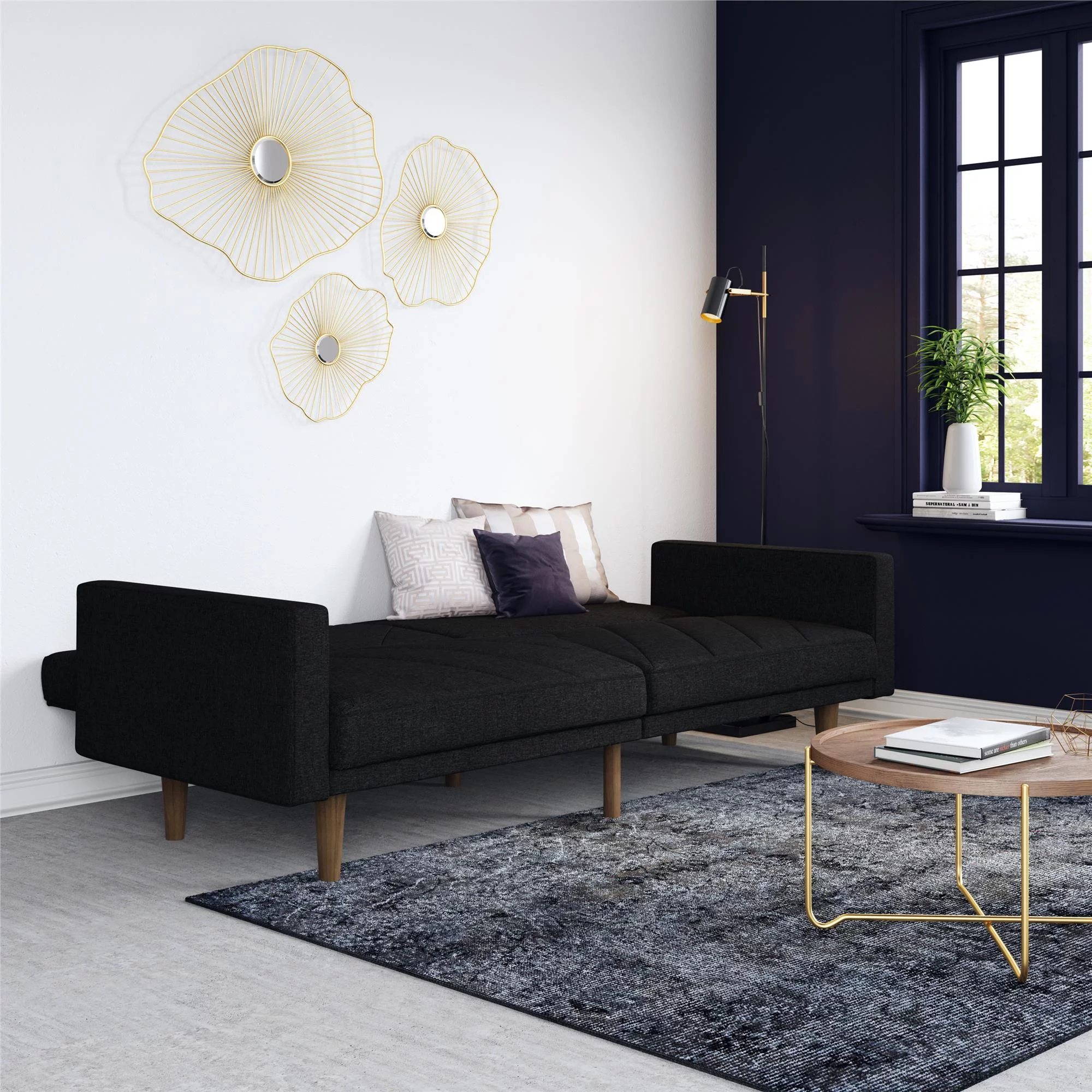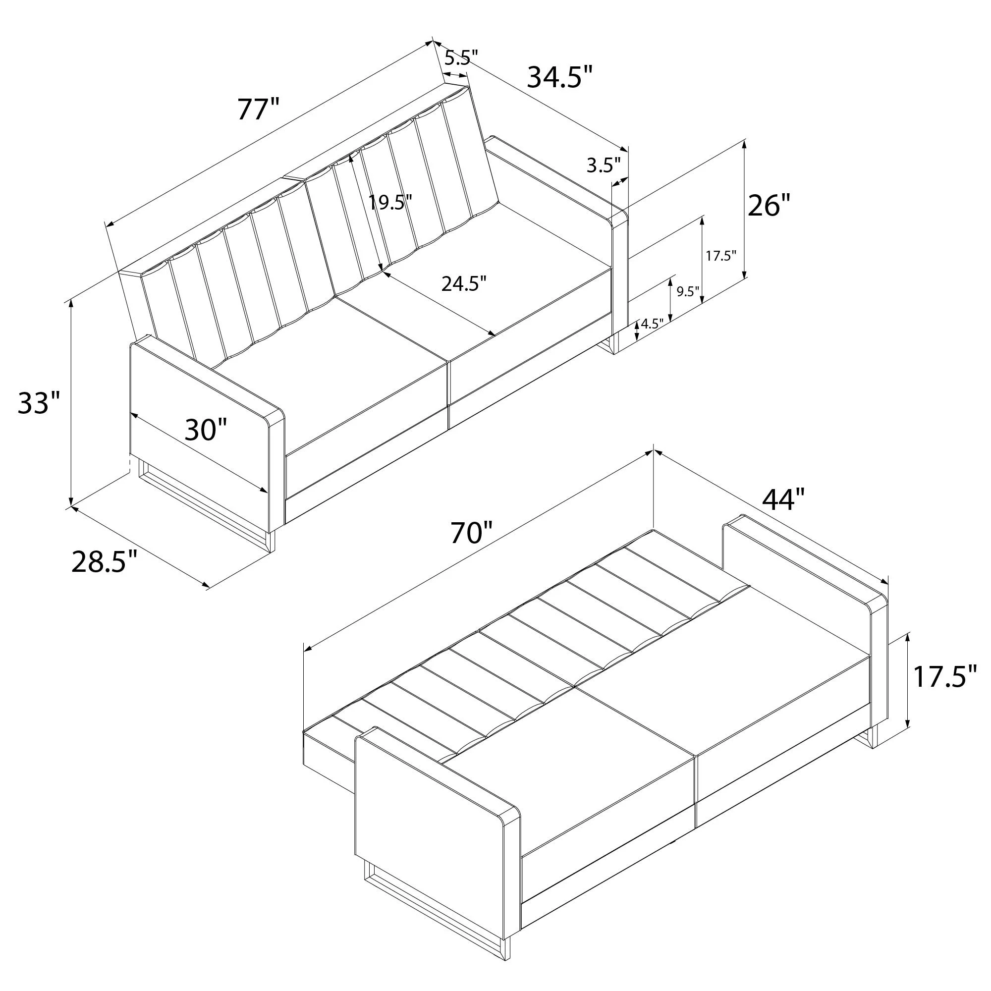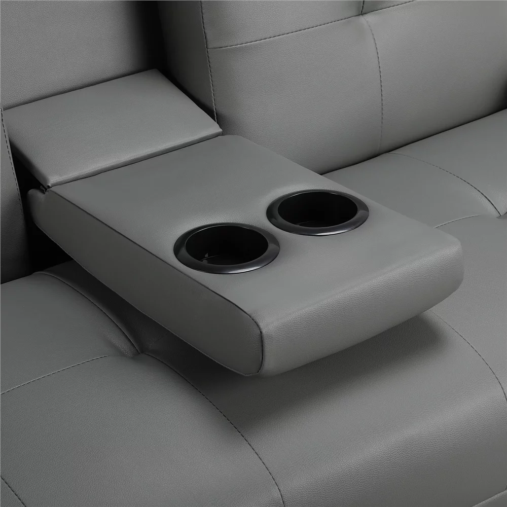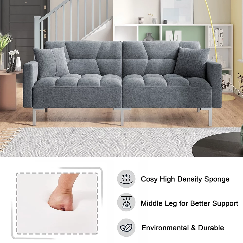 Topeakmart Modern Faux Leather Futon Sofa Bed Home Recliner Couch Home Furniture with Armrest Gray