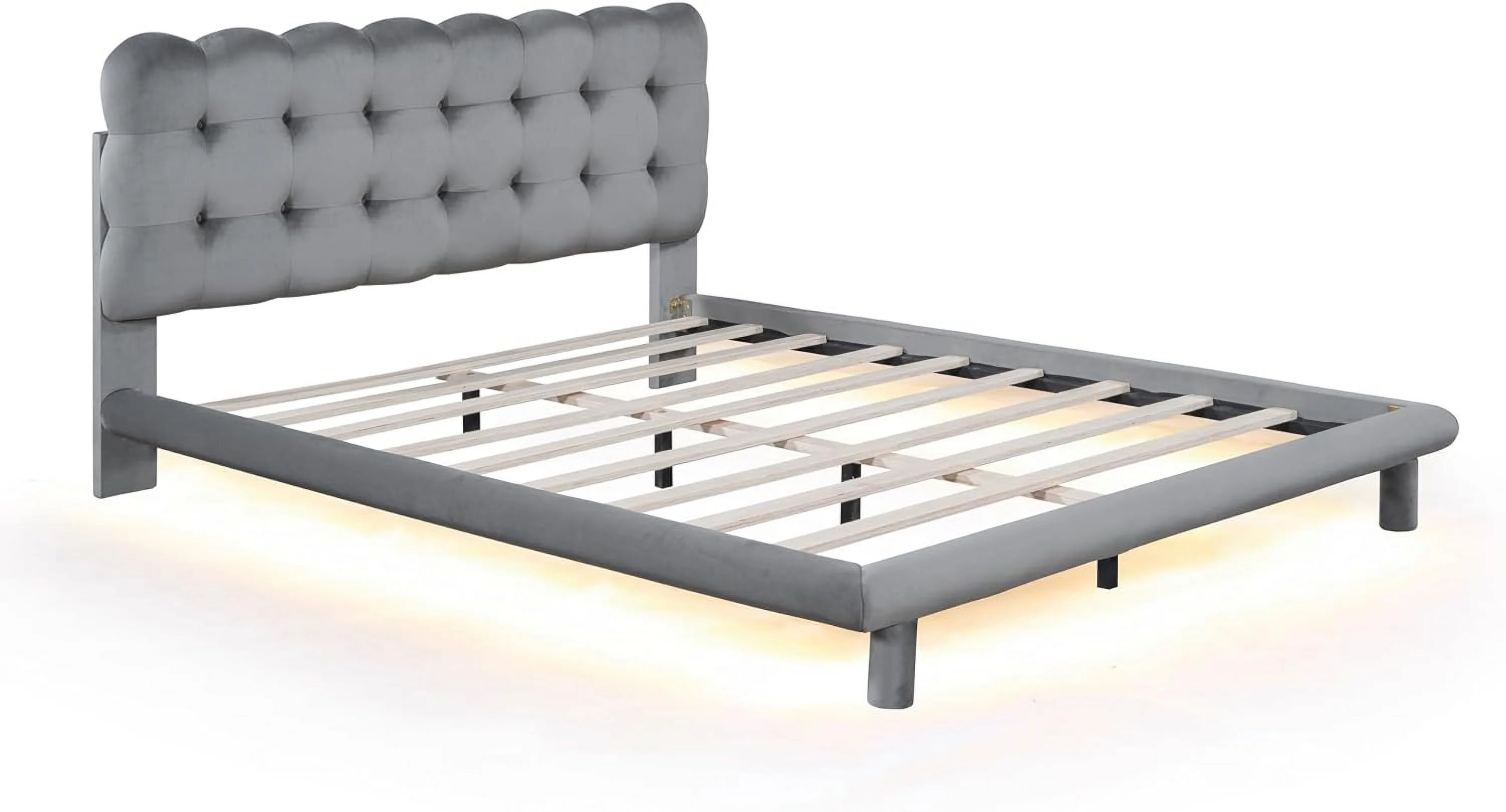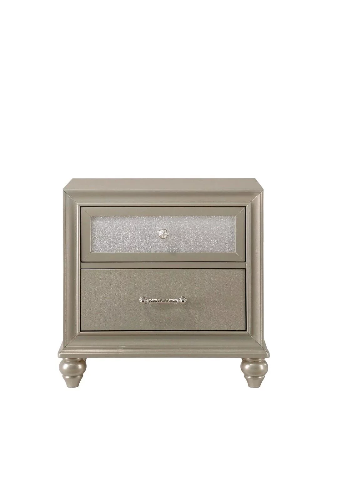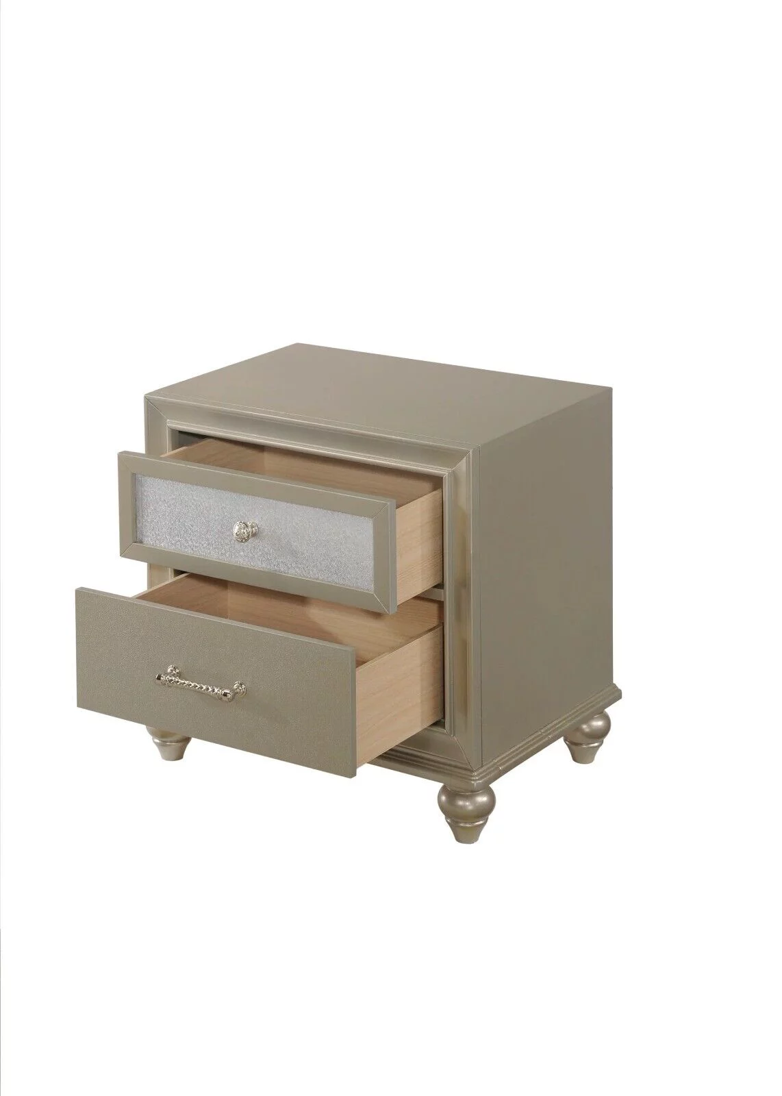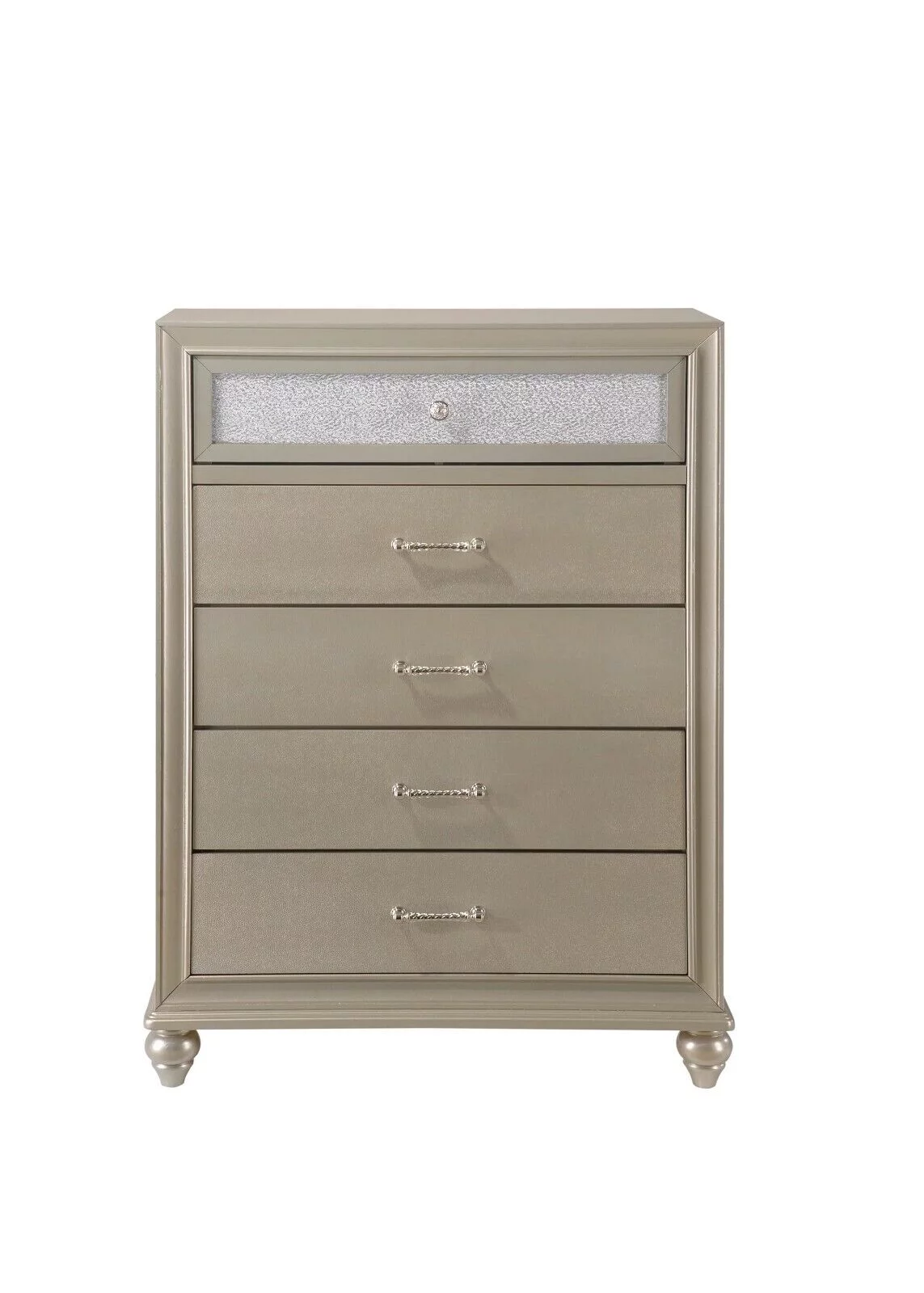 Modern Champagne Faux Diamond Button Tufted HB Finish 6pc King Size Bedroom Set Bed Dresser Mirror Nightstand Chest