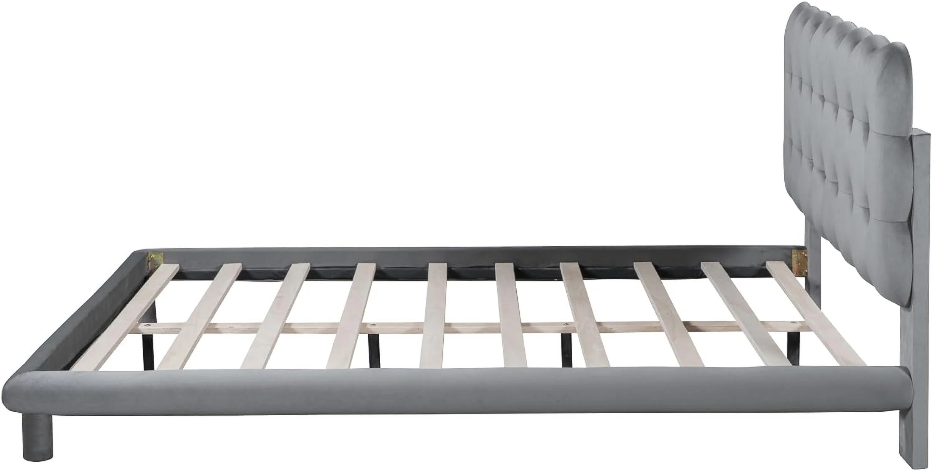 Baxton Studio Valonia Classic and Traditional Grey Fabric and Walnut Brown Finished Wood King Size Platform Bed