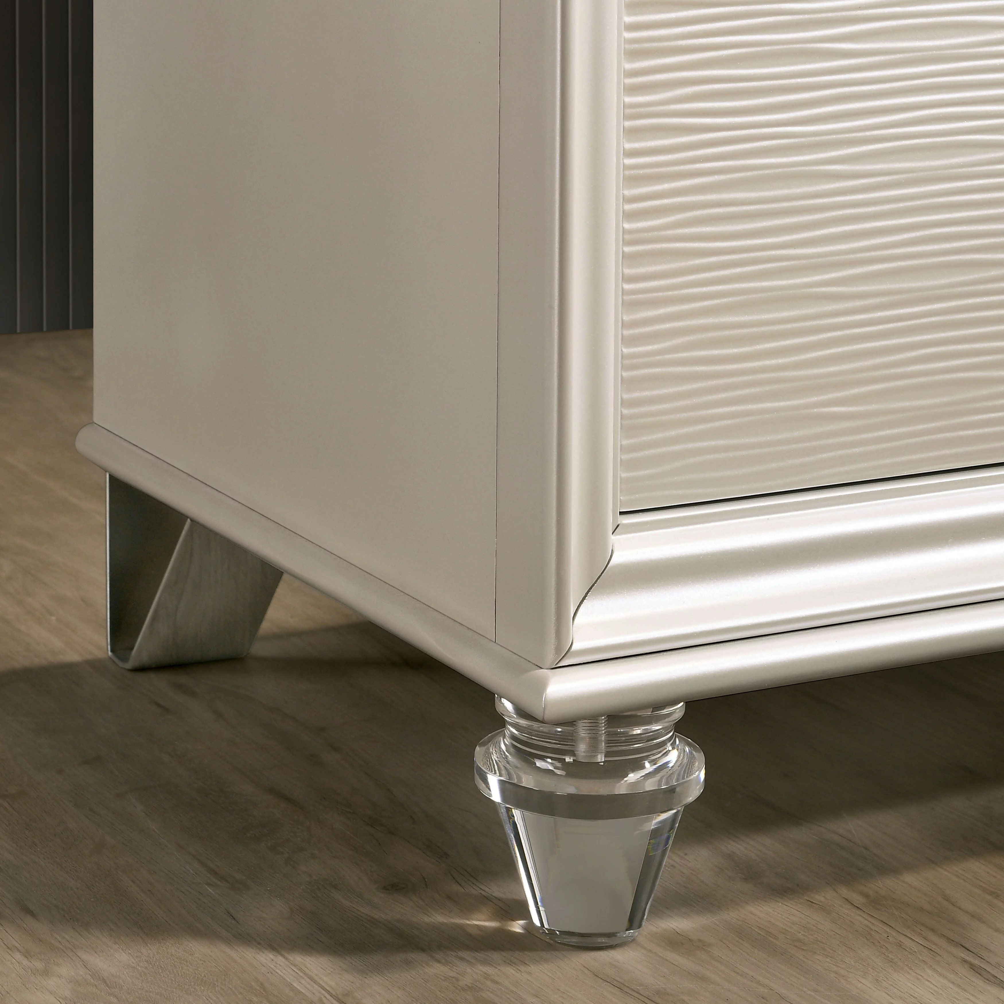Ashland 5 Drawer Chest in Modern White Embossed Alligator & Mirror