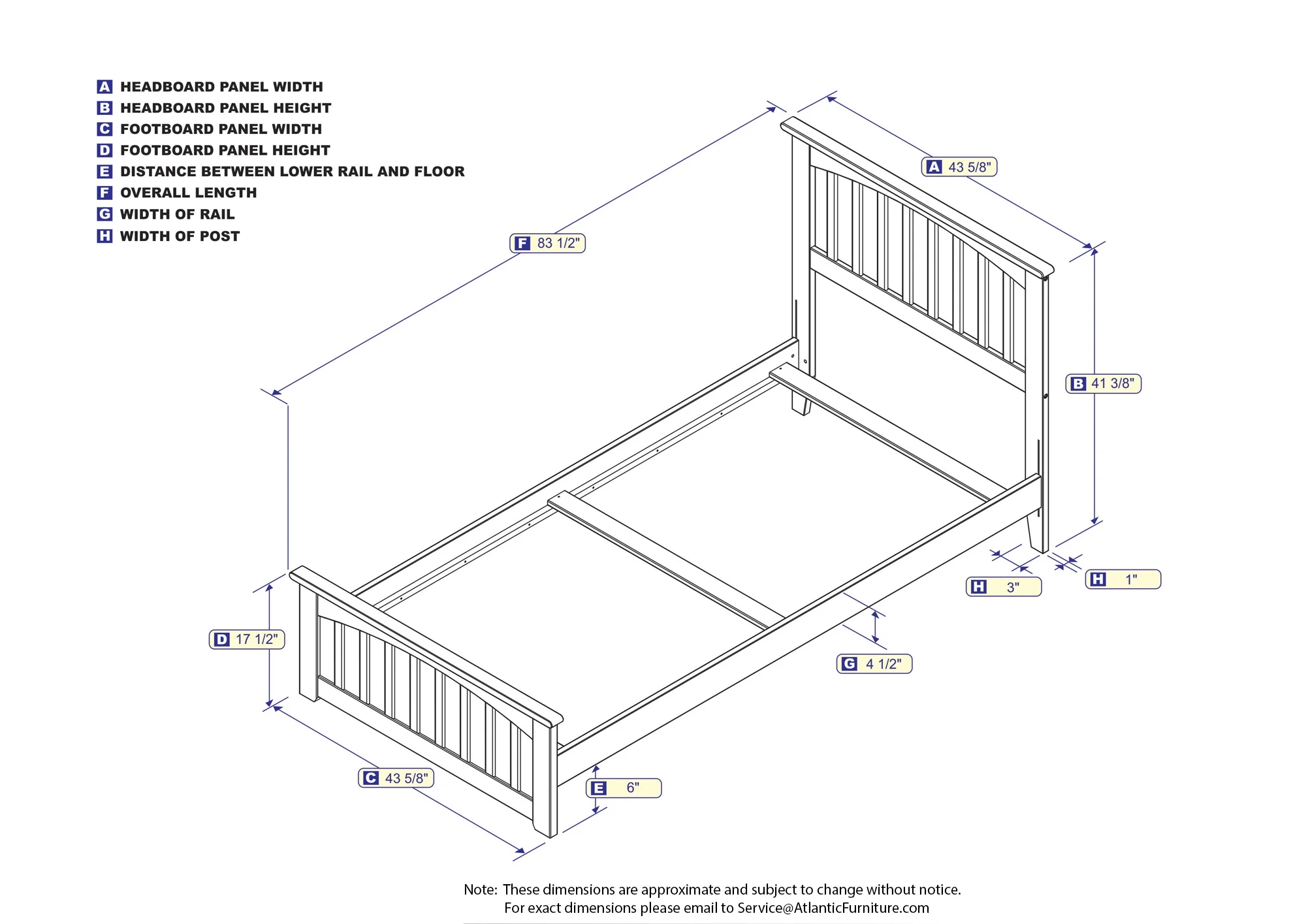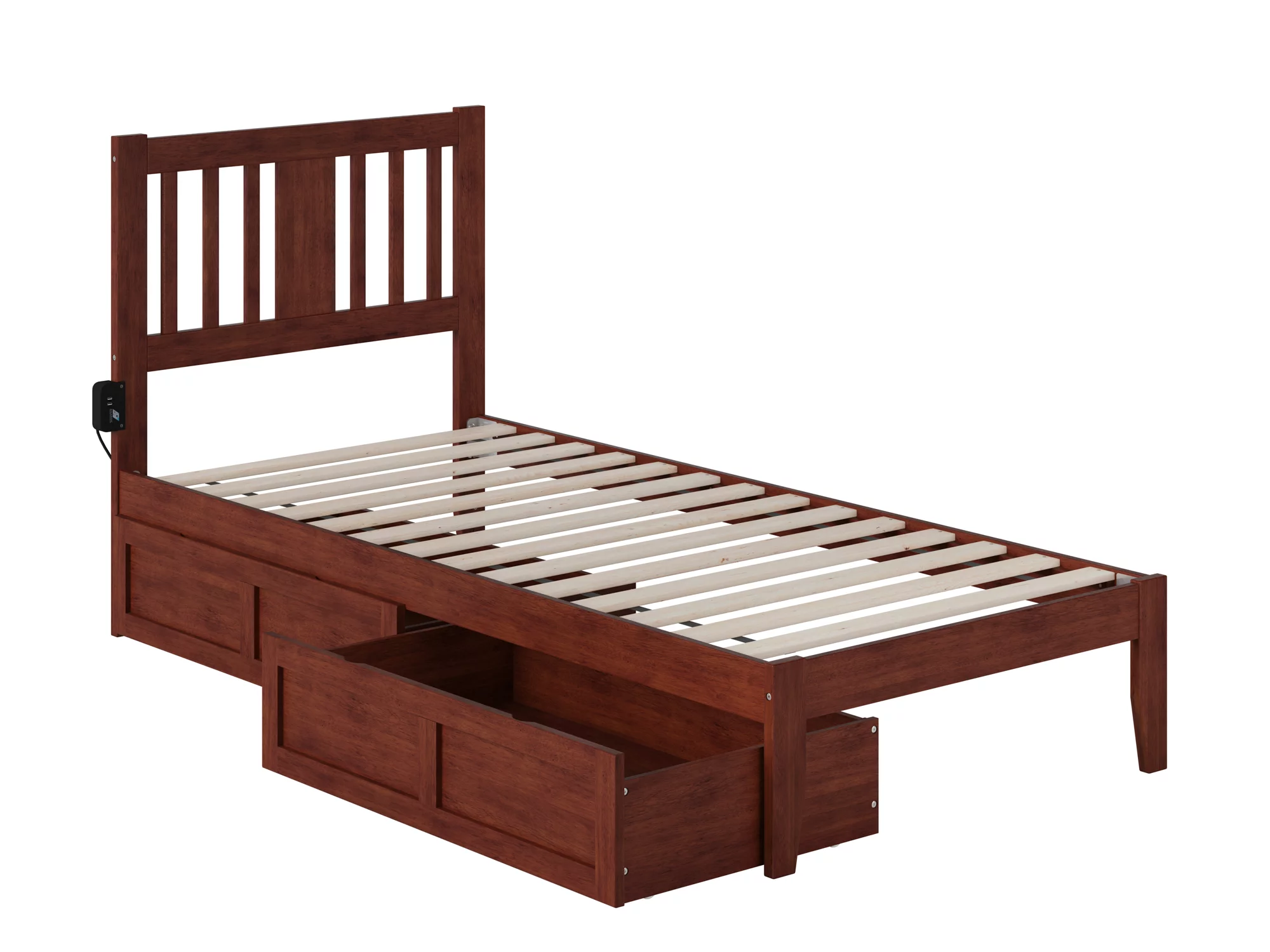 Atlantic Furniture Mission Classic Hardwood Eco-Friendly Slat Bed, Twin-XL, Brown