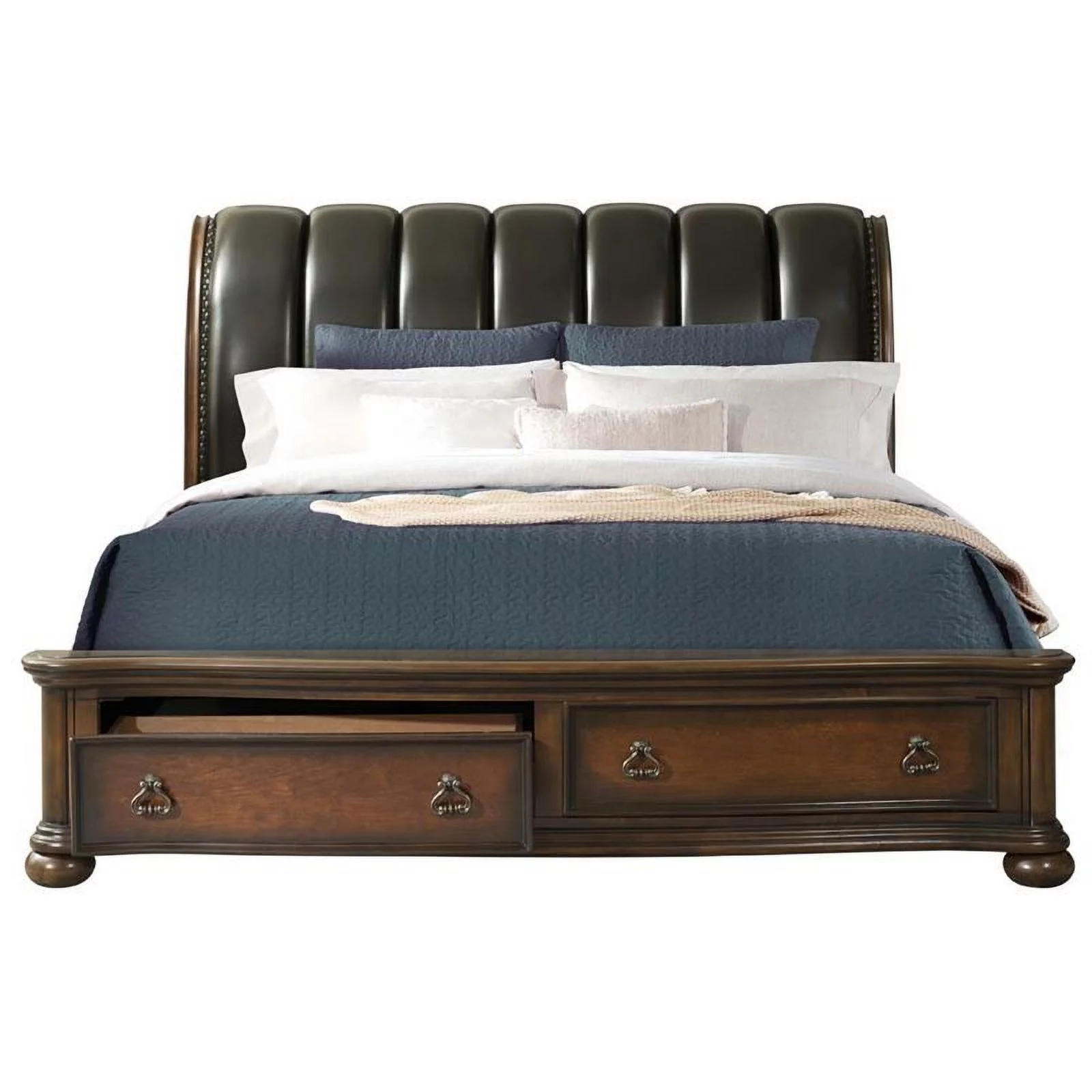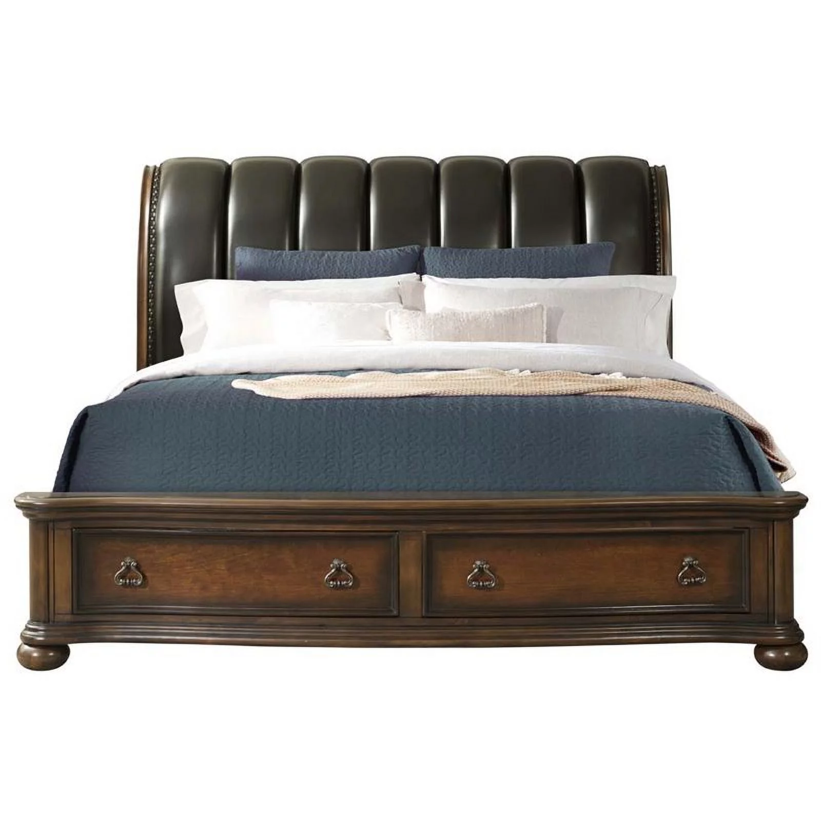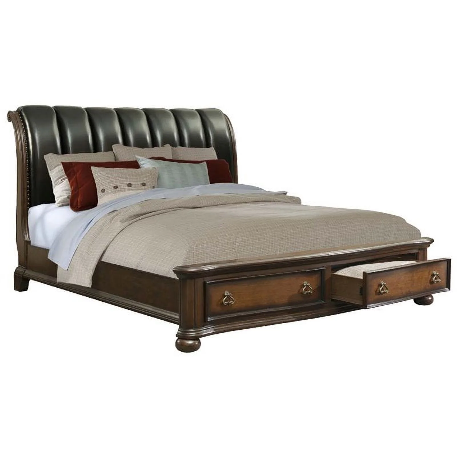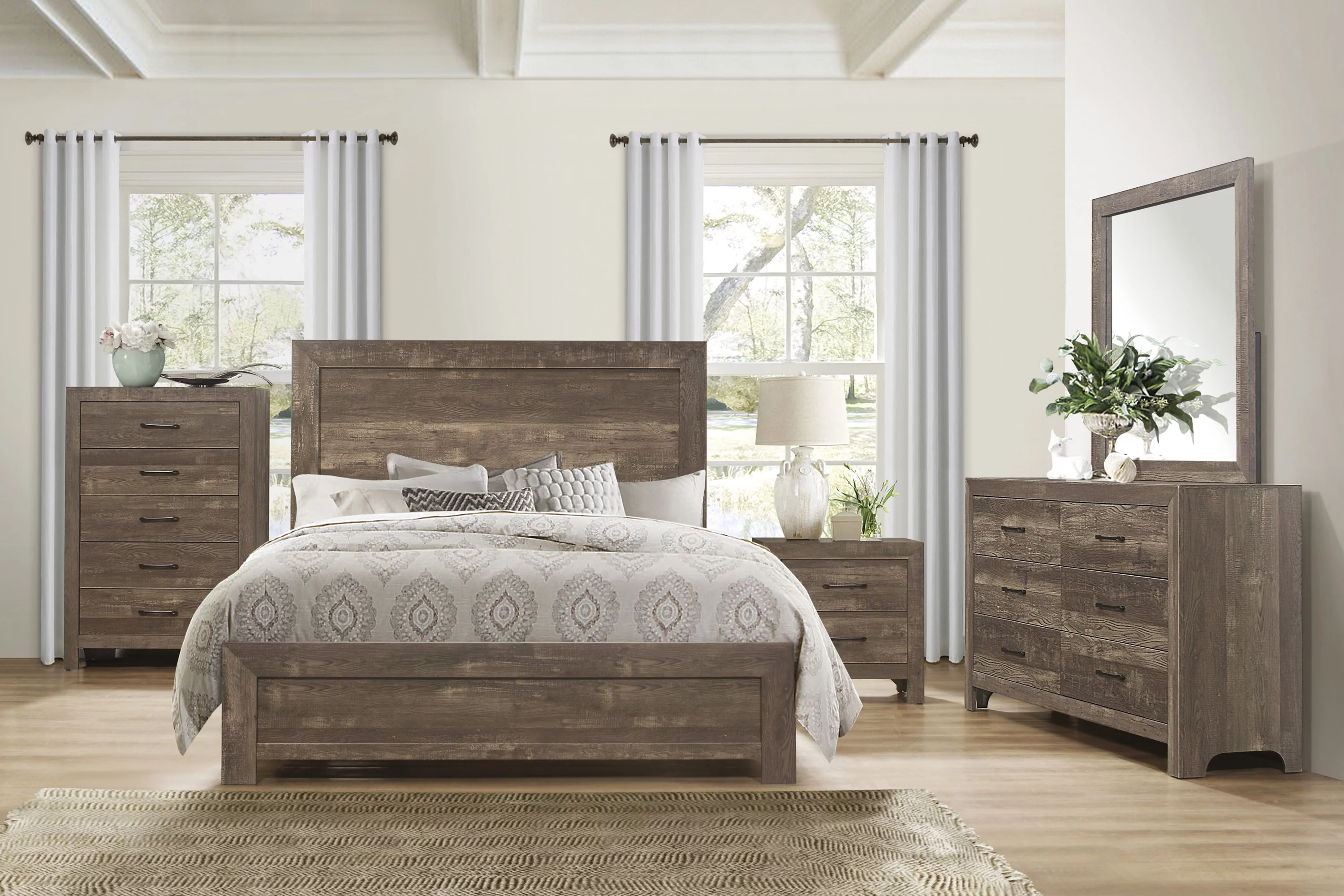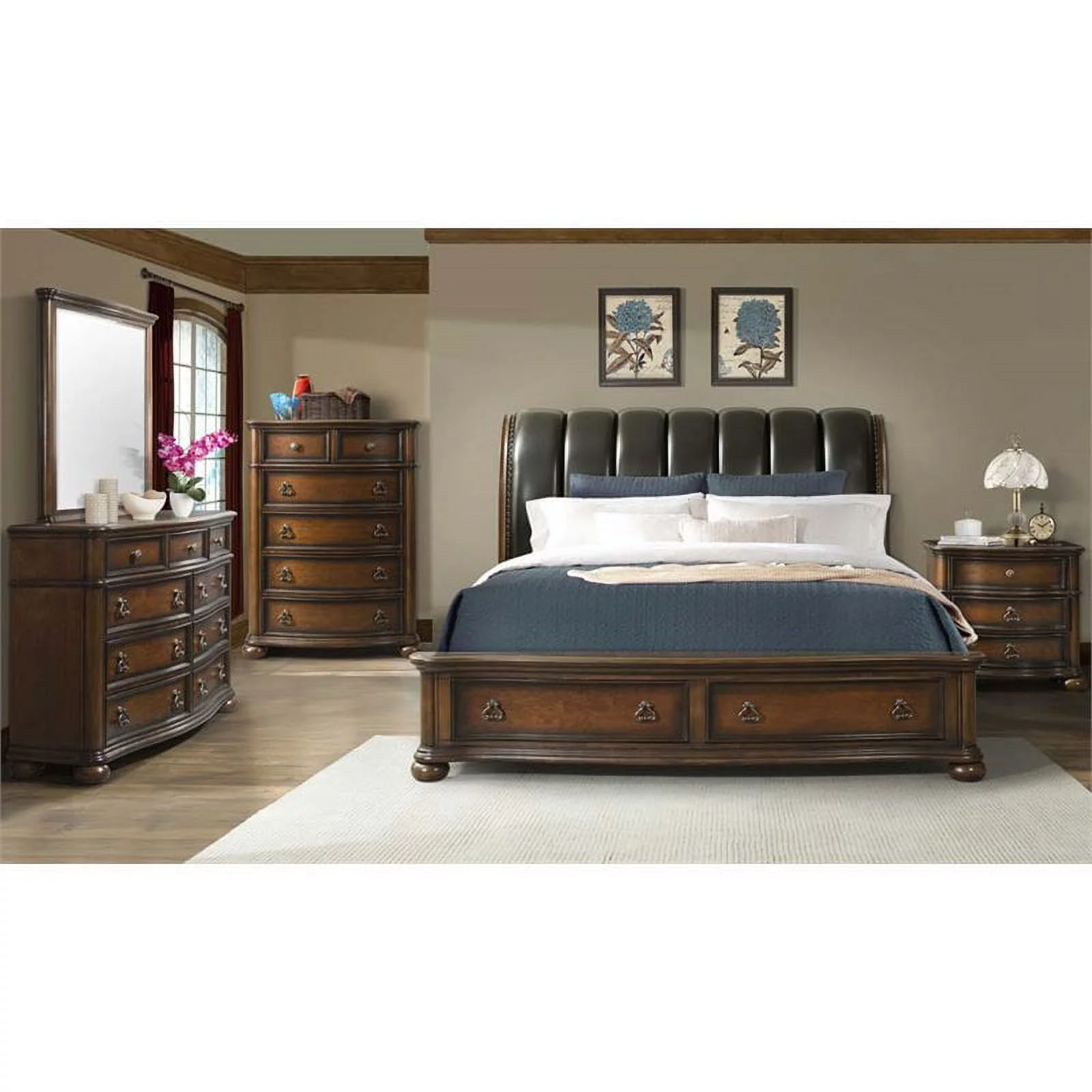 Bedroom Furniture Eastern King Size Sleigh Bed Dresser Mirror Night Stand Rustic Brown Finish