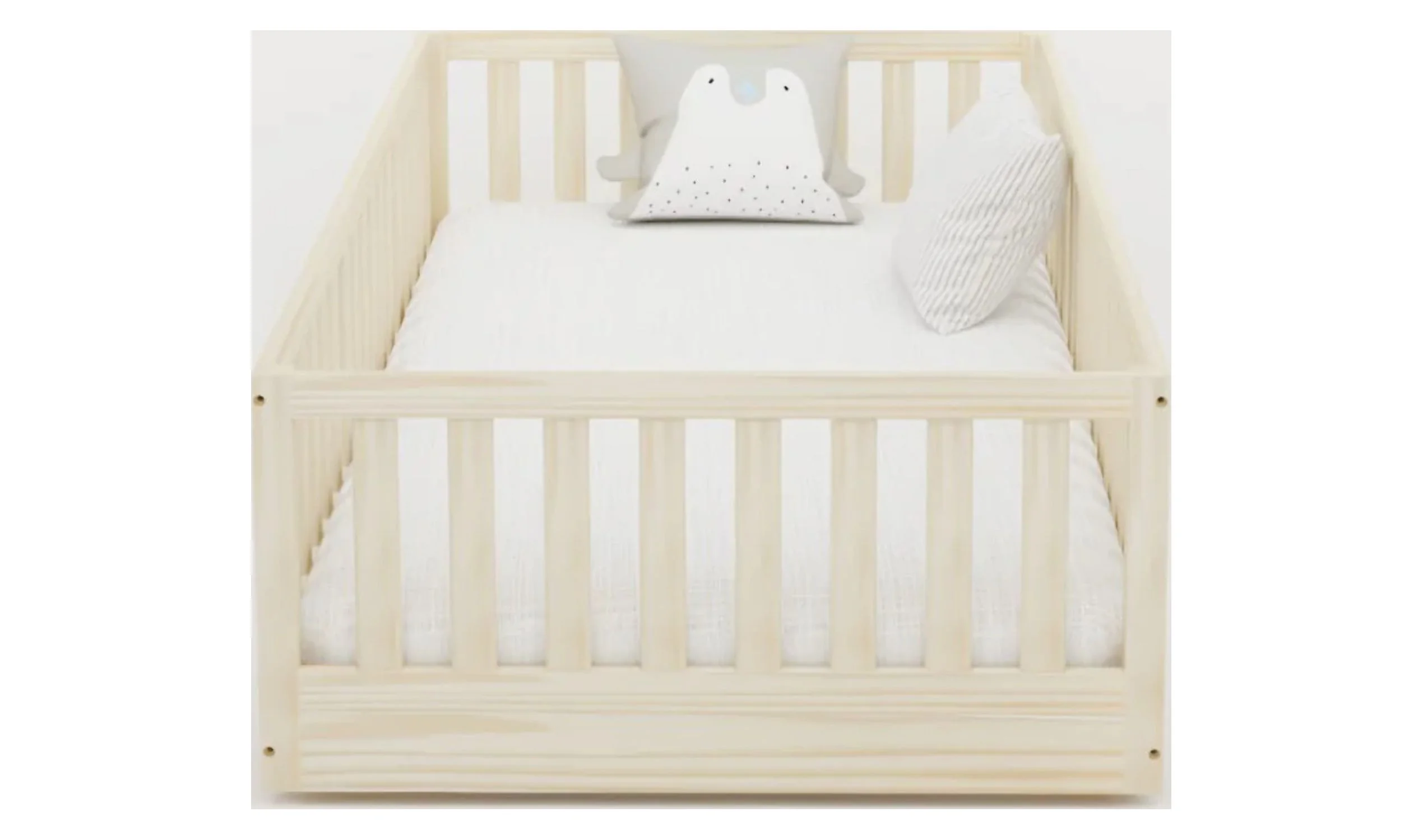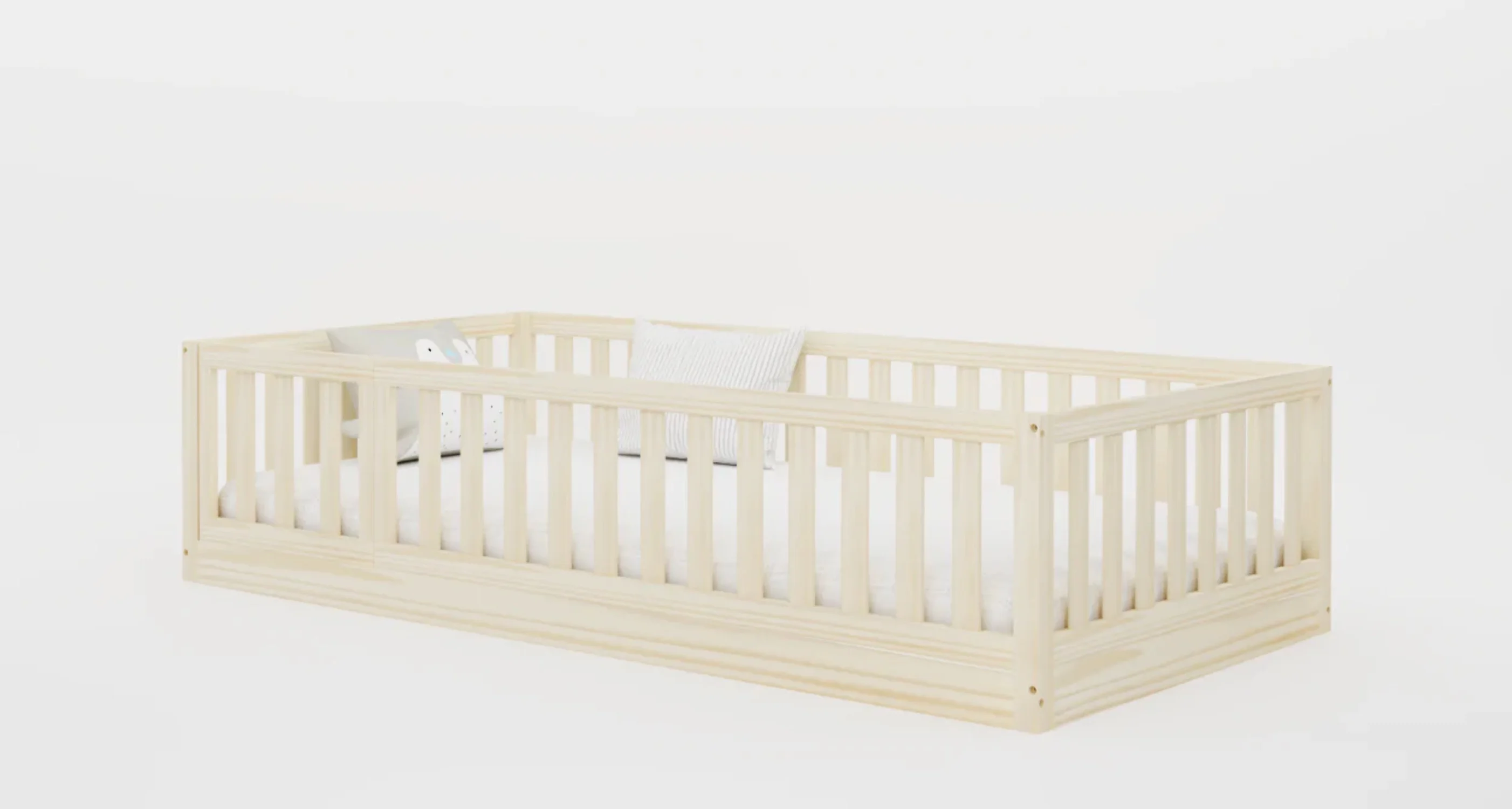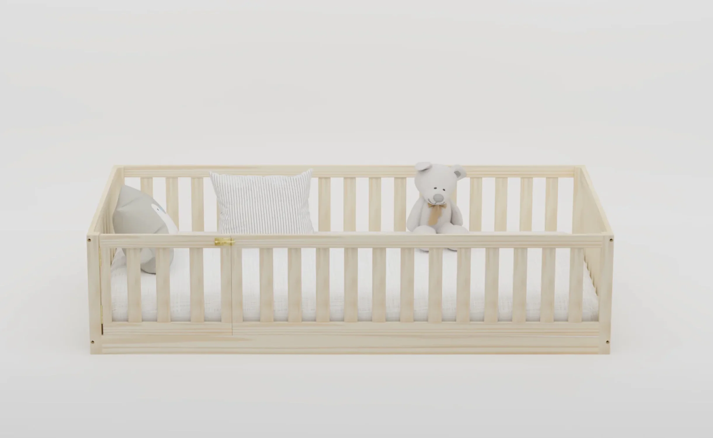 Custom Kids Furniture Hardwood Gianna Toddler Floor Bed with Slats and Gate