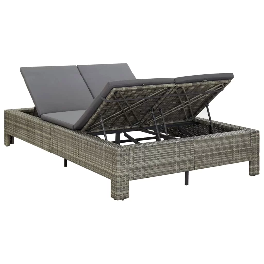 Pemberly Row Outdoor Patio Sectional Daybed Set with Canopy and 4" Thick Cushion in Antique Canvas Beige