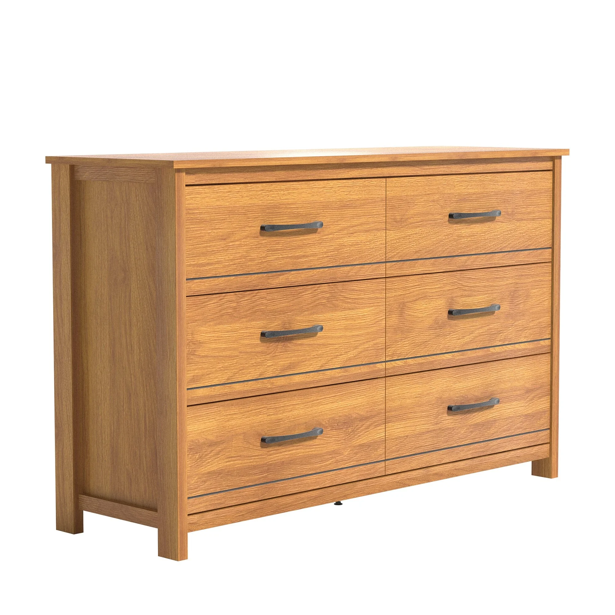 GALANO Kellie 6-Drawers Dresser 30.9 in. x 47 in. x 16.5 in. Amber Walnut