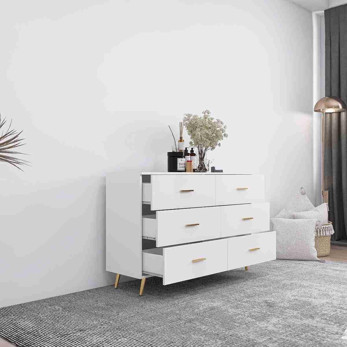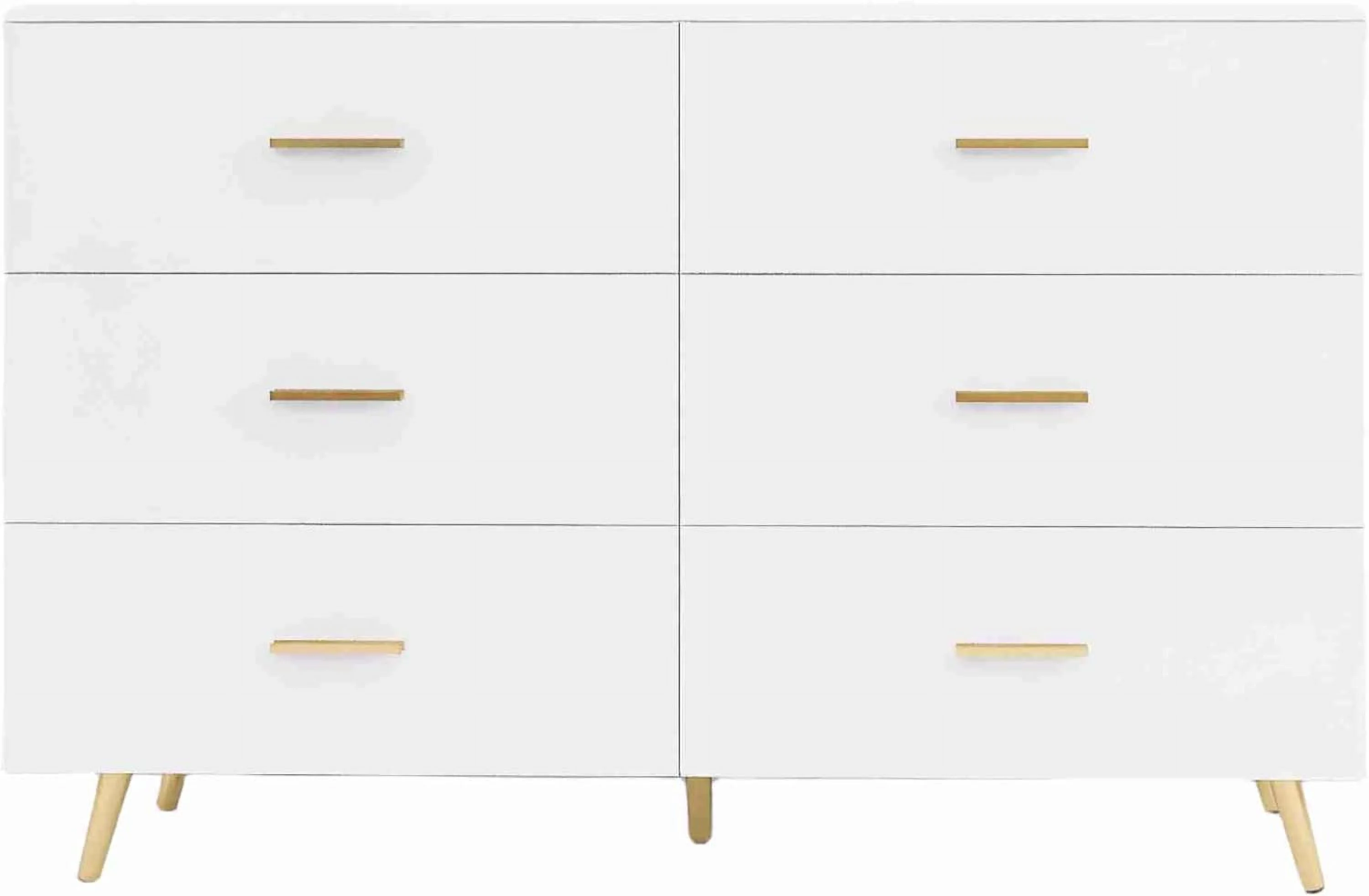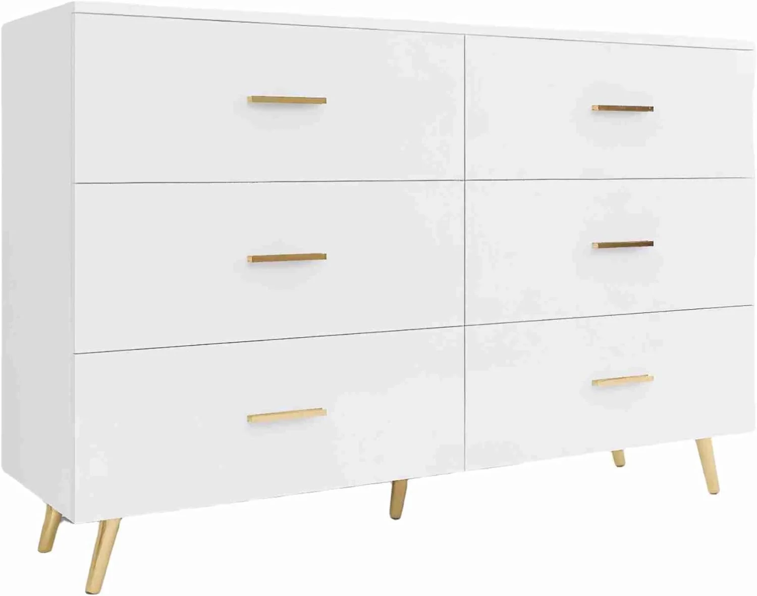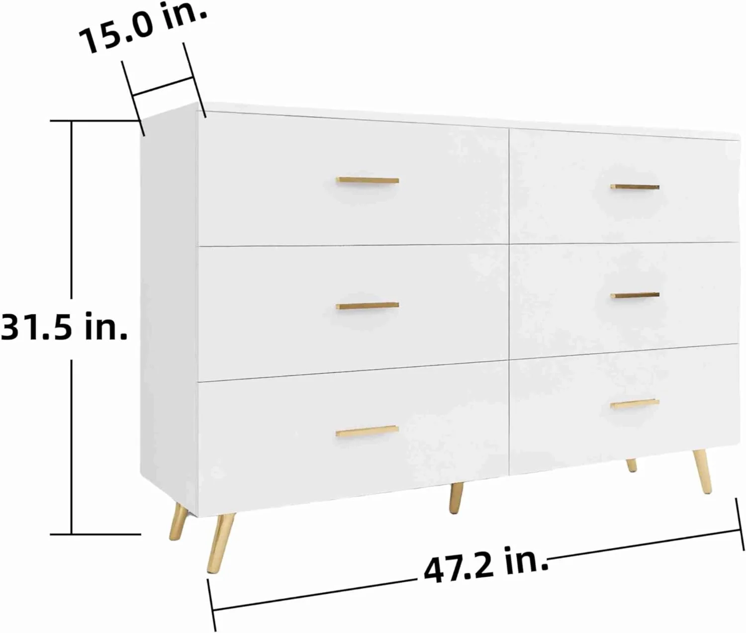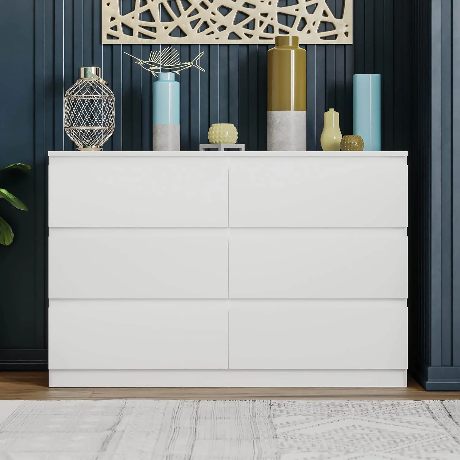 GIKPAL Modern White 6-Drawer Dresser for Bedroom - Ample Storage Wide Chest of Drawers, Sturdy & Safe
