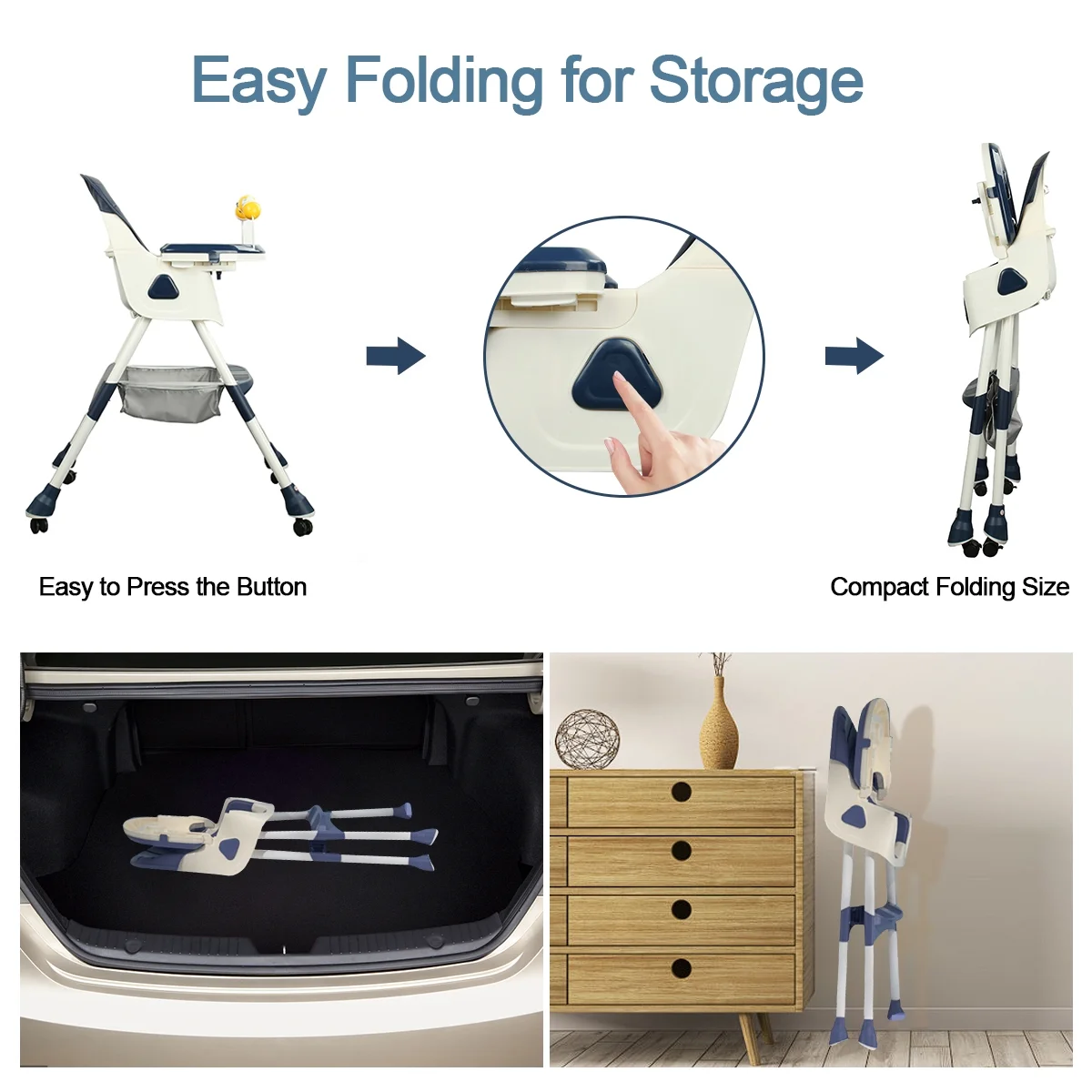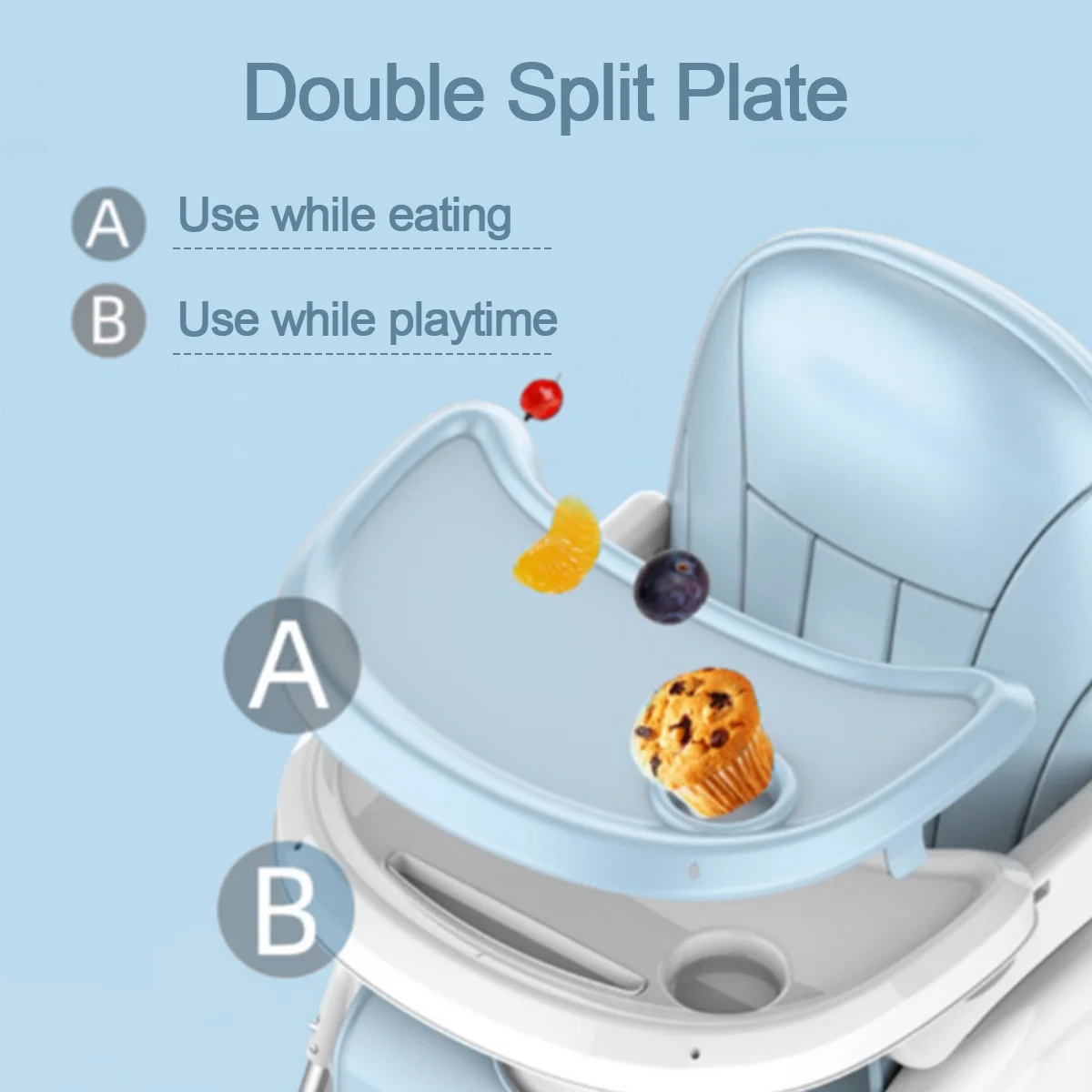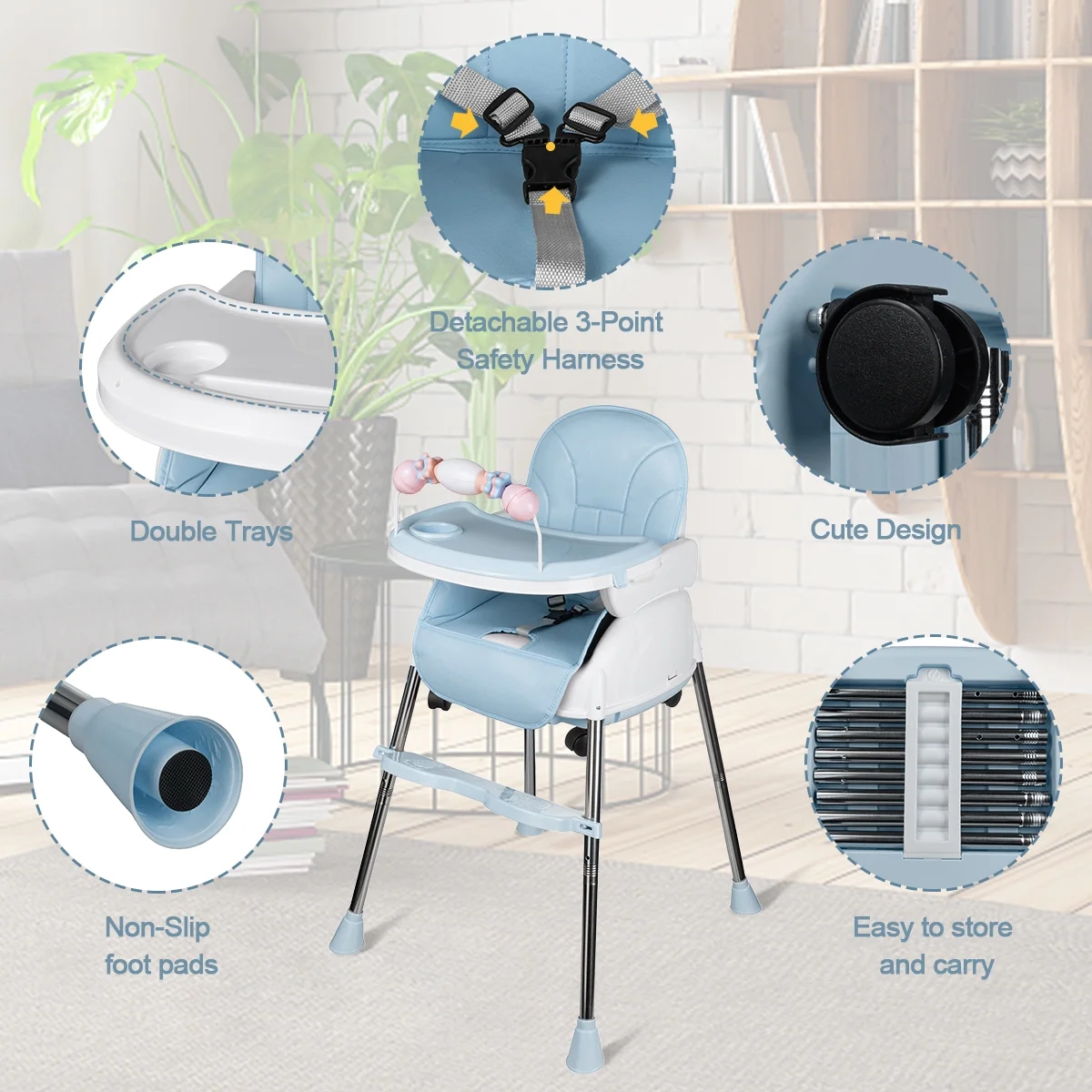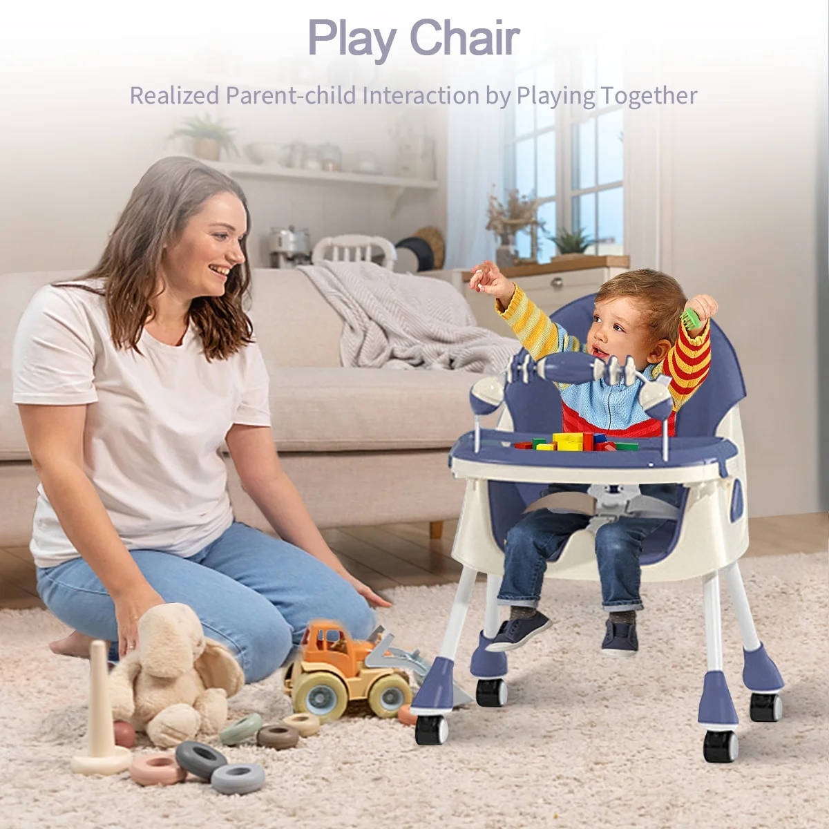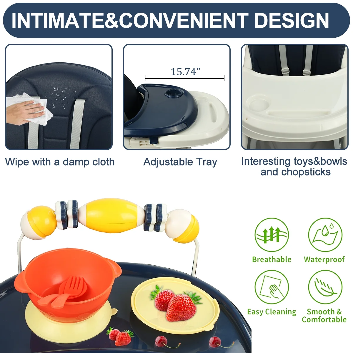 EONROACOO Baby Highchair with 5-point Snap Button, High Chair for Babies with Double-Layer Tray and Toys, Blue