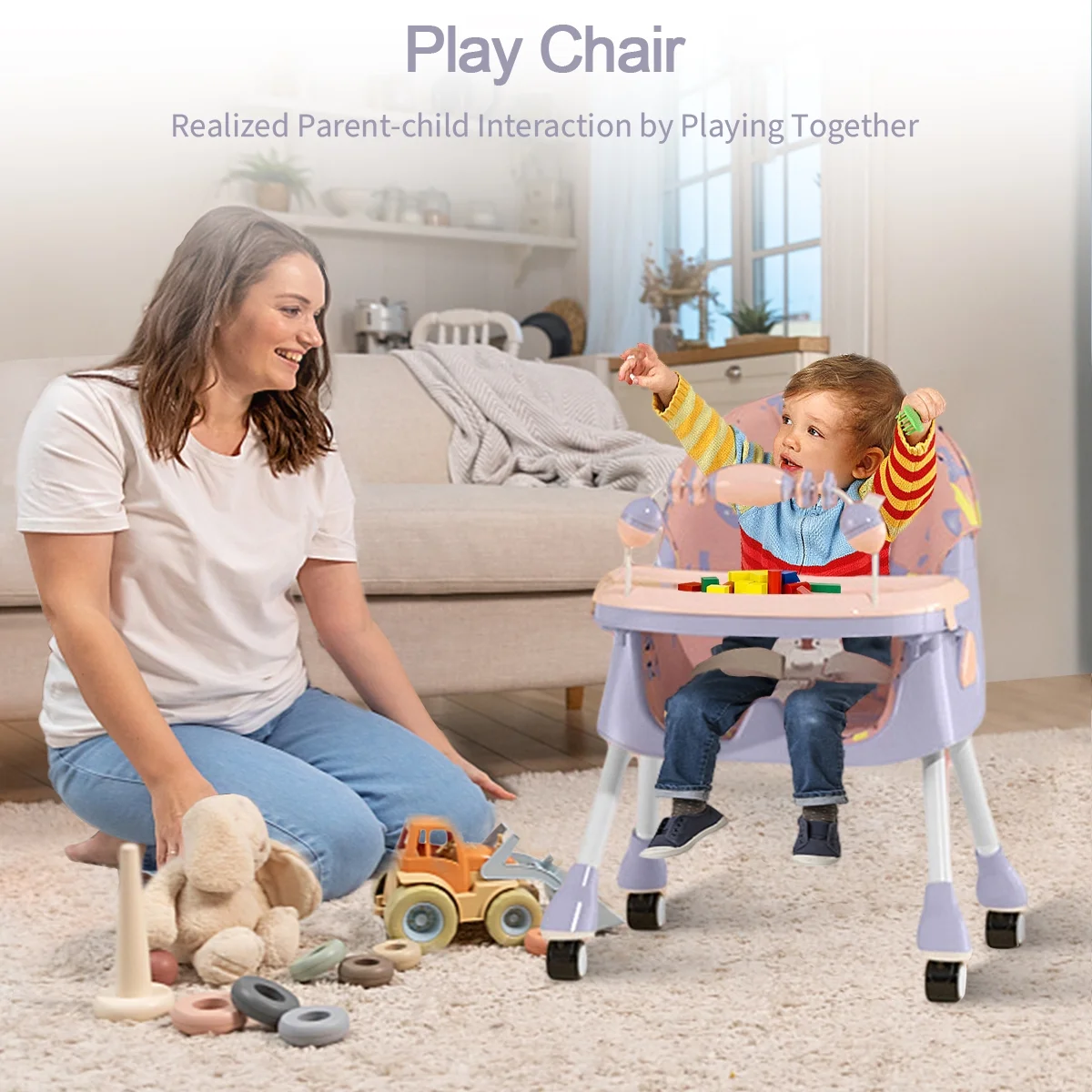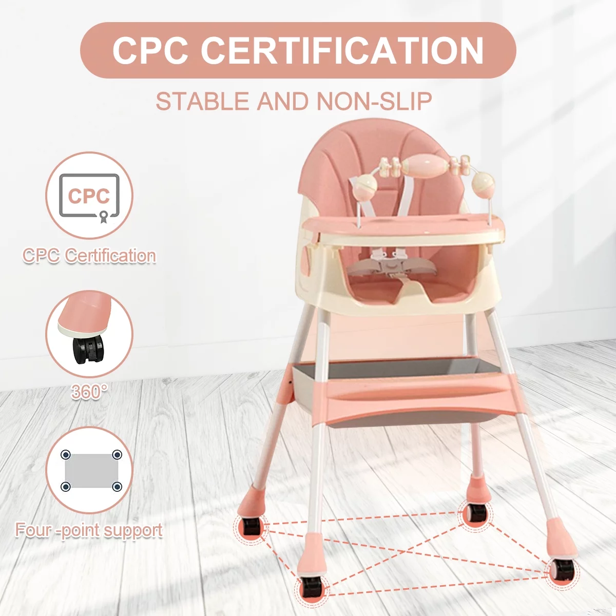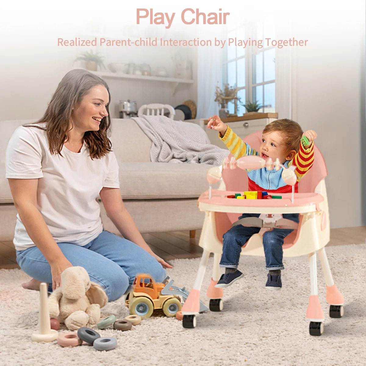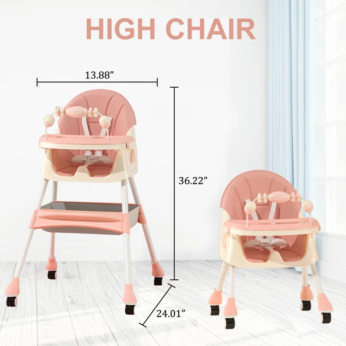 YANAOFFE Baby High Chair 4-in-1 Convertible Baby Highchair with Double-Layer Tray and Toy, Pink