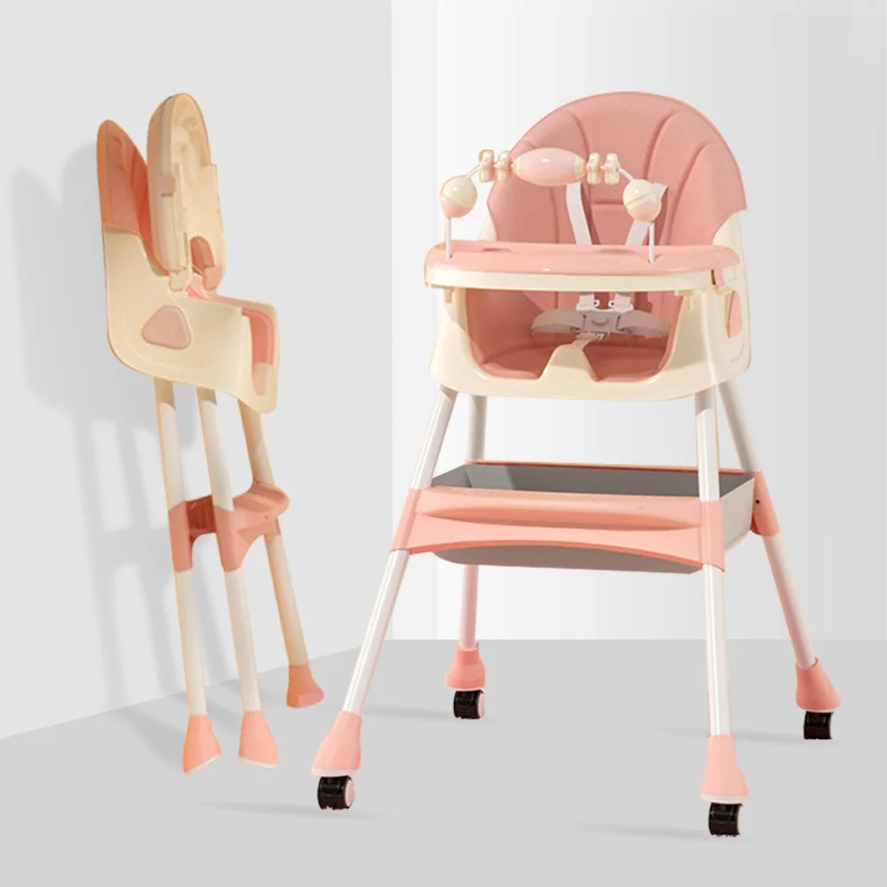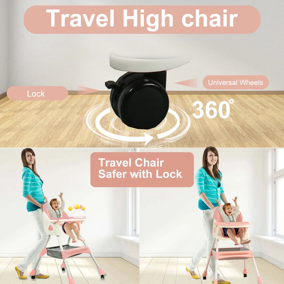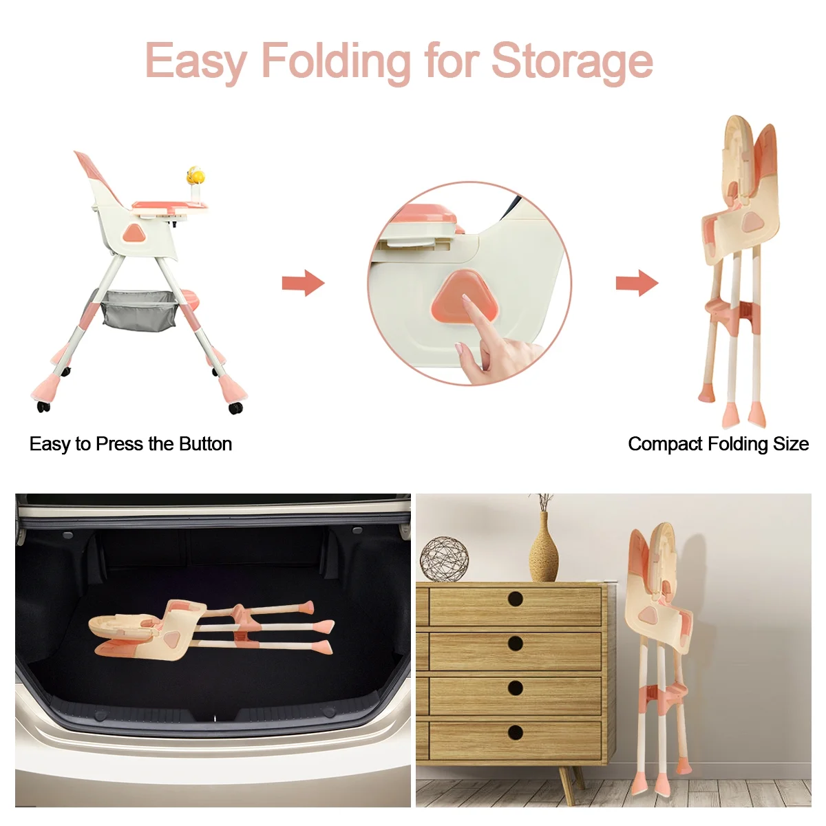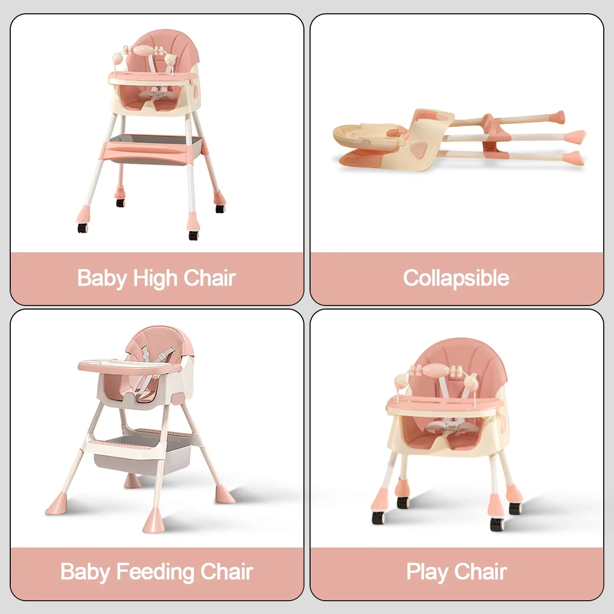 YANAOFFE Baby High Chair 4-in-1 Convertible Baby Highchair with Double-Layer Tray and Toy, Pink