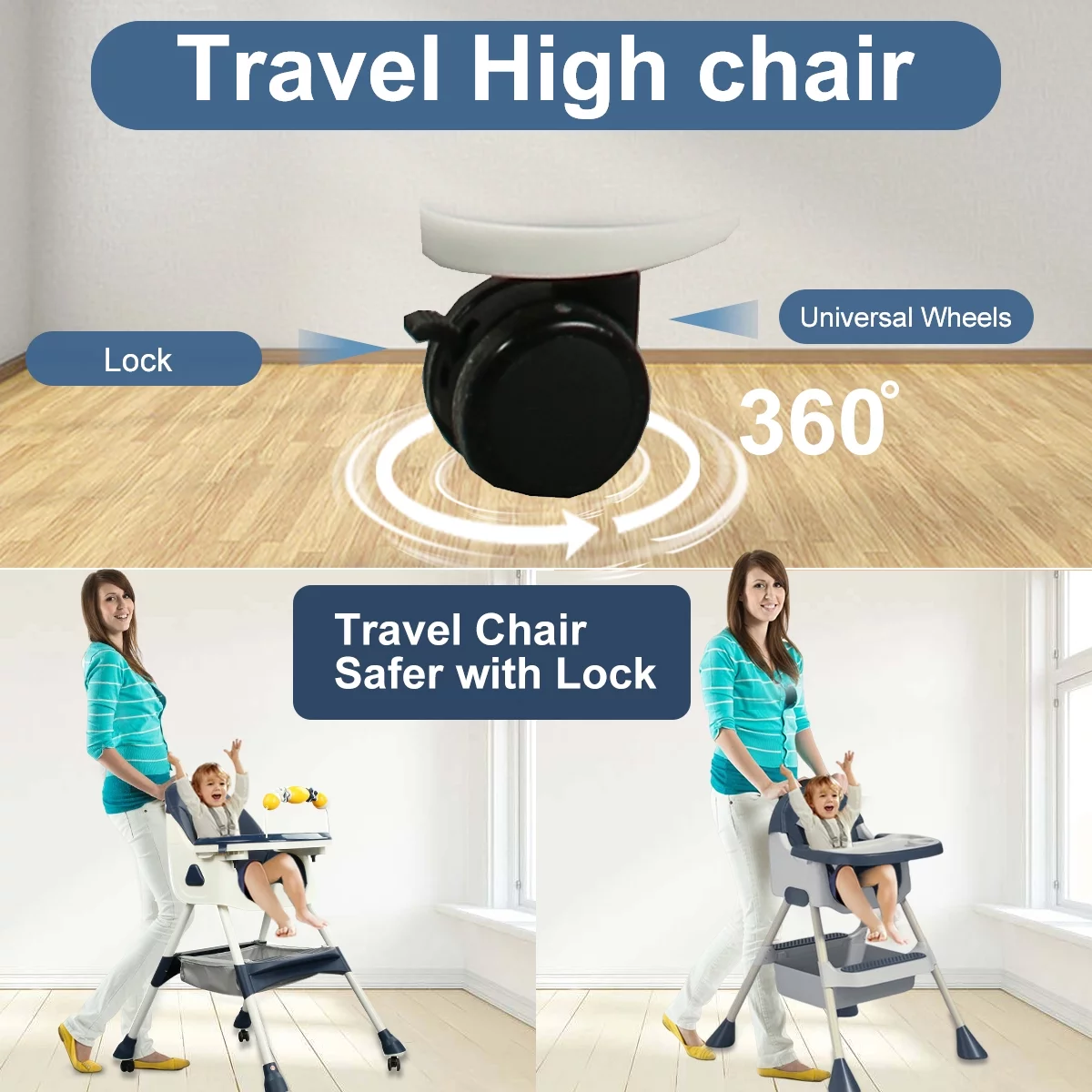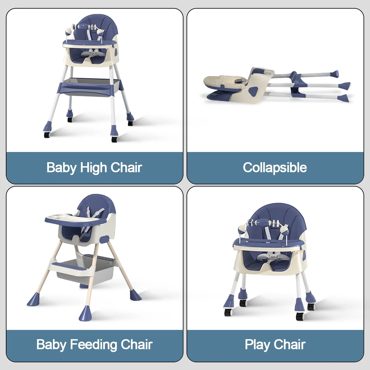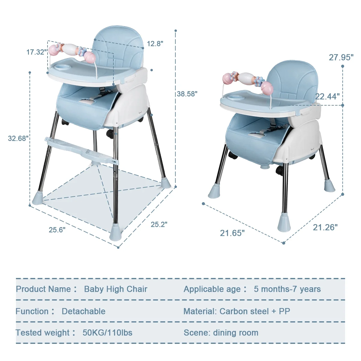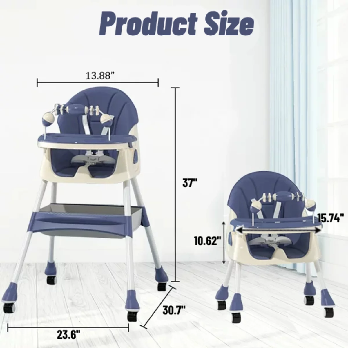 Baby High Chair,Convertible High Chairs for Babies and Toddlers,(Blue)