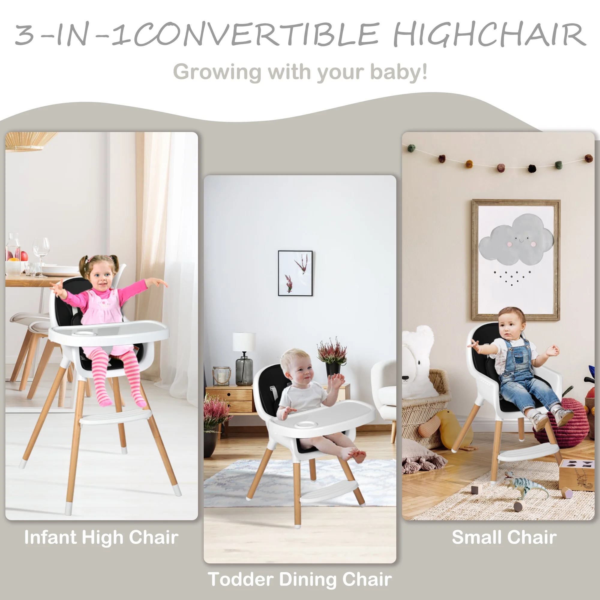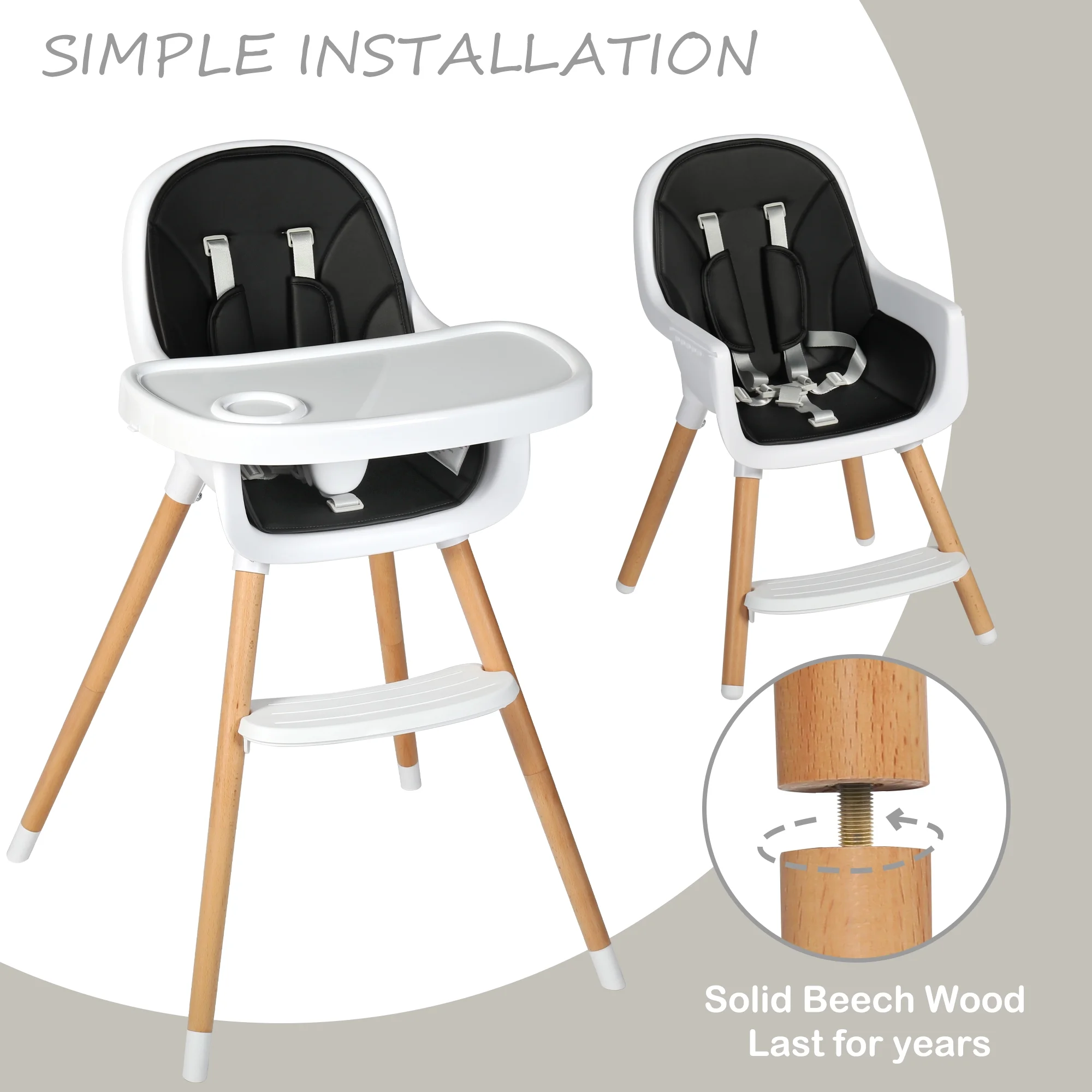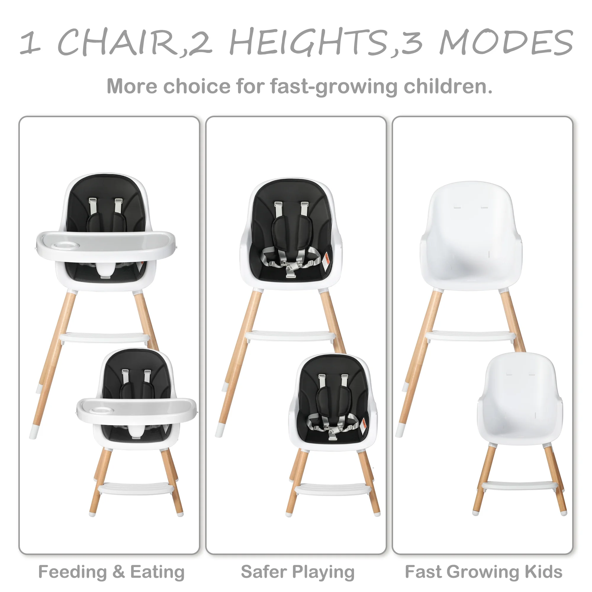 AILEEKISS 3 in 1 Wooden Baby High Chair Infant Feeding Chair with Double Removable Tray, Black