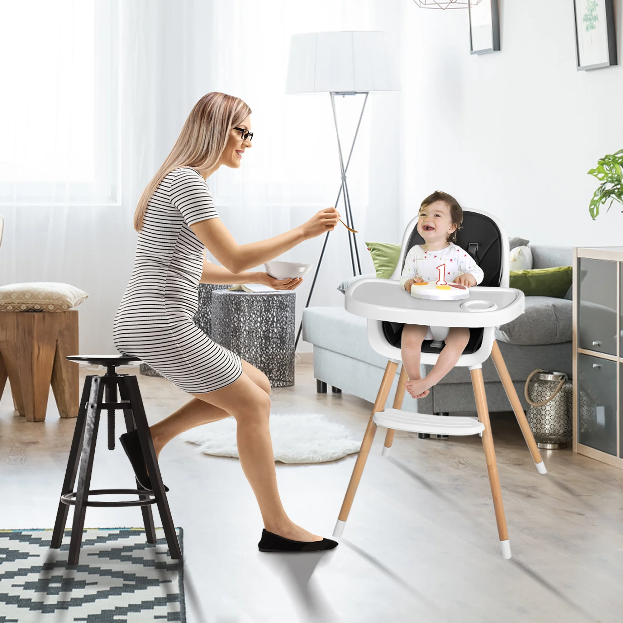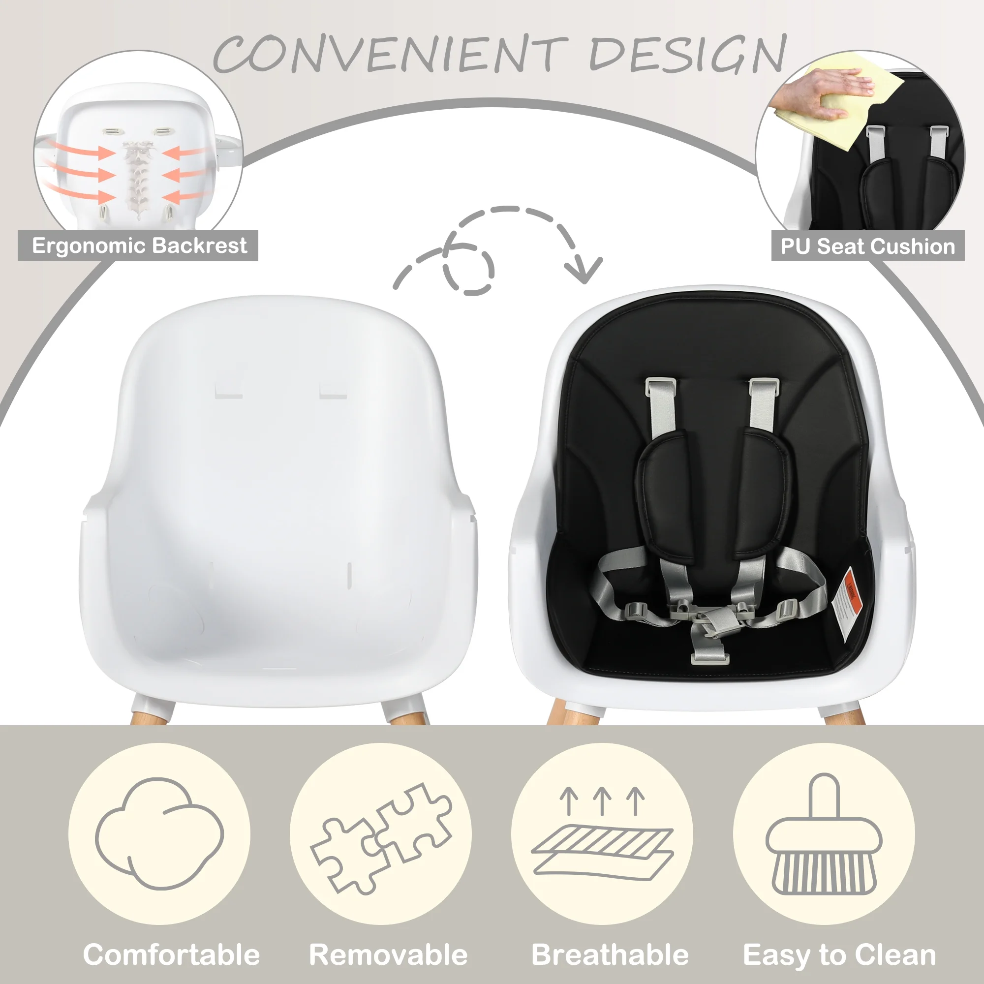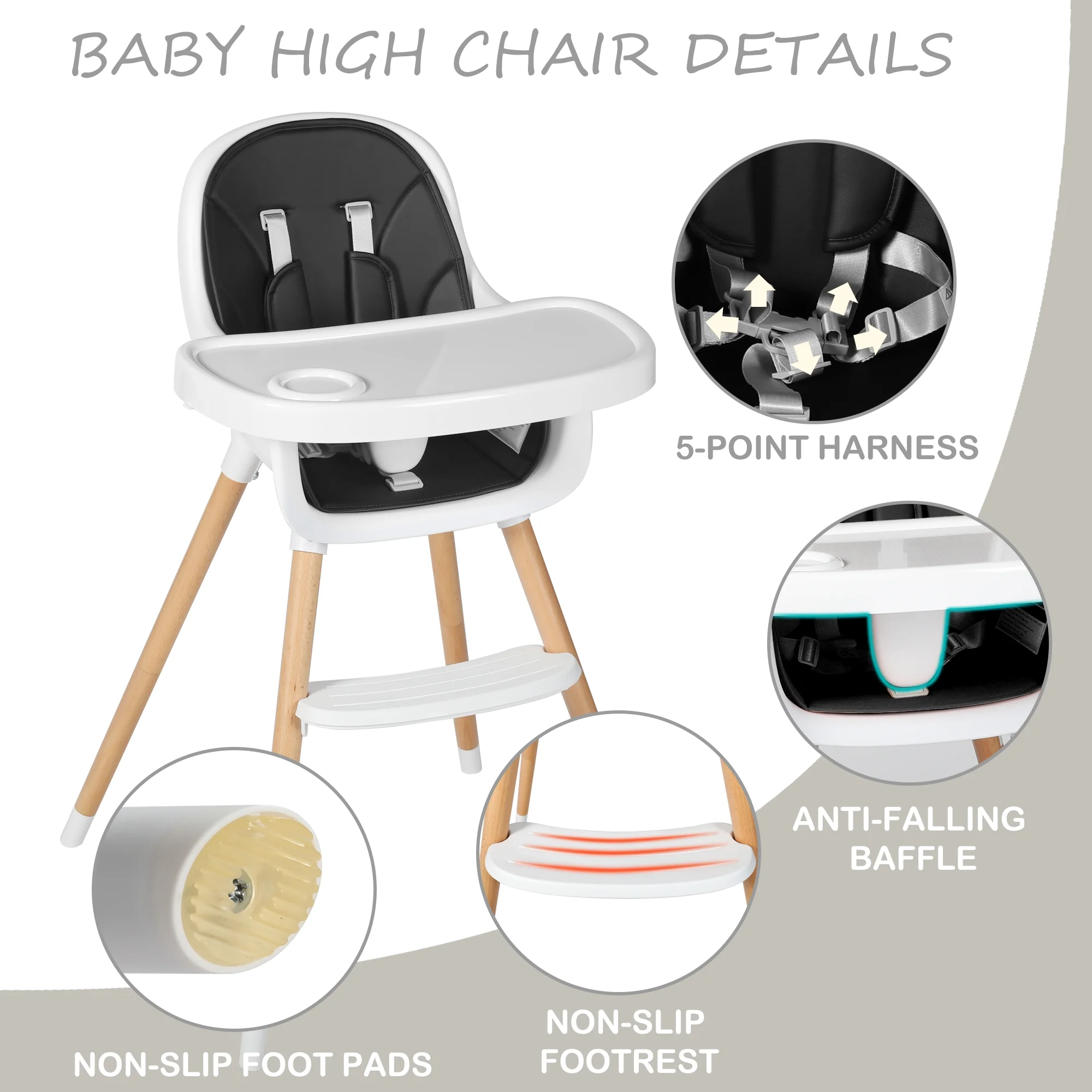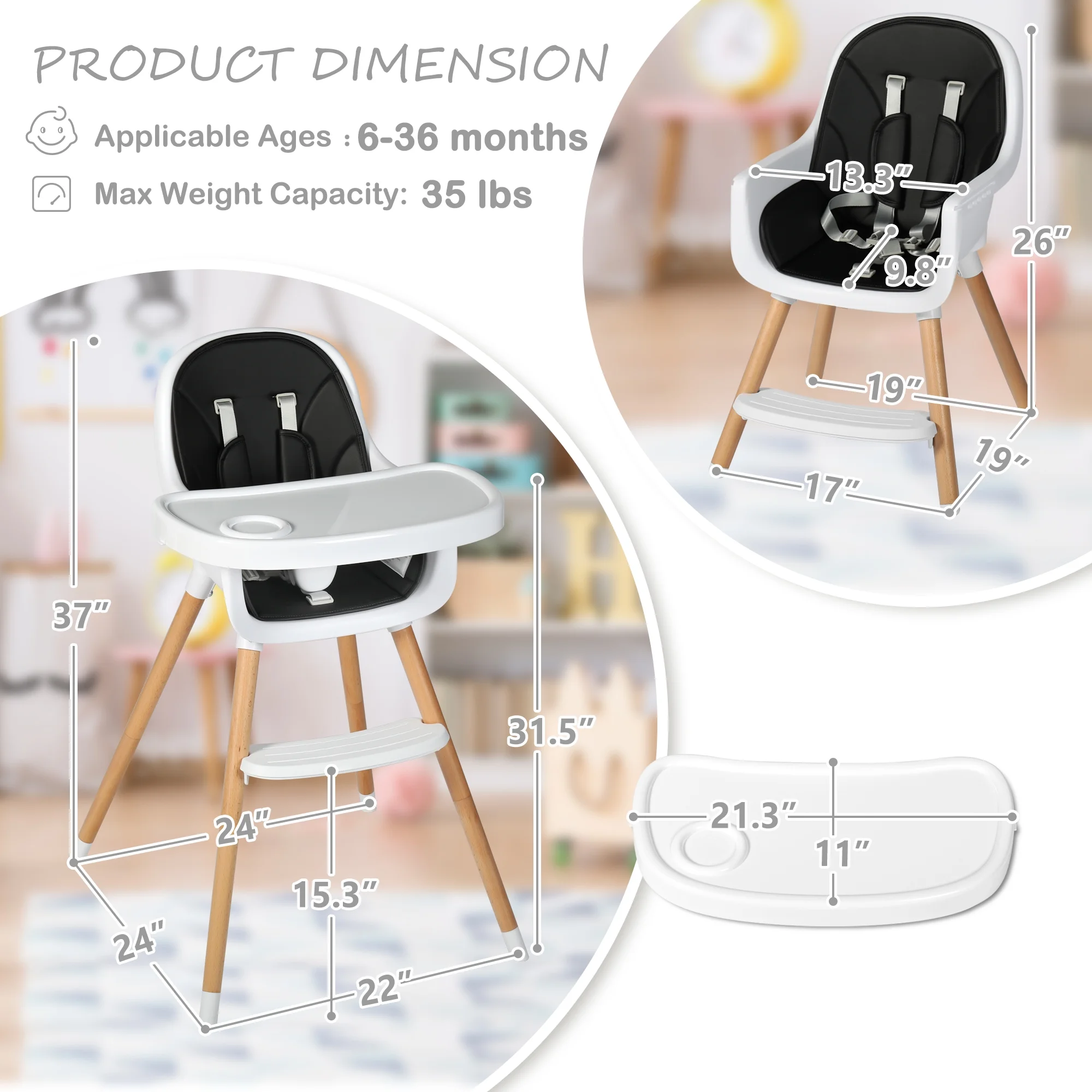 AILEEKISS 3 in 1 Wooden Baby High Chair Infant Feeding Chair with Double Removable Tray, Black