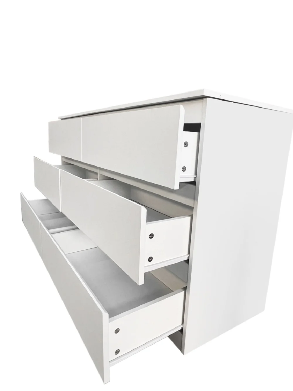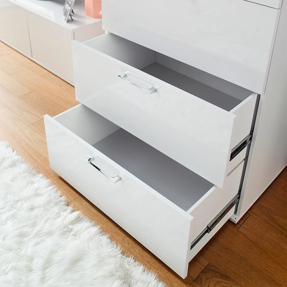 Dresser With Eight Center Metal Glide Drawers In White Gloss Finish