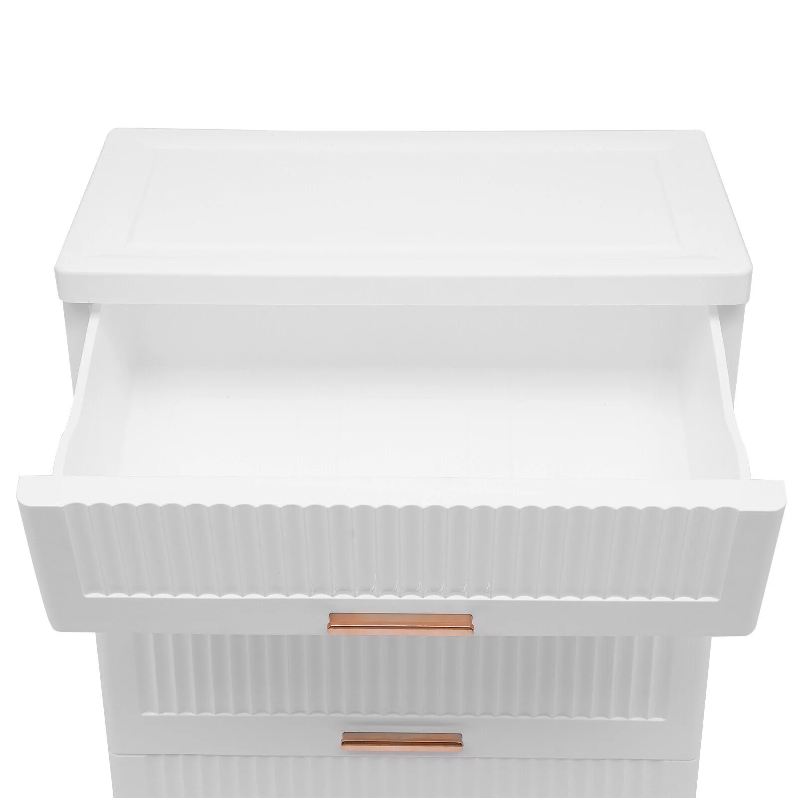 OXYLIFE 5 Drawer Dresser Chest with LED Light for Bedroom and Living Room, White Glossy Finish