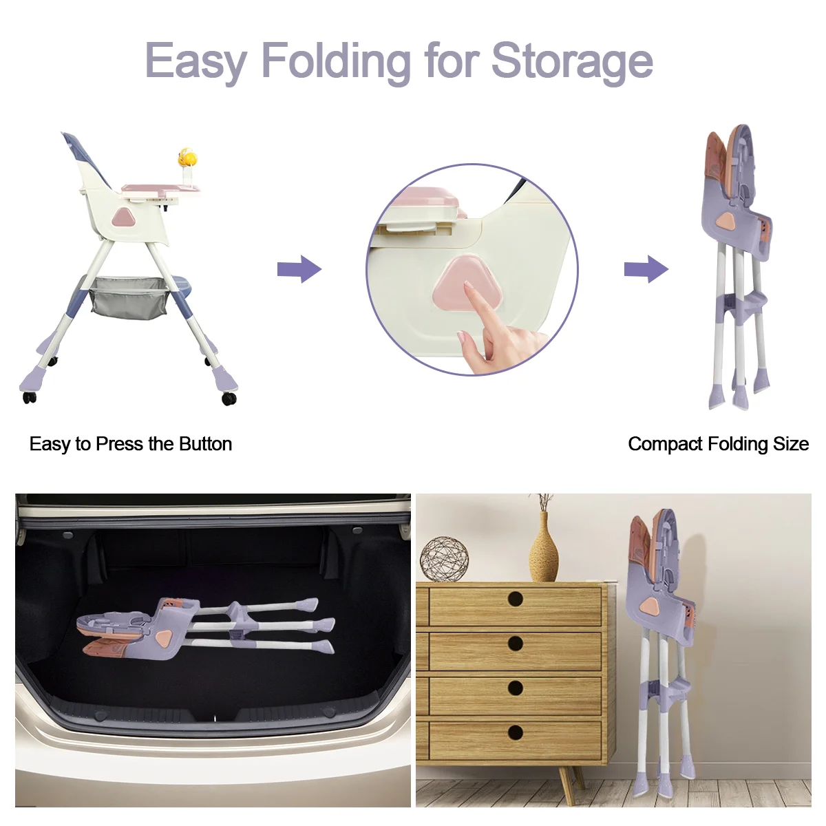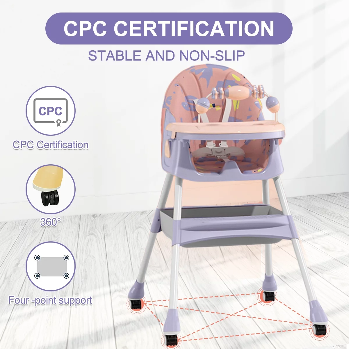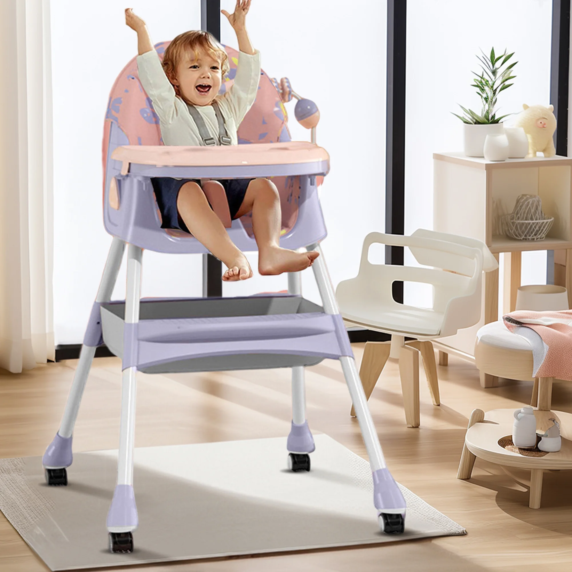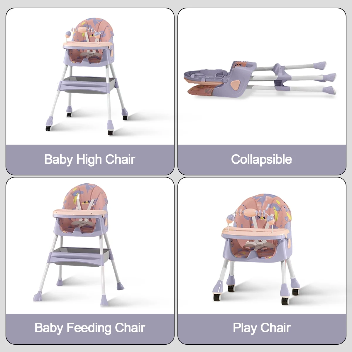 EONROACOO Baby Highchair with 5-point Snap Button, High Chair for Babies with Double-Layer Tray and Toys, Purple