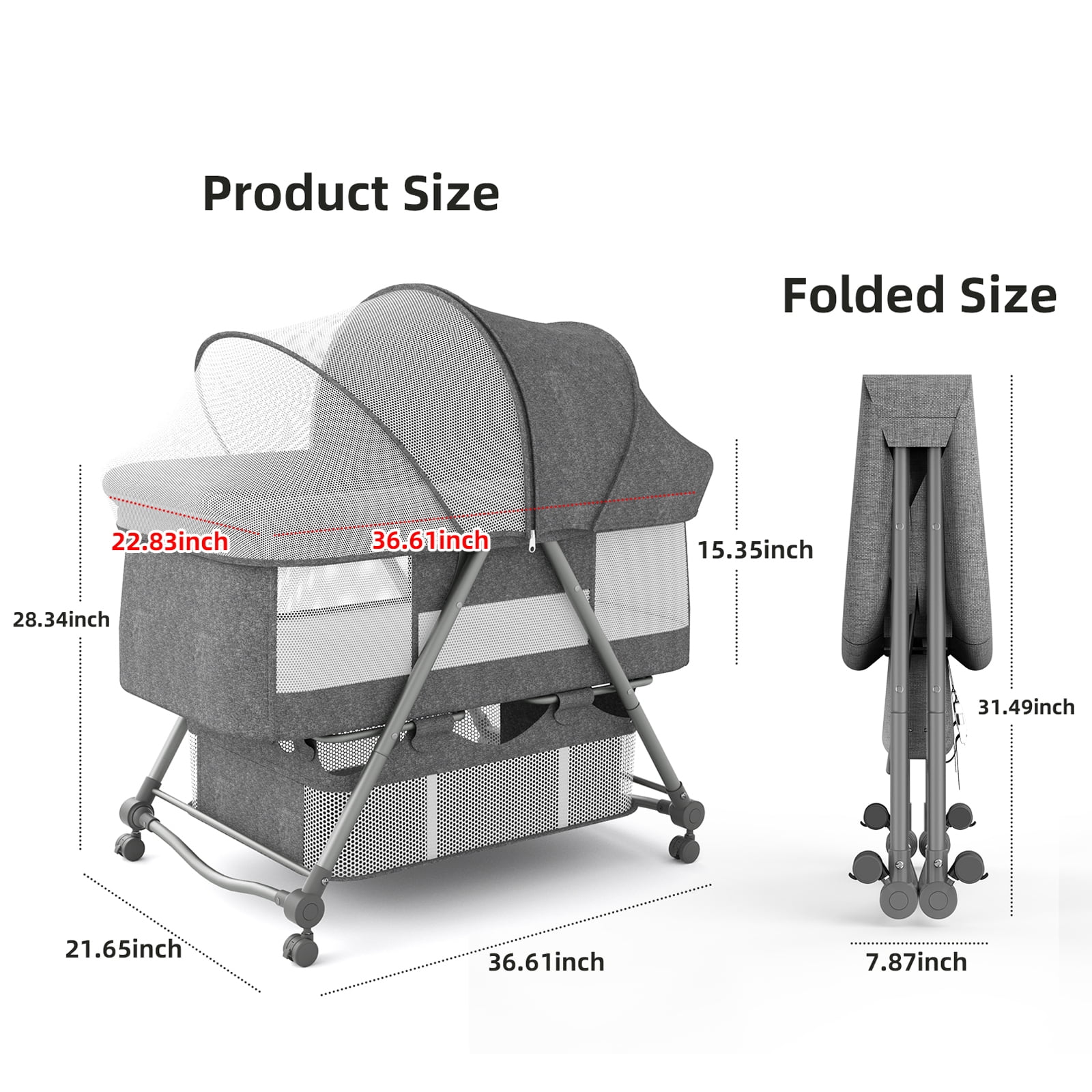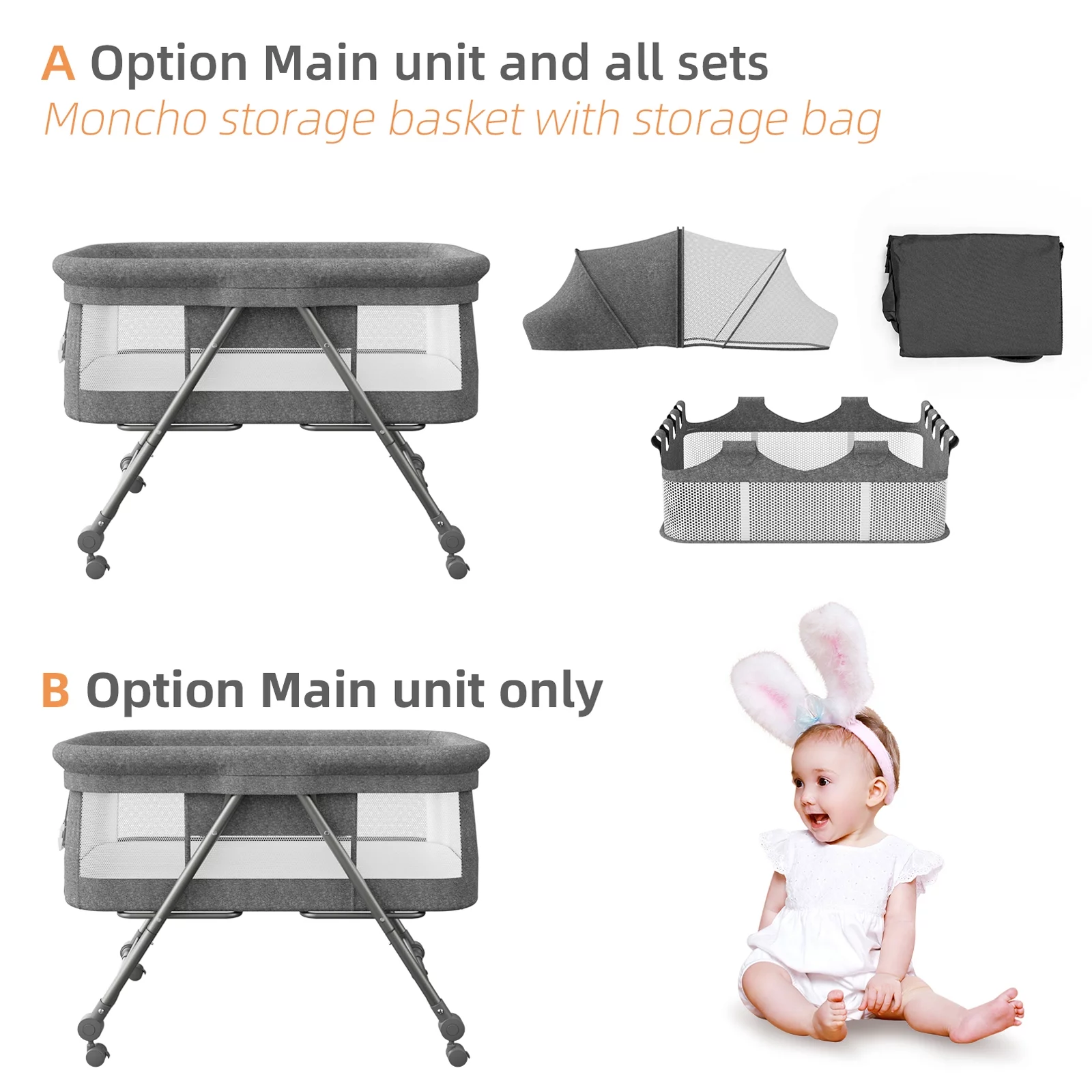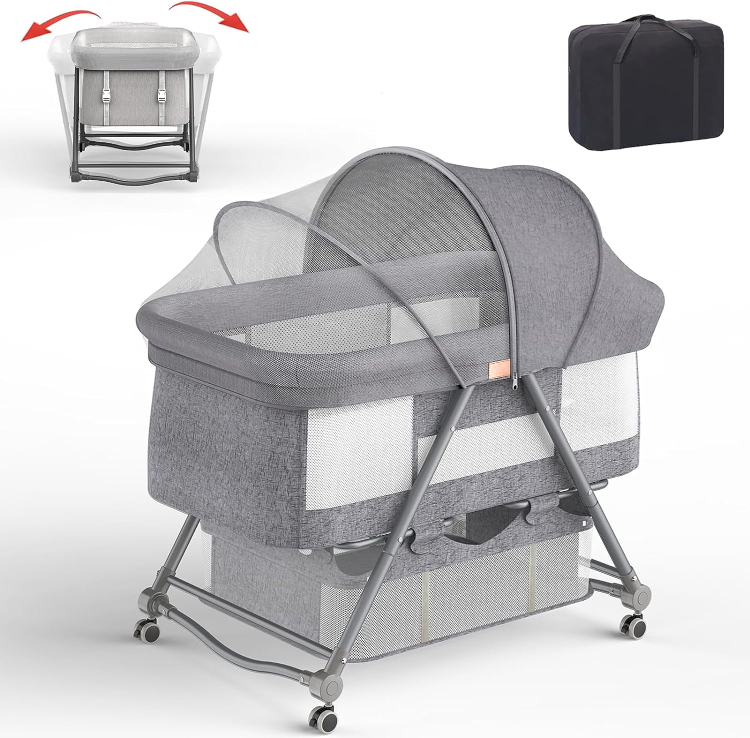 TFCFL Portable Baby Bassinet Bedside Sleeper for Infant Easy Folding Crib w/ Storage