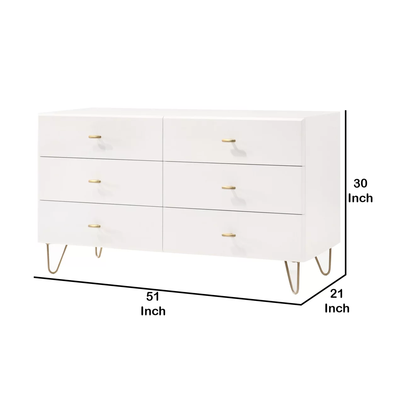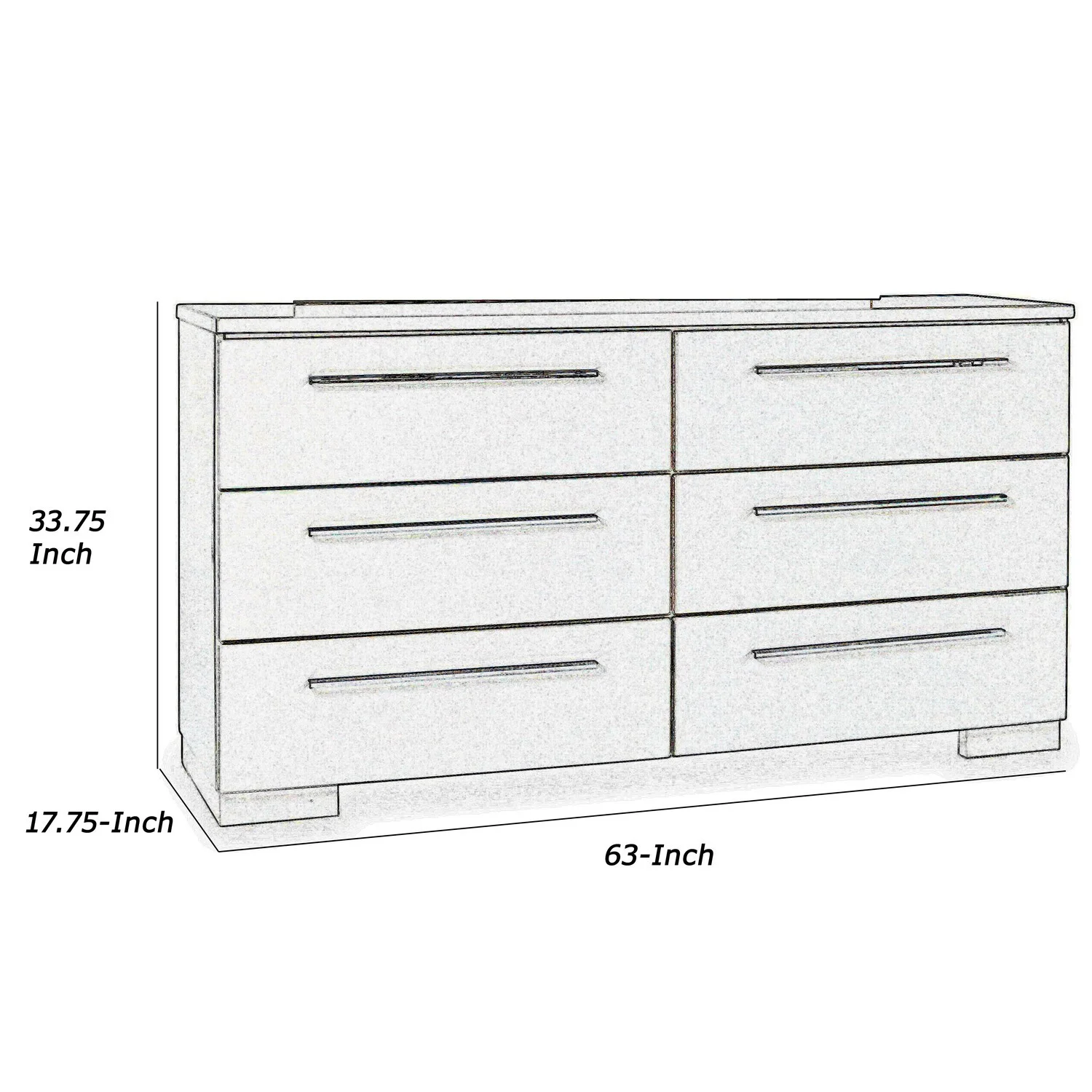 Benzara Contemporary Style 6 Drawer Wooden Dresser with Metal Pulls, White