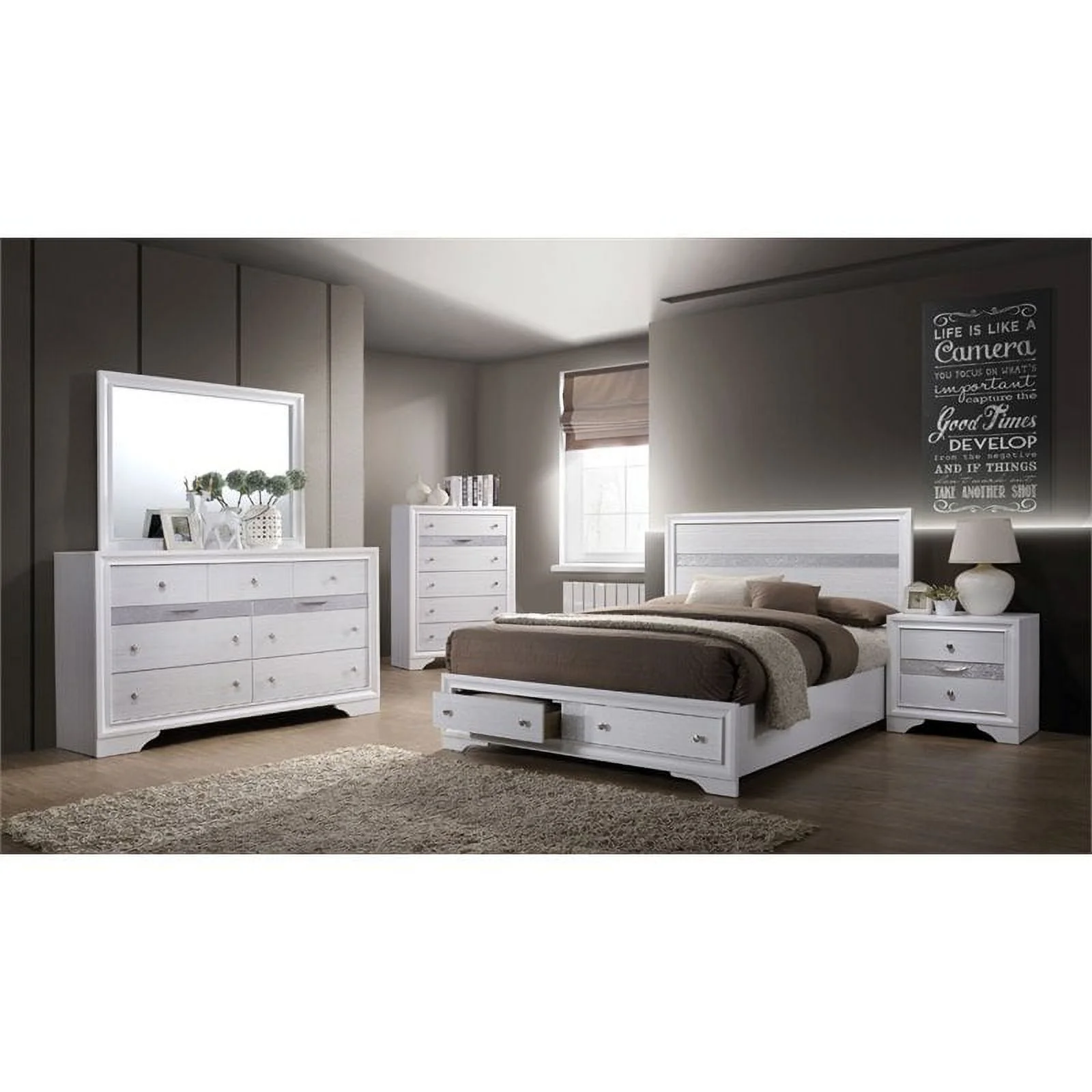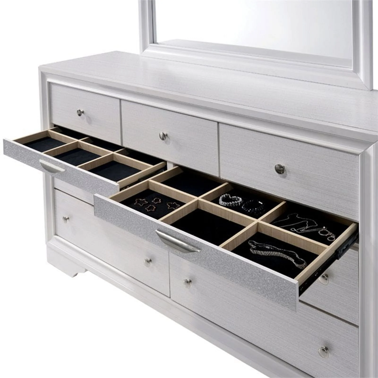 Furniture of America Laren Contemporary 2-Piece Wood Dresser and Mirror in White