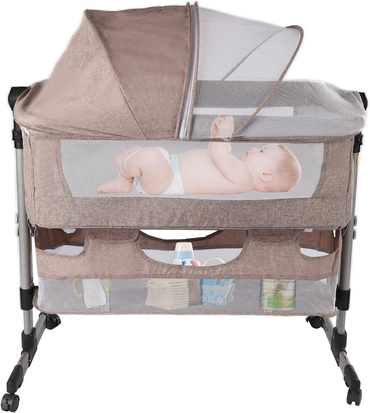 SYCYH Baby Bassinet Bedside Sleeper for Newborn Infant, Two-Side Safe Breathable Mesh Design