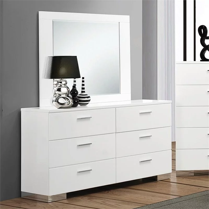Kingfisher Lane 6-Drawer Contemporary Wood Dresser with Chrome Legs in White